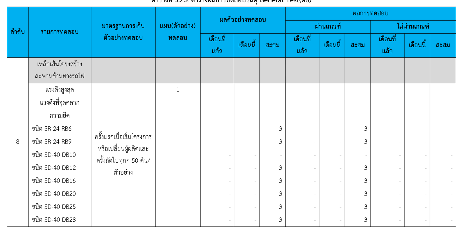 ในเดือน มีนาคม 2563ได้แสดงเกณฑ์การทดสอบGeneral Test และ Control Test แสดงไว้ในตารางที่ 3.2-1 – 3.2-3 ดังนี้