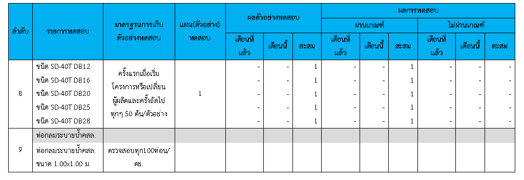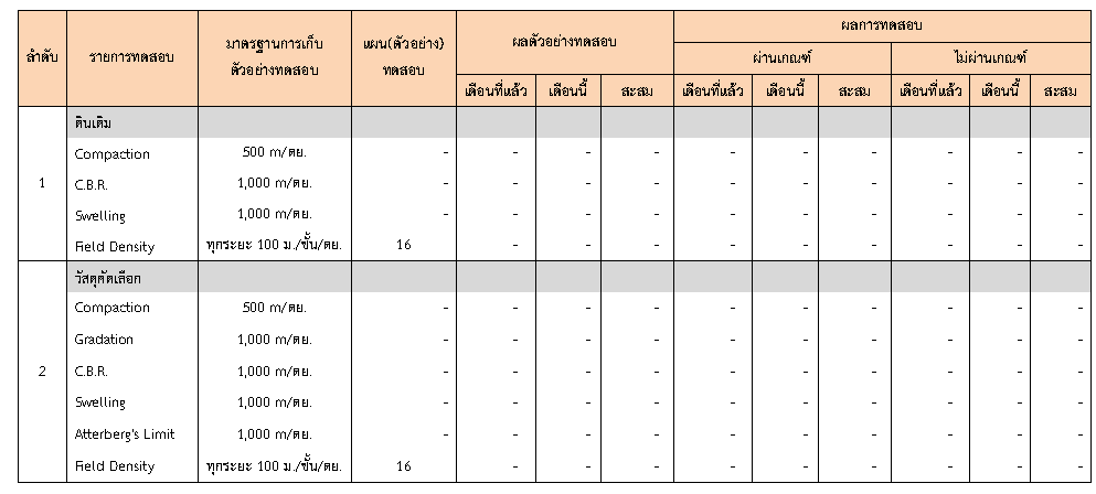 ในระหว่างวันที่ 1-30 มิถุนายน 2563ผู้ว่าจ้างได้เสนอหนังสือขออนุมัติใช้วัสดุถึงที่ปรึกษา โดยที่ปรึกษาได้ตรวจสอบวัสดุดังกล่าวมีผลทดสอบดังตาราง