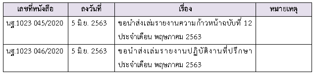ในการดำเนินงานควบคุมงานก่อสร้าง ได้มีการจัดส่งเอกสารหนังสือต่างๆ ระหว่างกรมทางหลวงชนบท ที่ปรึกษา และผู้รับจ้างดังนี้