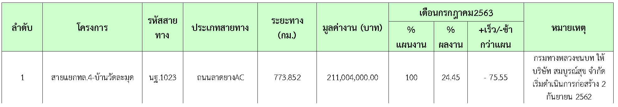 2.2 รายละเอียดของความก้าวหน้าในสายทาง