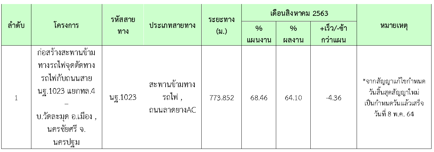 ในเดือน กันยายน2563 ที่ปรึกษาได้ปฏิบัติงานควบคุมงานก่อสร้างโครงการ สรุปการดำเนินงานได้ดังนี้