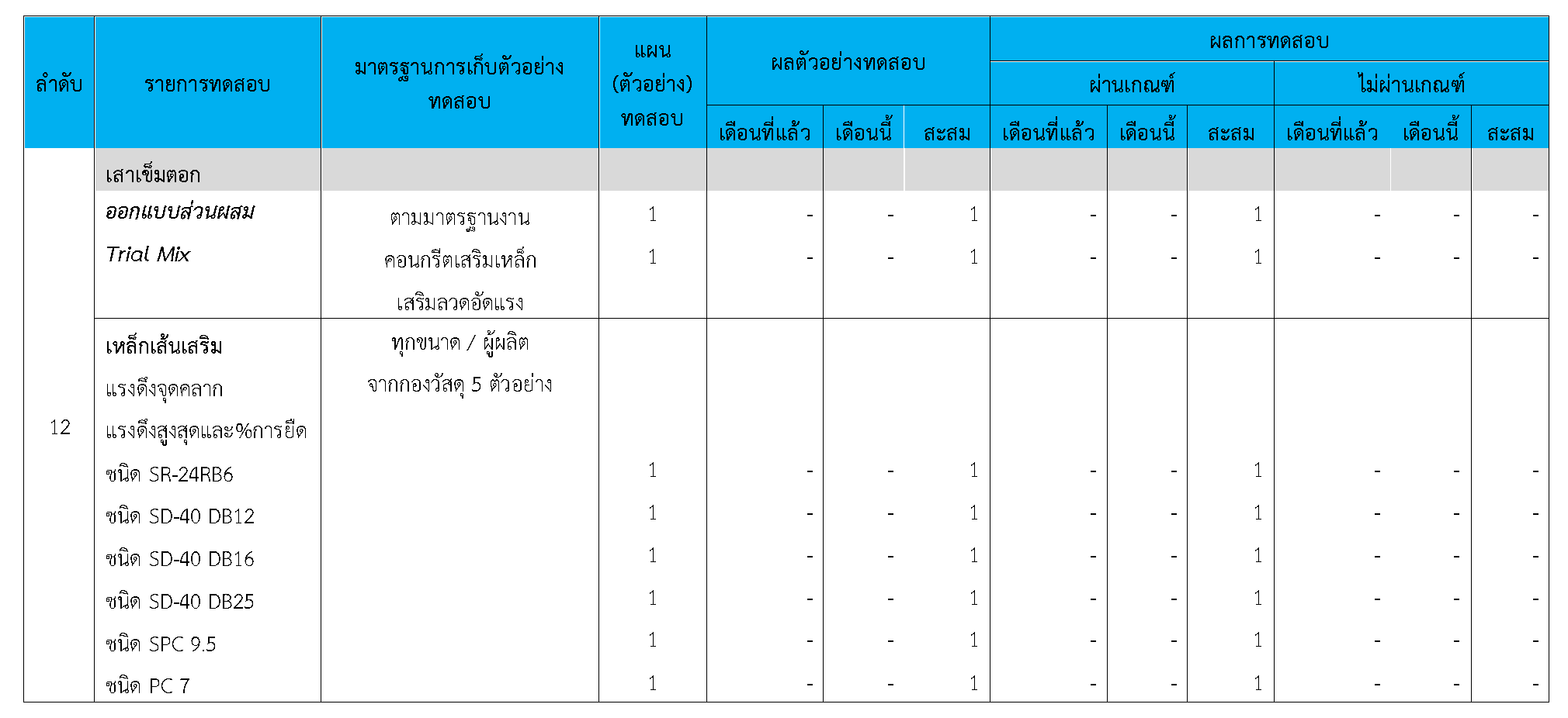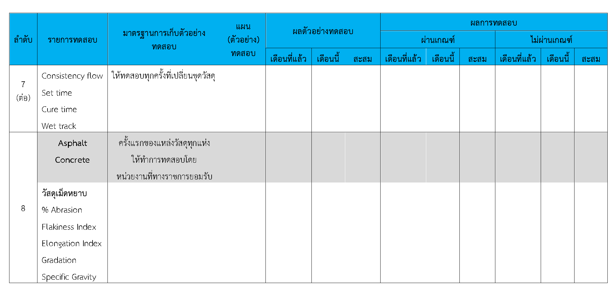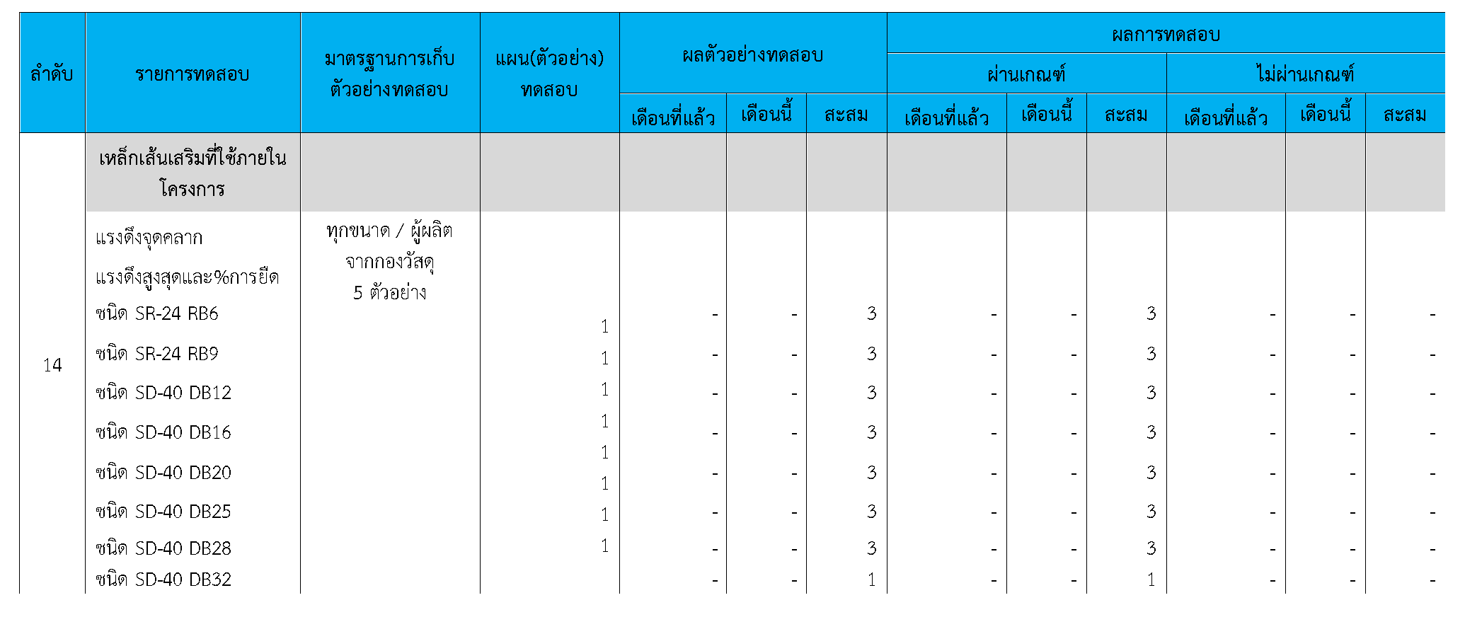ในระหว่างวันที่ 1-30 กันยายน 2563ผู้ว่าจ้างได้เสนอหนังสือขออนุมัติใช้วัสดุถึงที่ปรึกษา โดยที่ปรึกษาได้ตรวจสอบวัสดุดังกล่าวมีผลทดสอบดังตาราง