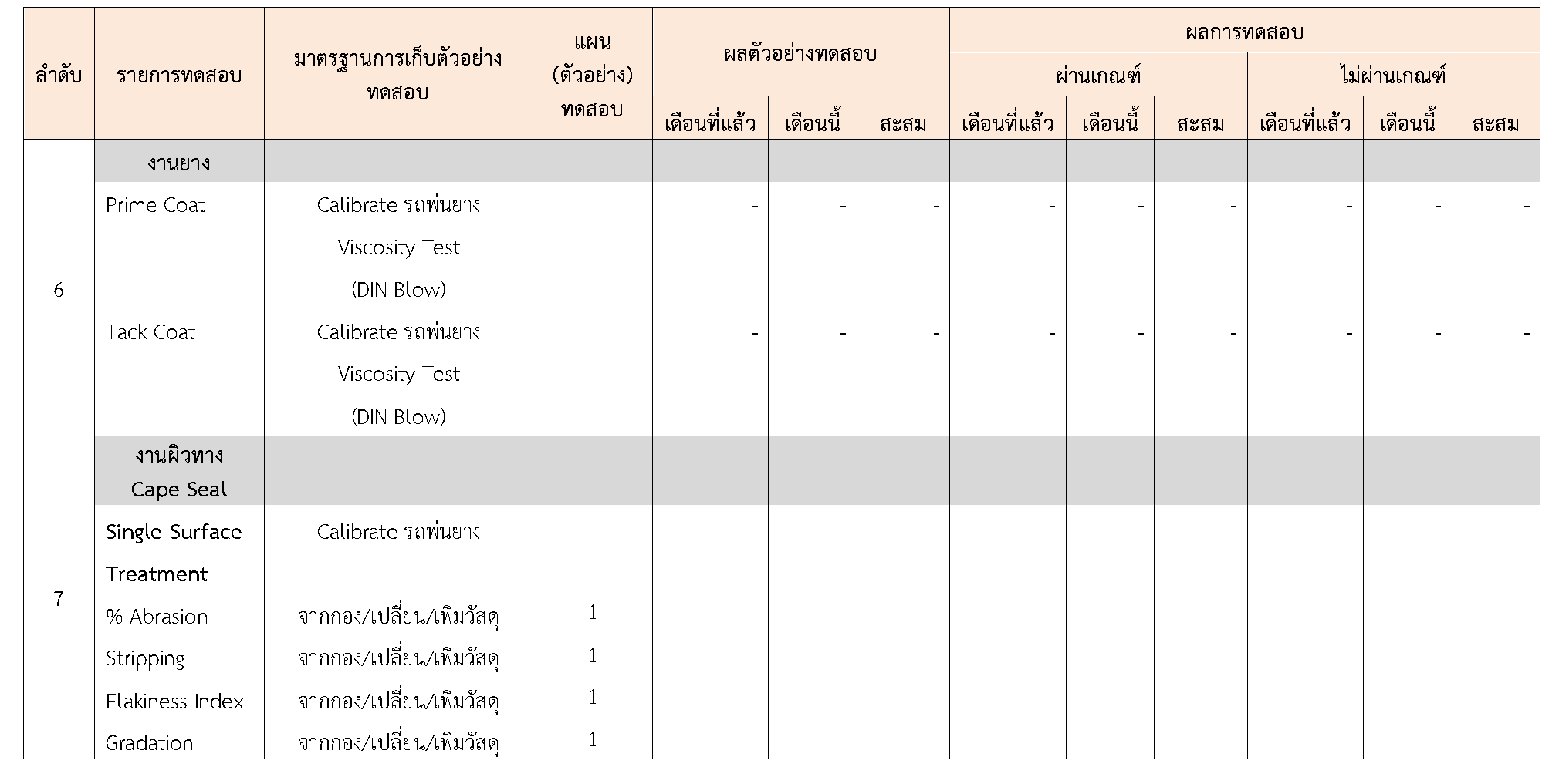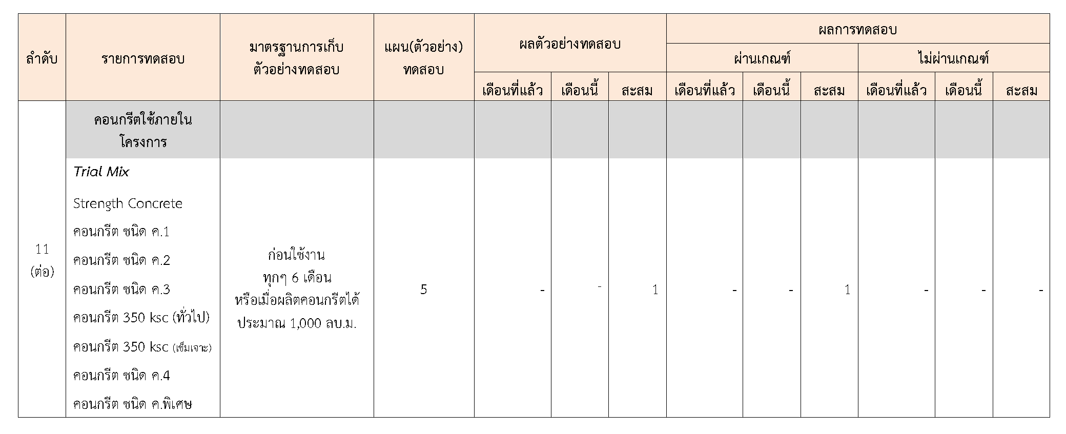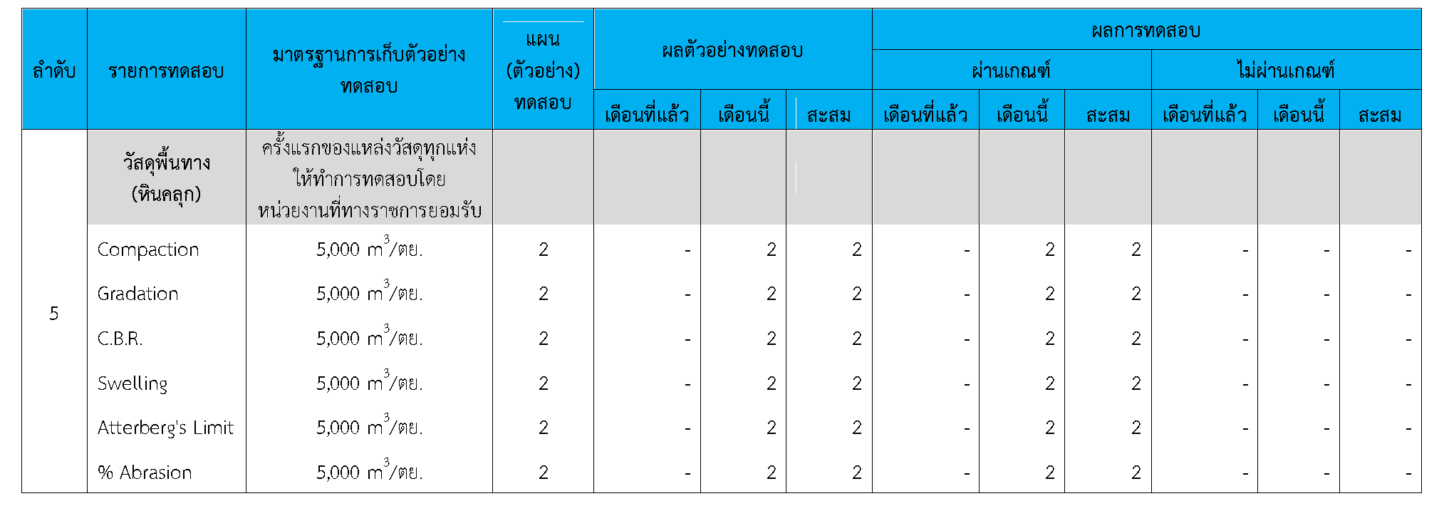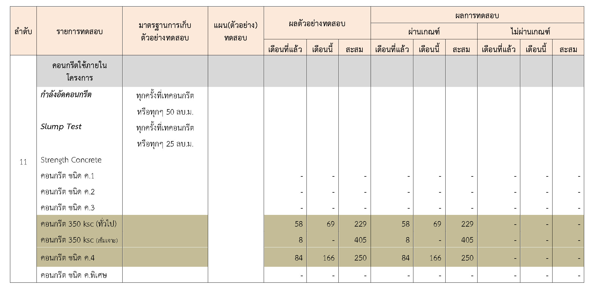 ในระหว่างวันที่ 1-31ตุลาคม 2563 ผู้ว่าจ้างได้เสนอหนังสือขออนุมัติใช้วัสดุถึงที่ปรึกษา โดยที่ปรึกษาได้ตรวจสอบวัสดุดังกล่าวมีผลทดสอบดังตาราง