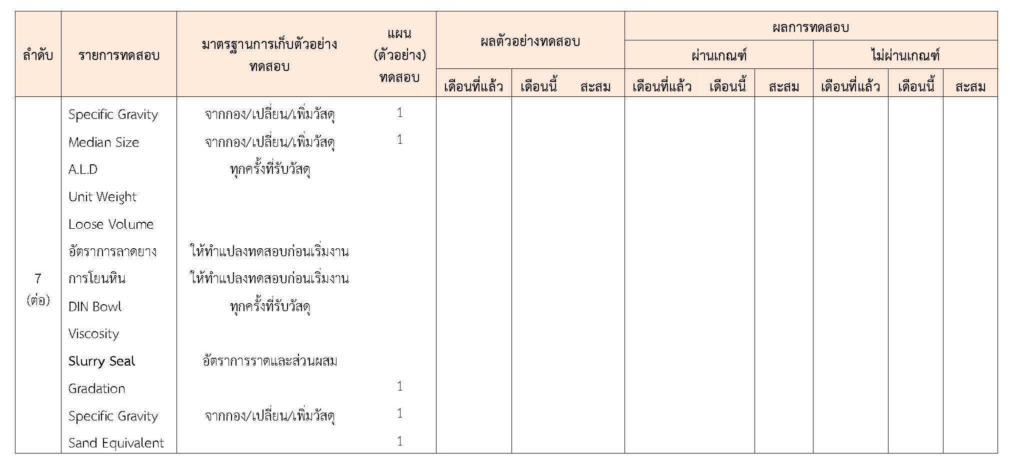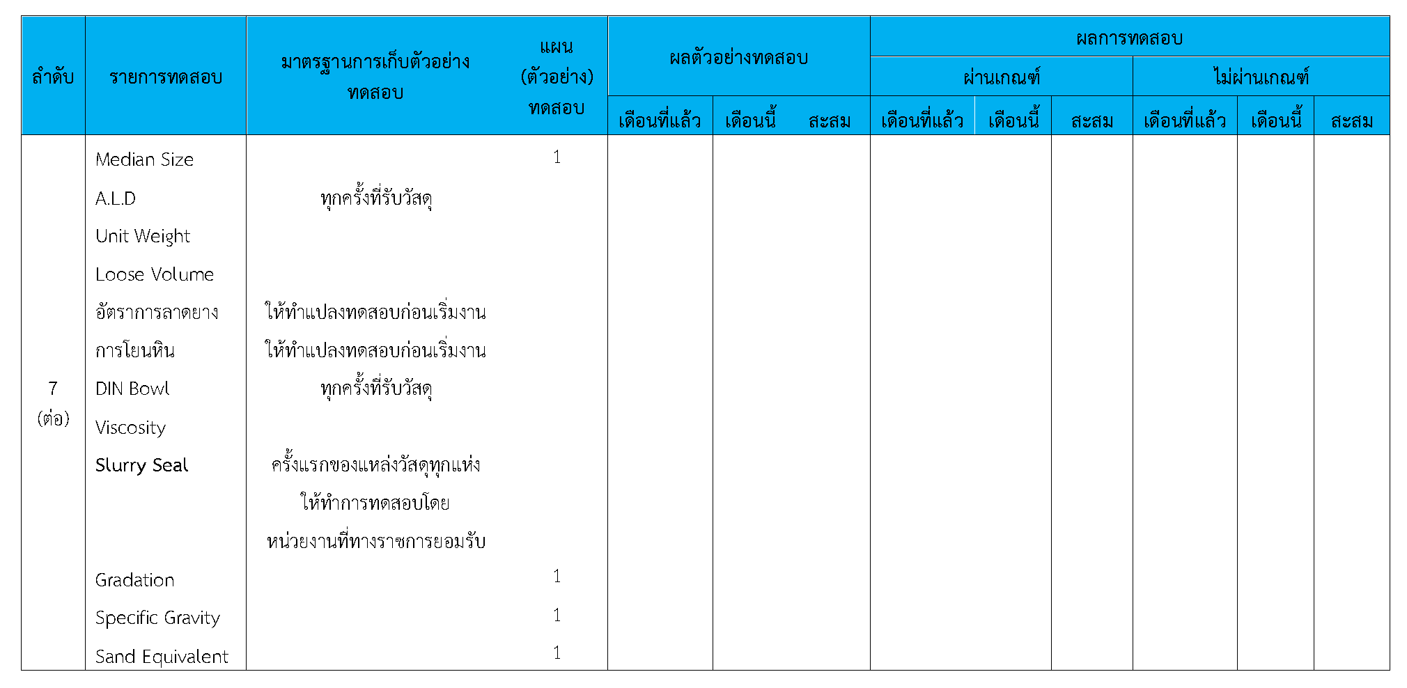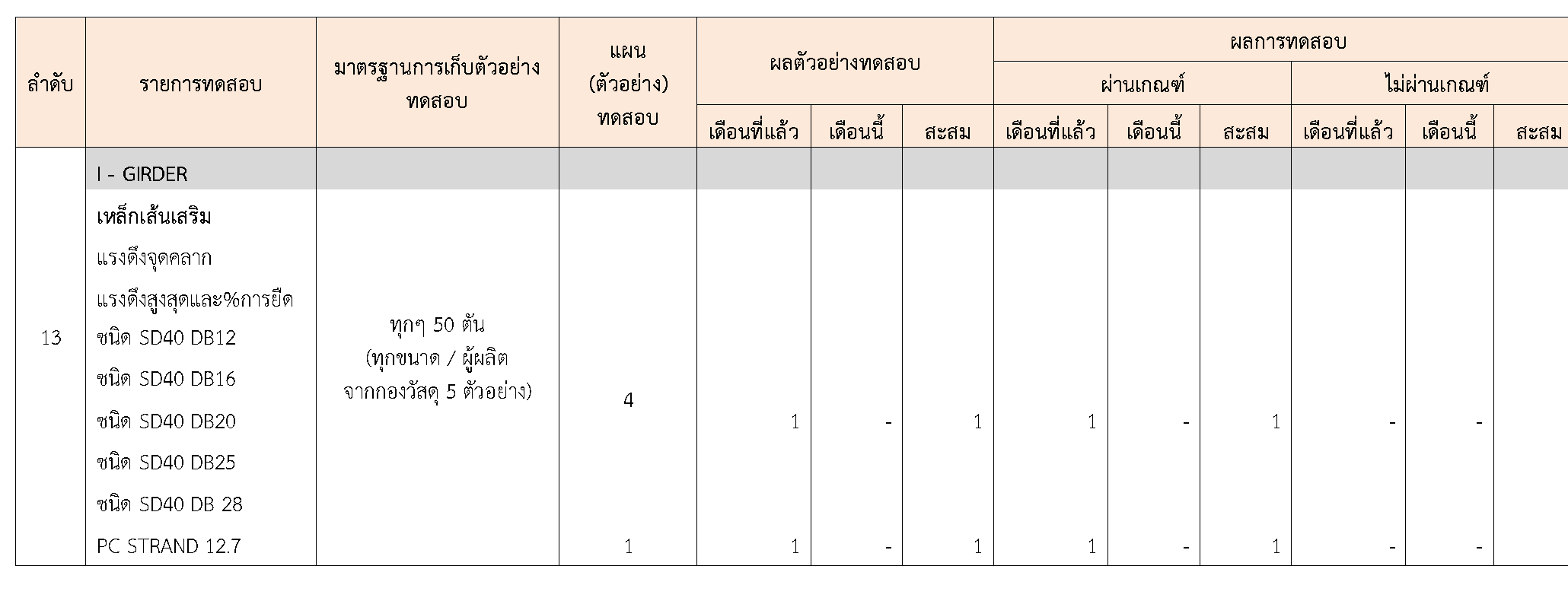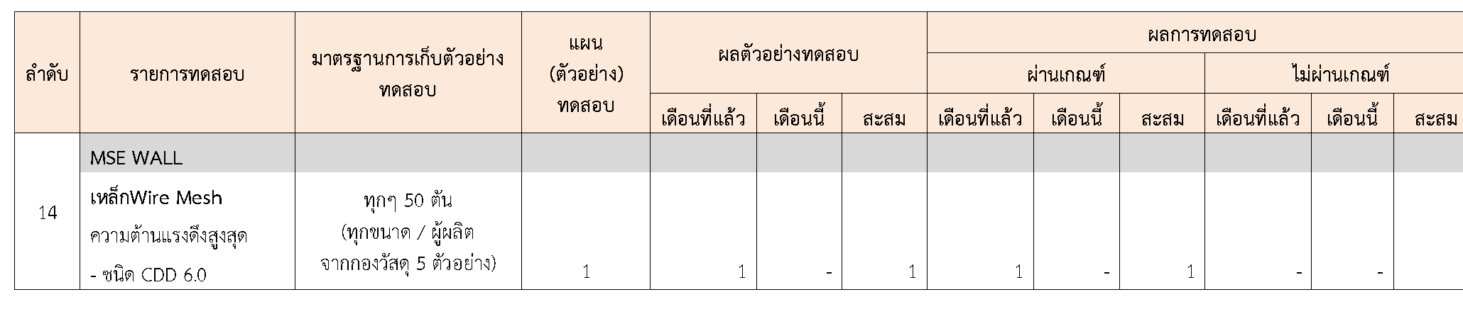 ในระหว่างวันที่ 1-31ตุลาคม 2563 ผู้ว่าจ้างได้เสนอหนังสือขออนุมัติใช้วัสดุถึงที่ปรึกษา โดยที่ปรึกษาได้ตรวจสอบวัสดุดังกล่าวมีผลทดสอบดังตาราง