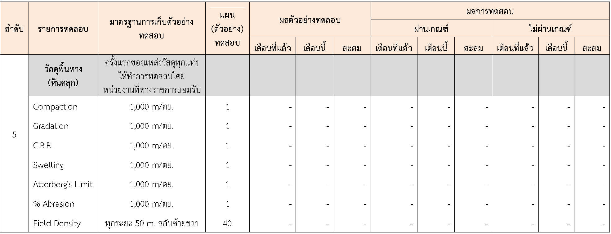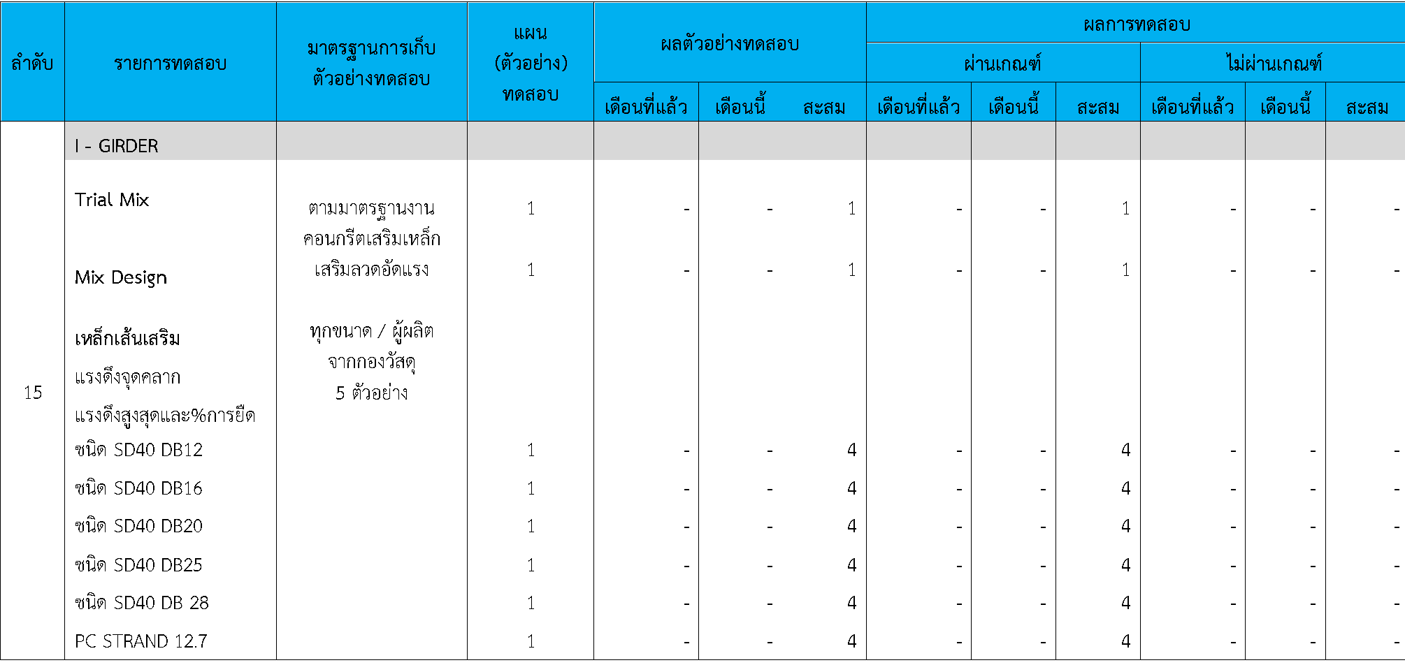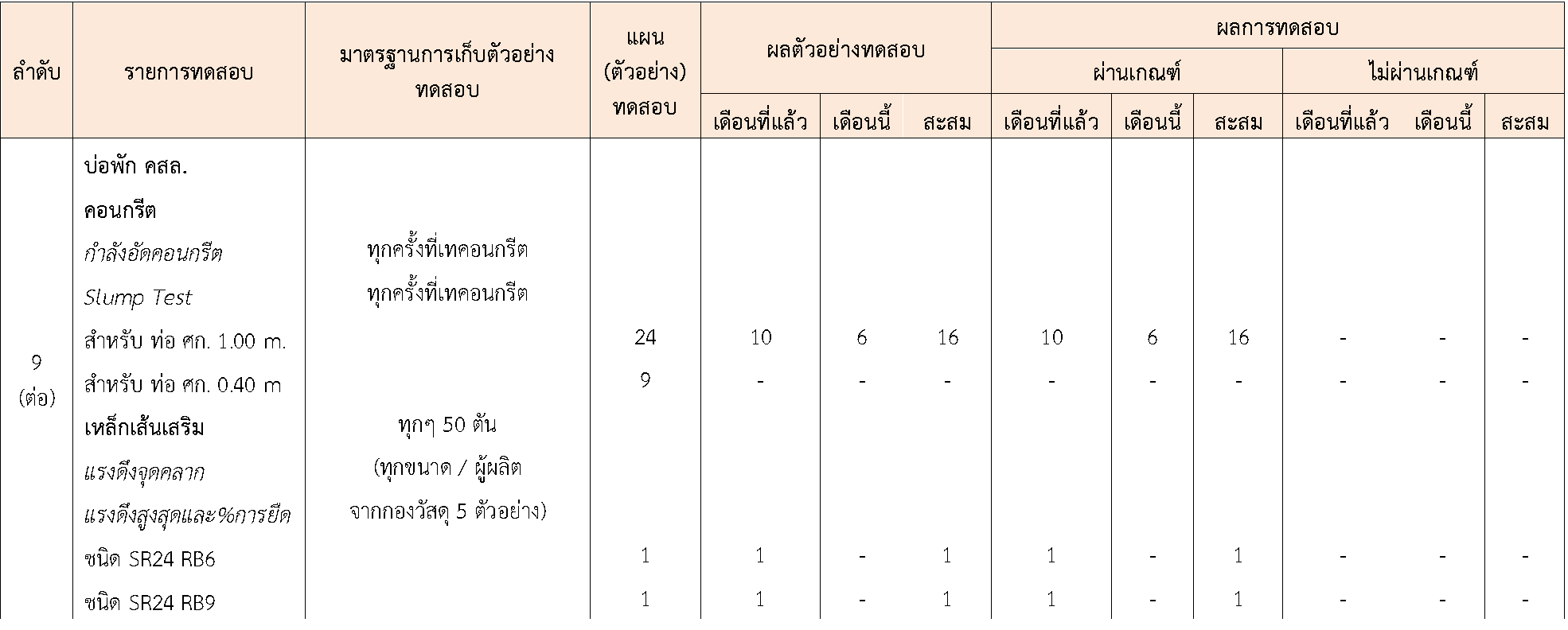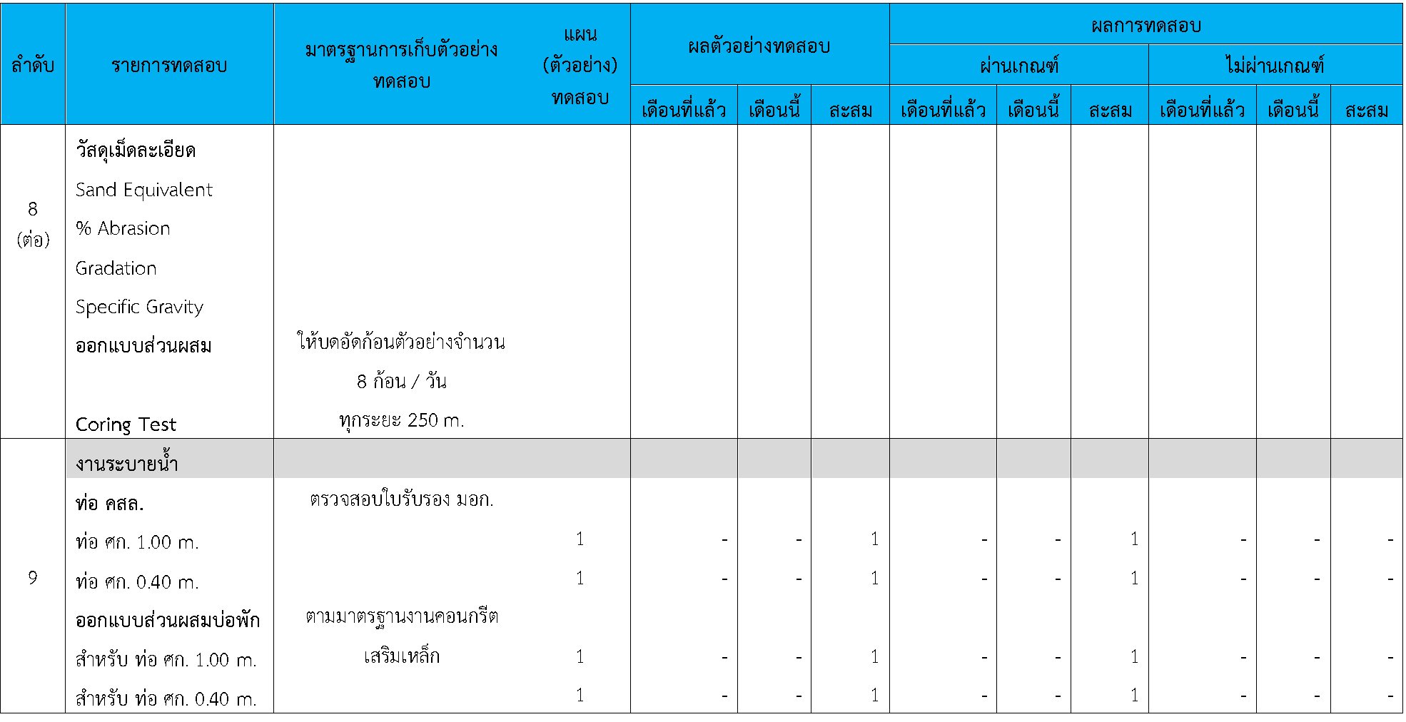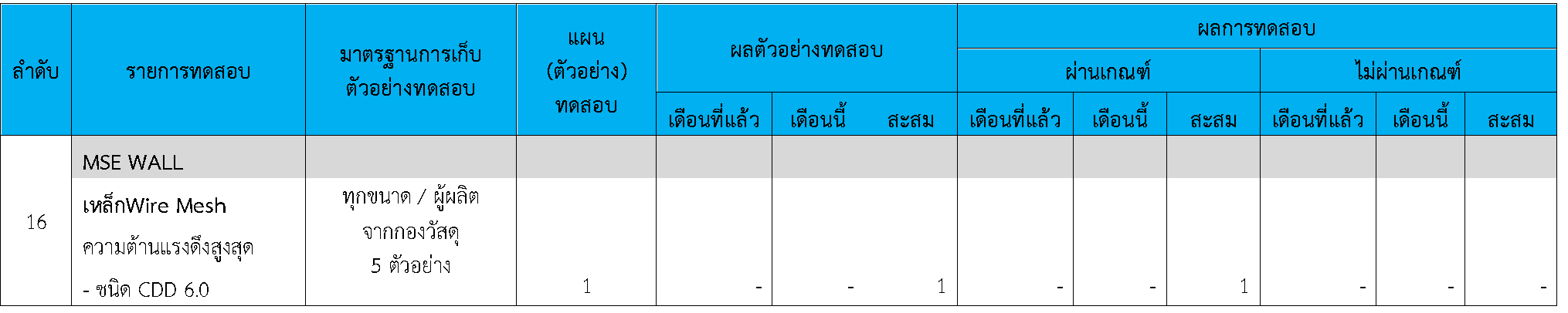 ในระหว่างวันที่ 1-30พฤศจิกายน 2563 ผู้ว่าจ้างได้เสนอหนังสือขออนุมัติใช้วัสดุถึงที่ปรึกษา โดยที่ปรึกษาได้ตรวจสอบวัสดุดังกล่าวมีผลทดสอบดังตาราง