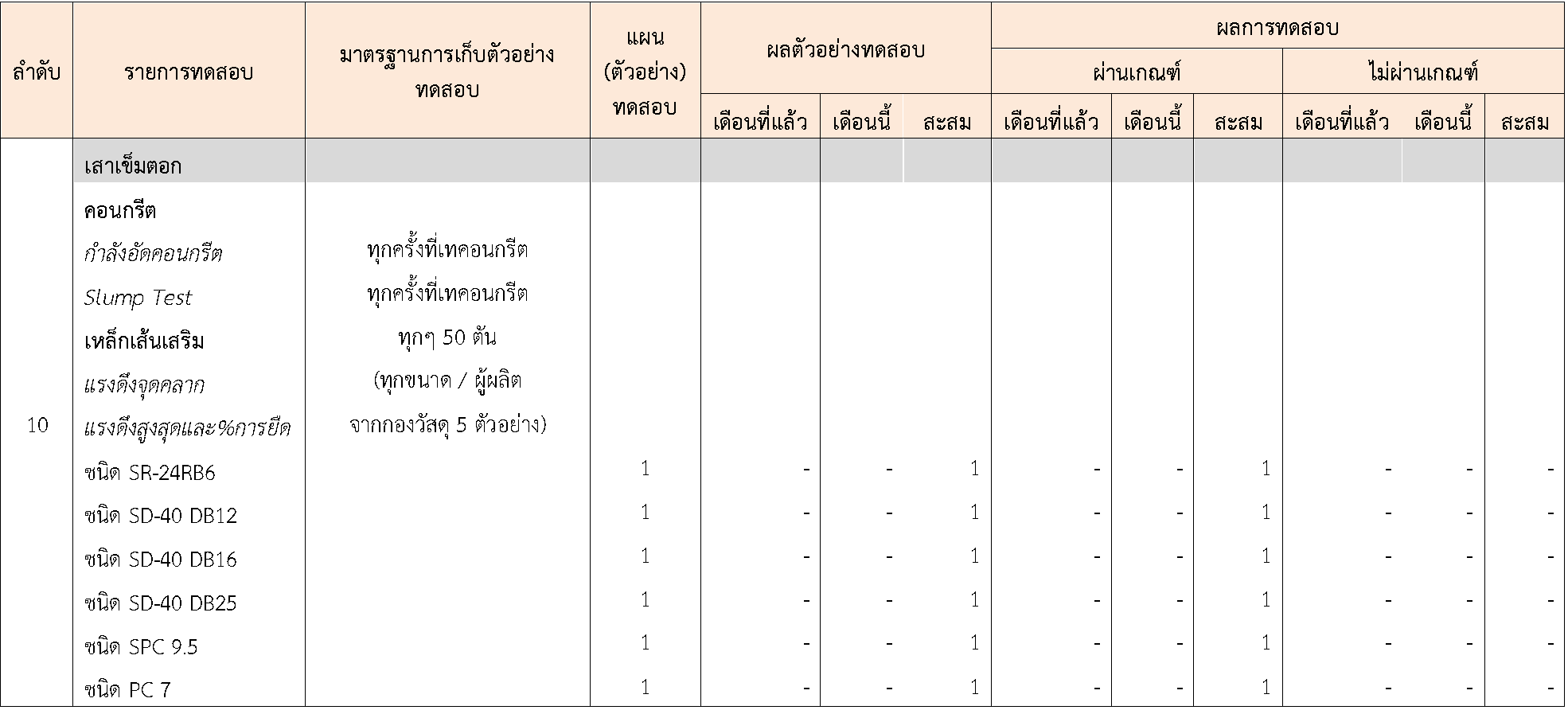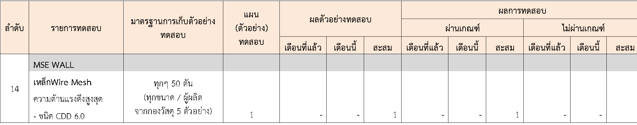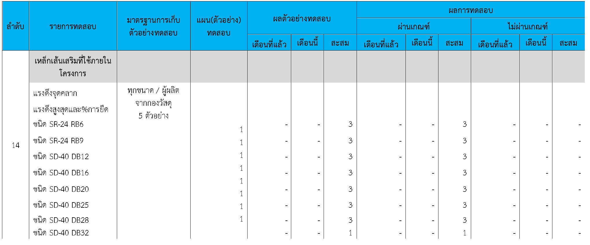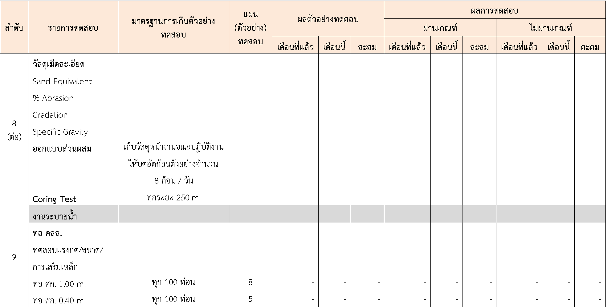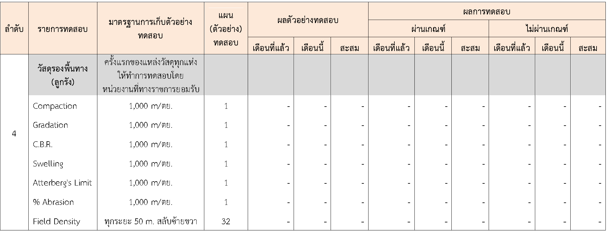 ในระหว่างวันที่ 1-30พฤศจิกายน 2563 ผู้ว่าจ้างได้เสนอหนังสือขออนุมัติใช้วัสดุถึงที่ปรึกษา โดยที่ปรึกษาได้ตรวจสอบวัสดุดังกล่าวมีผลทดสอบดังตาราง