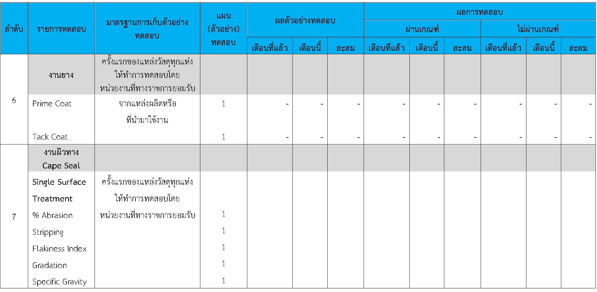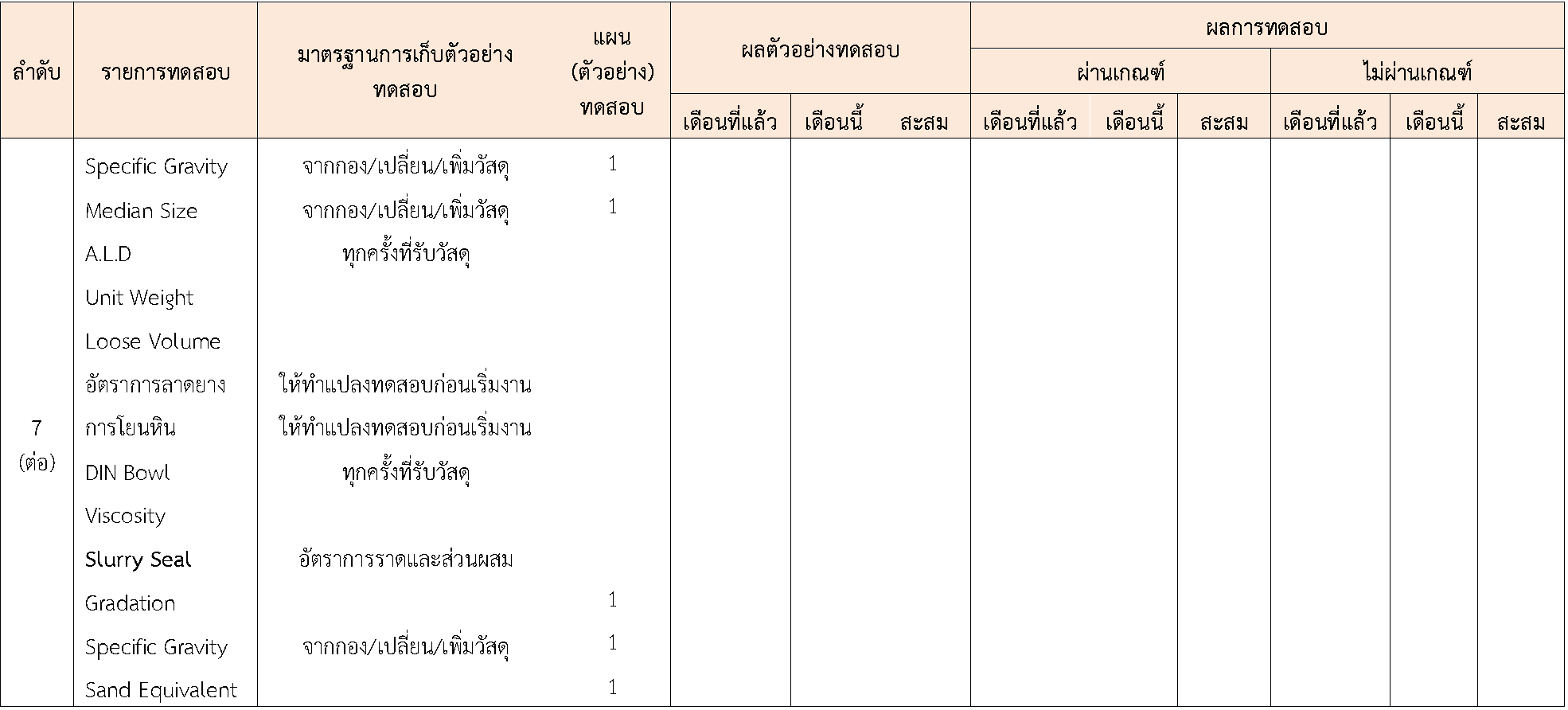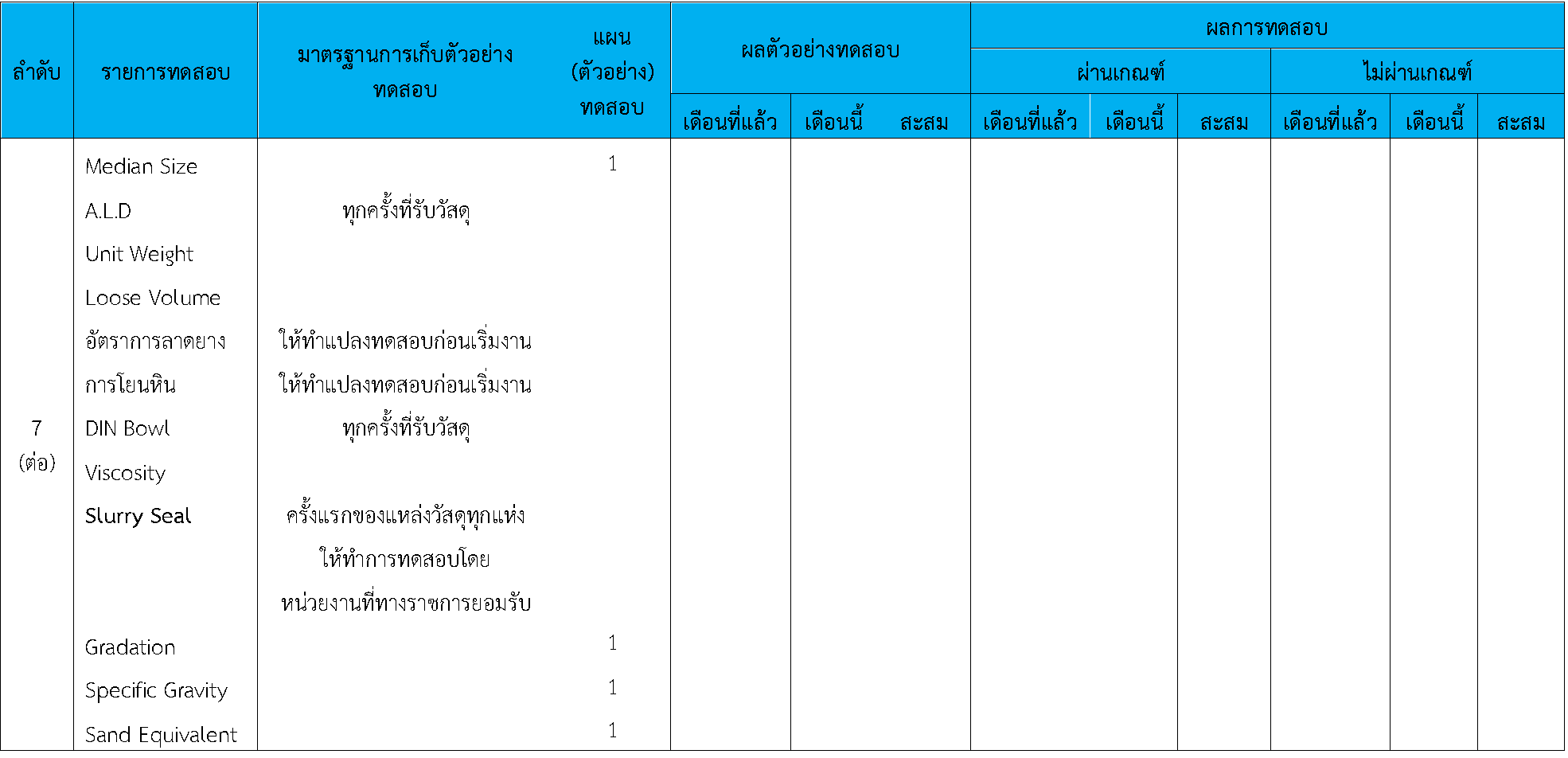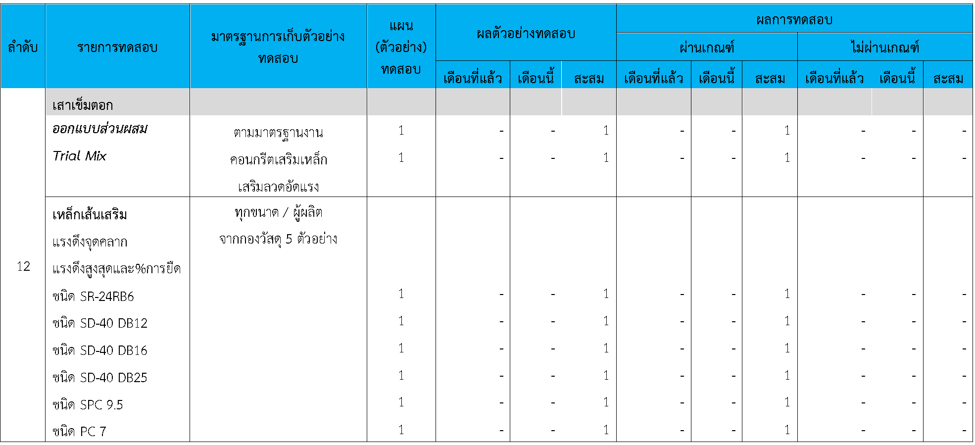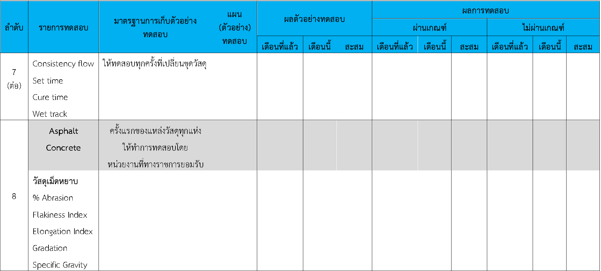 ในระหว่างวันที่ 1-30พฤศจิกายน 2563 ผู้ว่าจ้างได้เสนอหนังสือขออนุมัติใช้วัสดุถึงที่ปรึกษา โดยที่ปรึกษาได้ตรวจสอบวัสดุดังกล่าวมีผลทดสอบดังตาราง