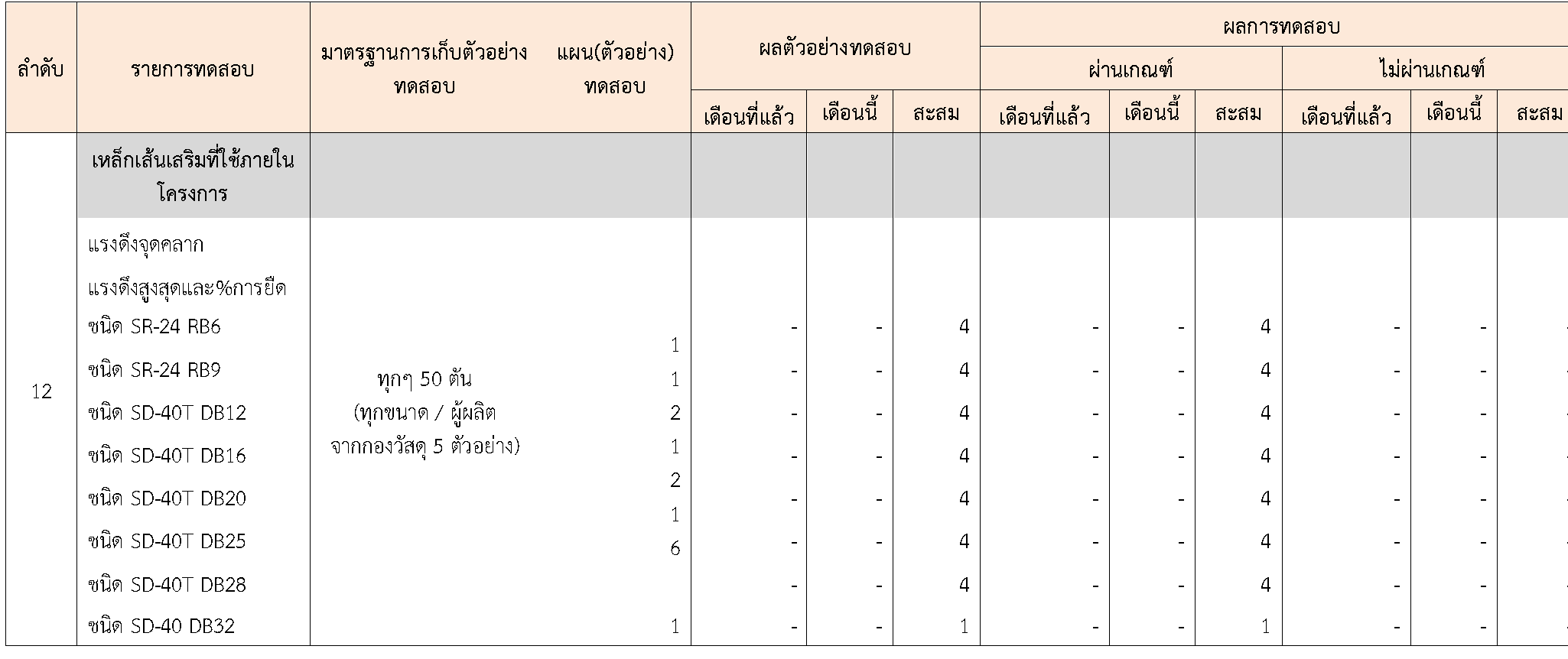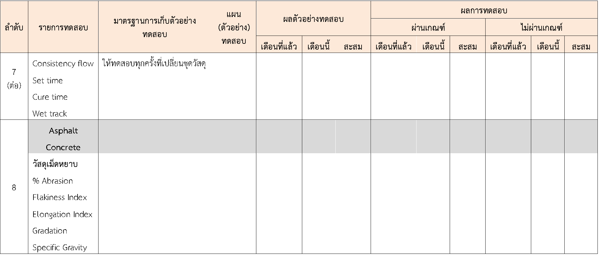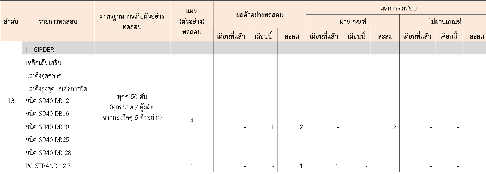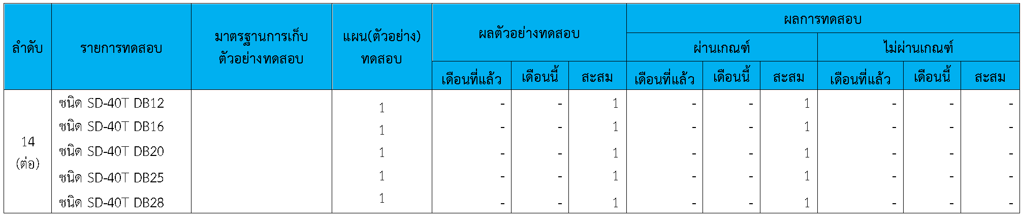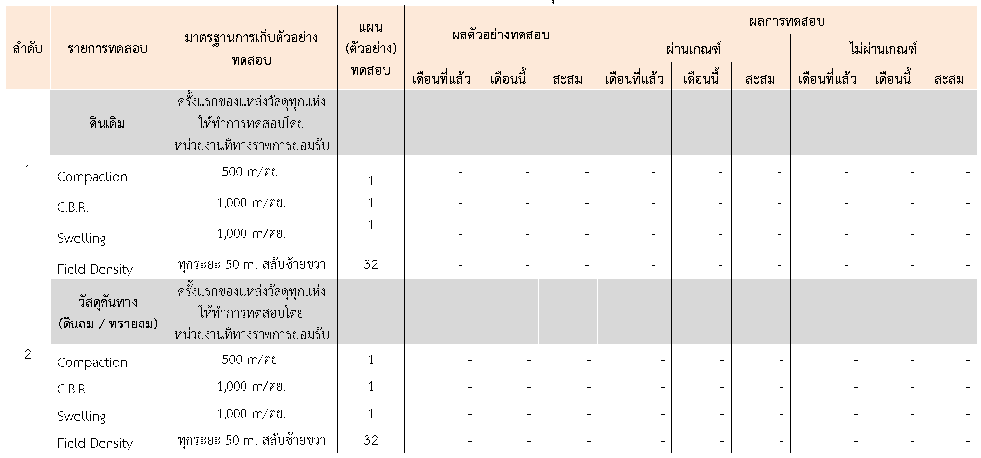 ในระหว่างวันที่ 1-30พฤศจิกายน 2563 ผู้ว่าจ้างได้เสนอหนังสือขออนุมัติใช้วัสดุถึงที่ปรึกษา โดยที่ปรึกษาได้ตรวจสอบวัสดุดังกล่าวมีผลทดสอบดังตาราง