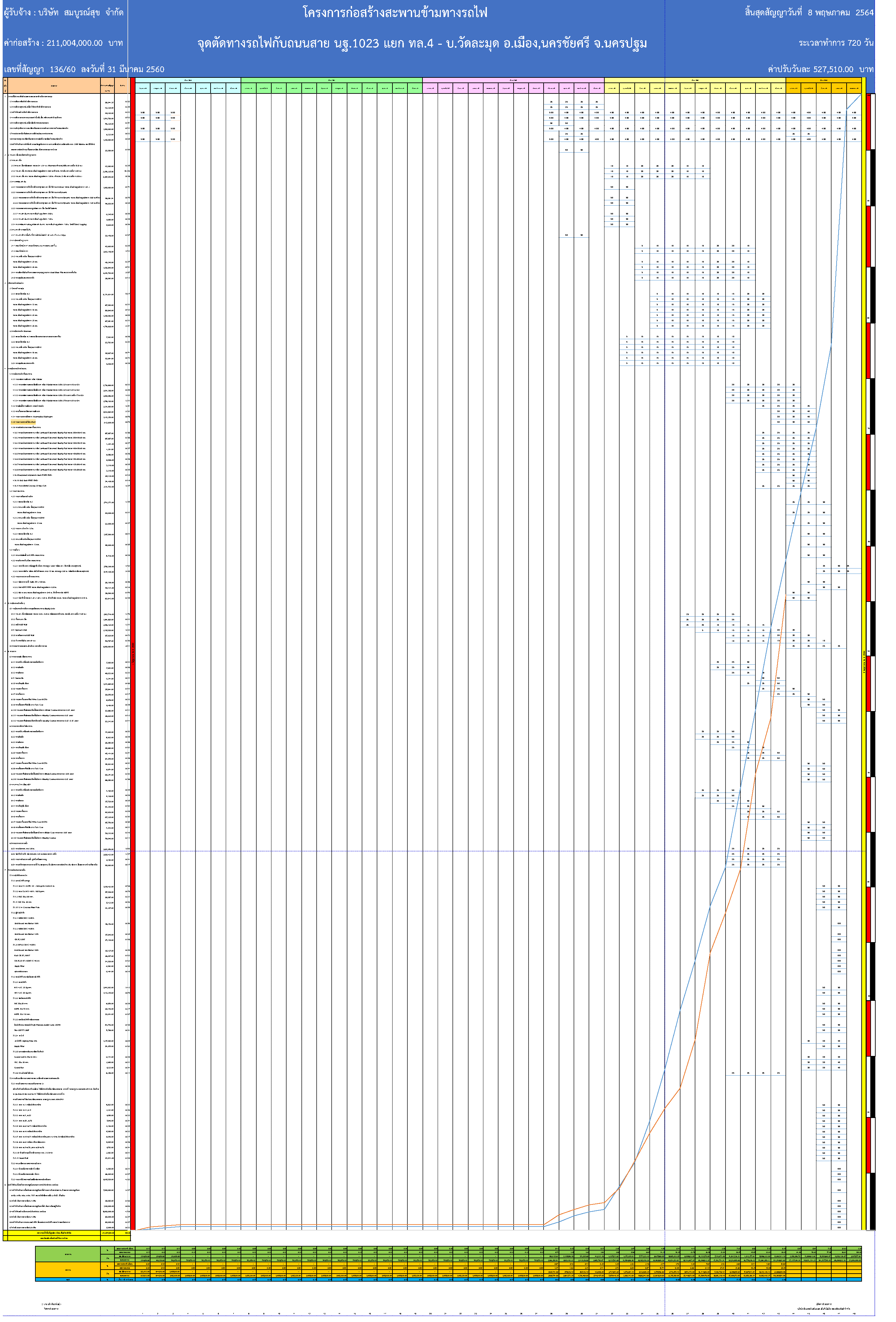 ที่ปรึกษาได้ติดตามความก้าวหน้าของงาน และนำมาจัดทำเป็น S-CURVE เปรียบเทียบกันระหว่างแผนงานและผลงานก่อสร้าง ดังรูปที่ 2.2-1