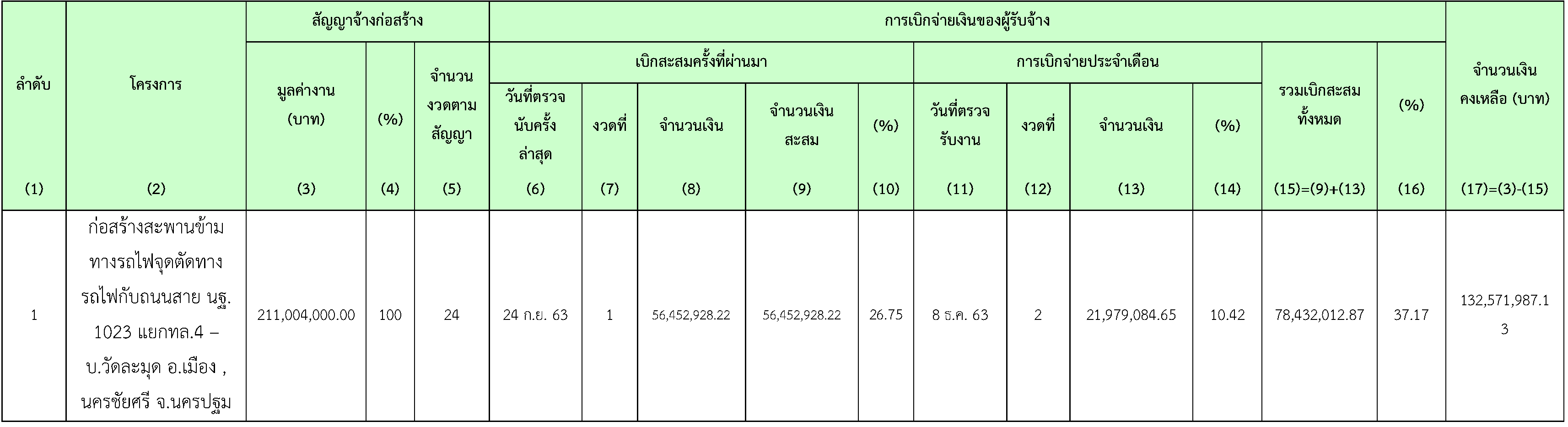 ในเดือน ธันวาคม 2563 มีความก้าวหน้าของงานก่อสร้างและการตรวจรับงาน ดังสรุปในตารางที่ 2.3-1