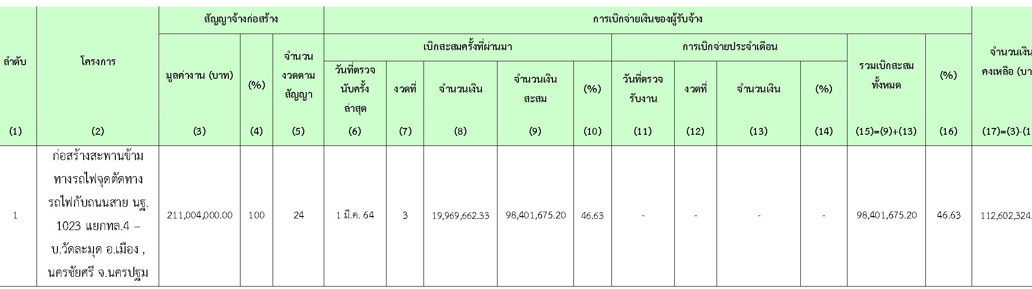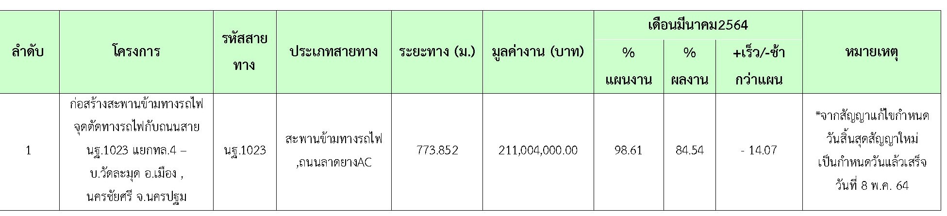 ในเดือน เมษายน2564 มีความก้าวหน้าของงานก่อสร้างและการตรวจรับงาน ดังสรุปในตารางที่ 2.3-1