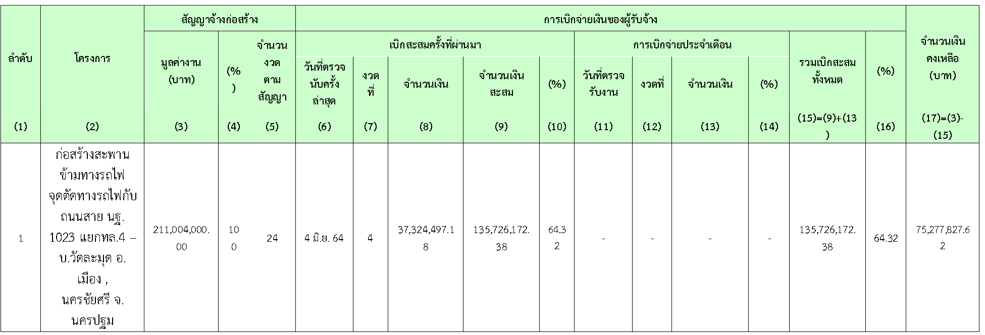 ในเดือน กรกฎาคม 2564 มีความก้าวหน้าของงานก่อสร้าง และการตรวจรับงาน ดังสรุปในตารางที่ 2.3-1