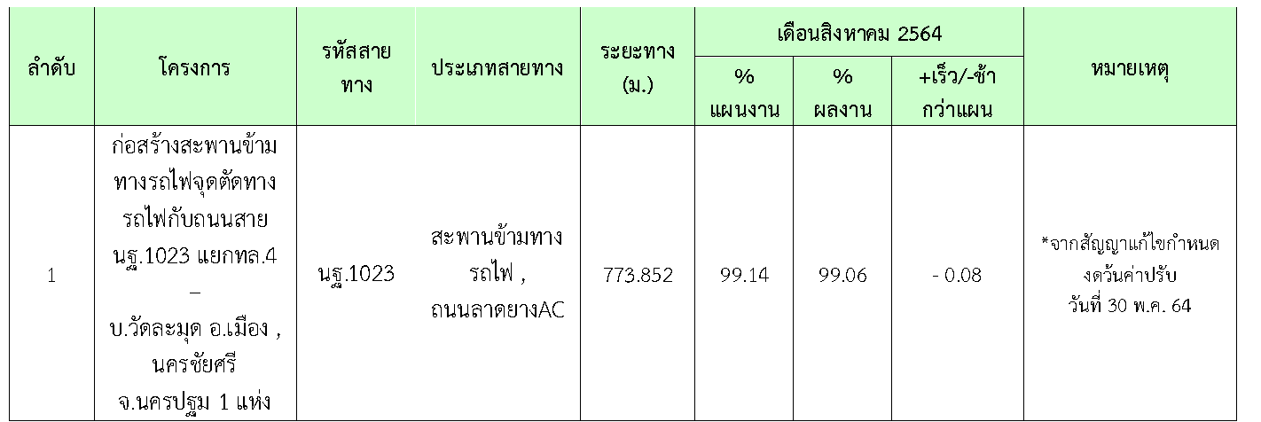 โครงการก่อสร้างสะพานข้ามทางรถไฟ จุดตัดทางรถไฟกับถนนสาย นฐ. 1023แยก ทล.4 – บ้านวัดละมุด อ.เมือง,นครชัยศรี จ.นครปฐม 1 แห่ง