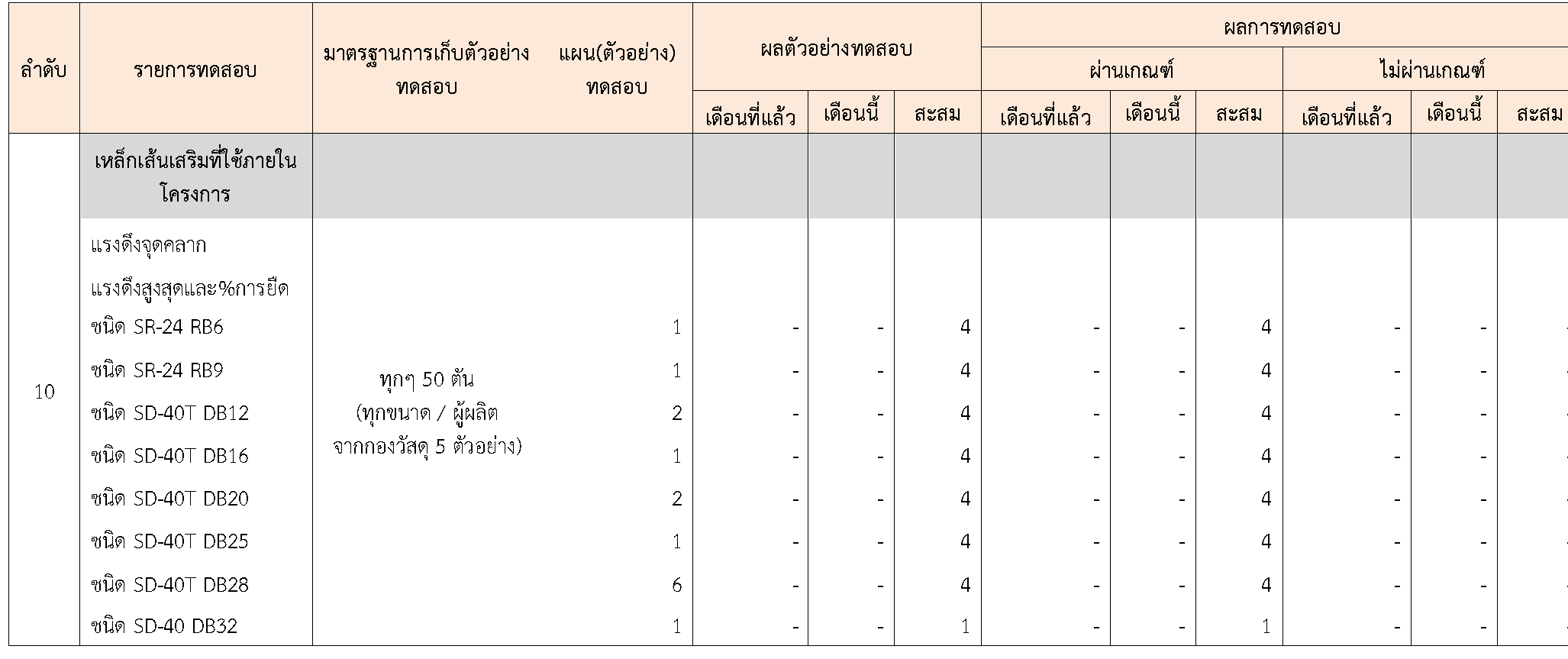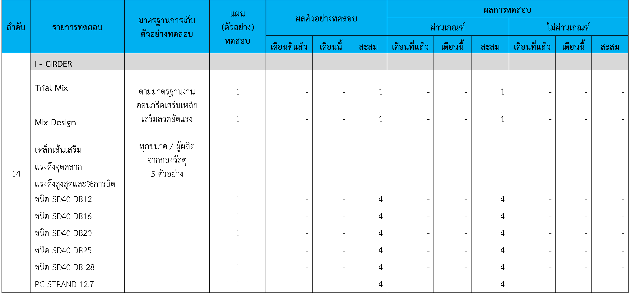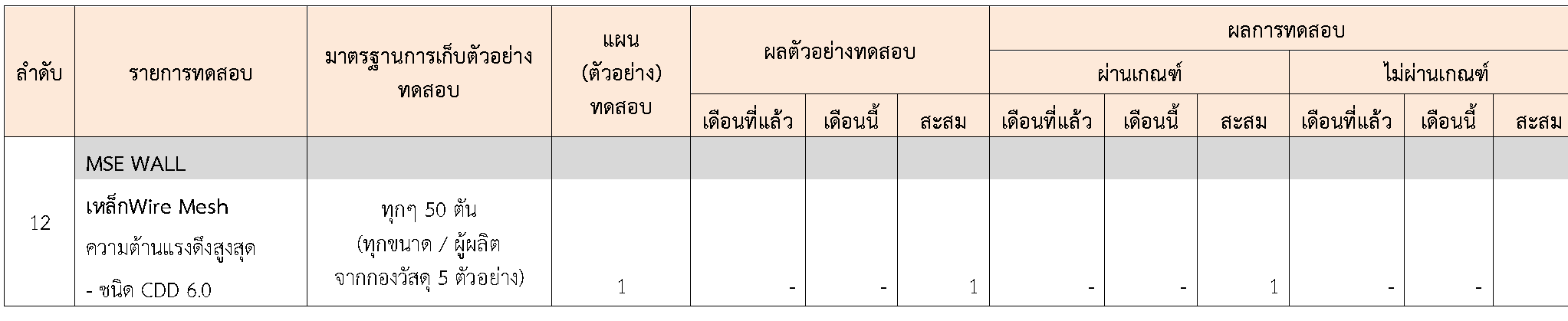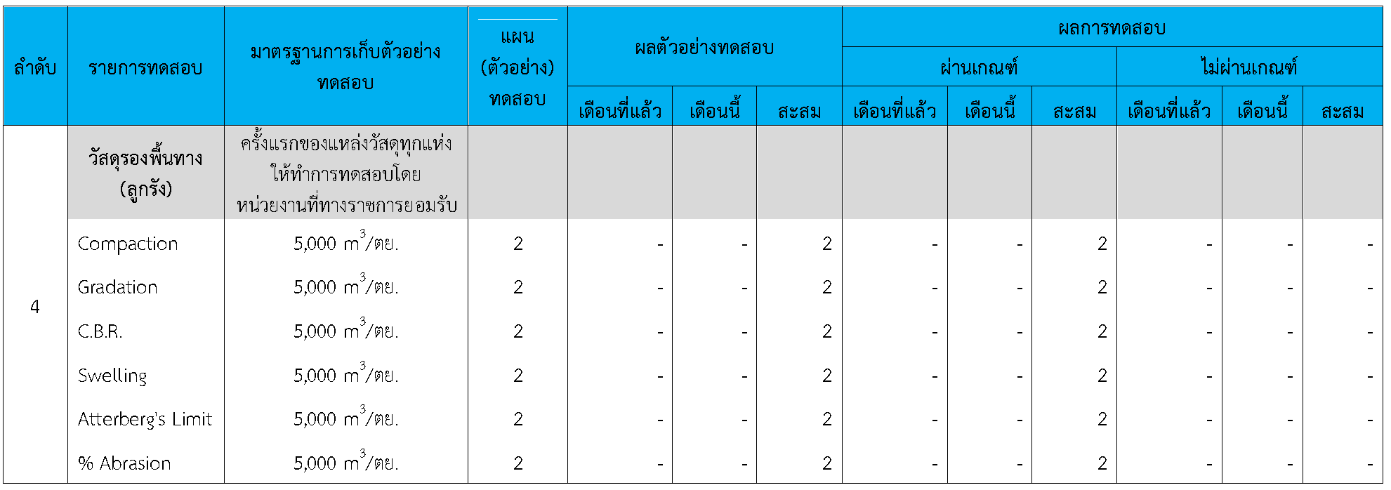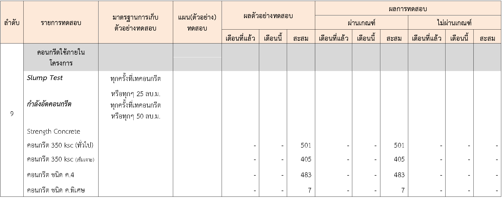 ในระหว่างวันที่ 1-31สิงหาคม 2564ผู้ว่าจ้างได้เสนอหนังสือขออนุมัติใช้วัสดุถึงที่ปรึกษา โดยที่ปรึกษาได้ตรวจสอบวัสดุดังกล่าวมีผลทดสอบดังตาราง