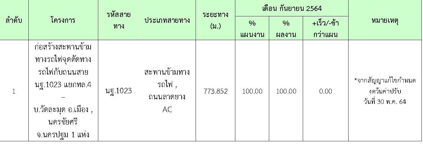 โครงการก่อสร้างสะพานข้ามทางรถไฟ จุดตัดทางรถไฟกับถนนสาย นฐ. 1023แยก ทล.4 – บ้านวัดละมุด อ.เมือง, นครชัยศรี จ.นครปฐม 1 แห่ง