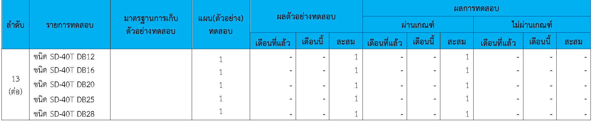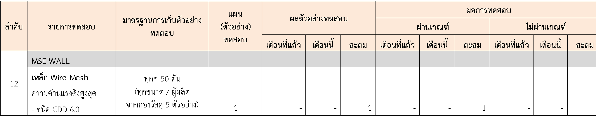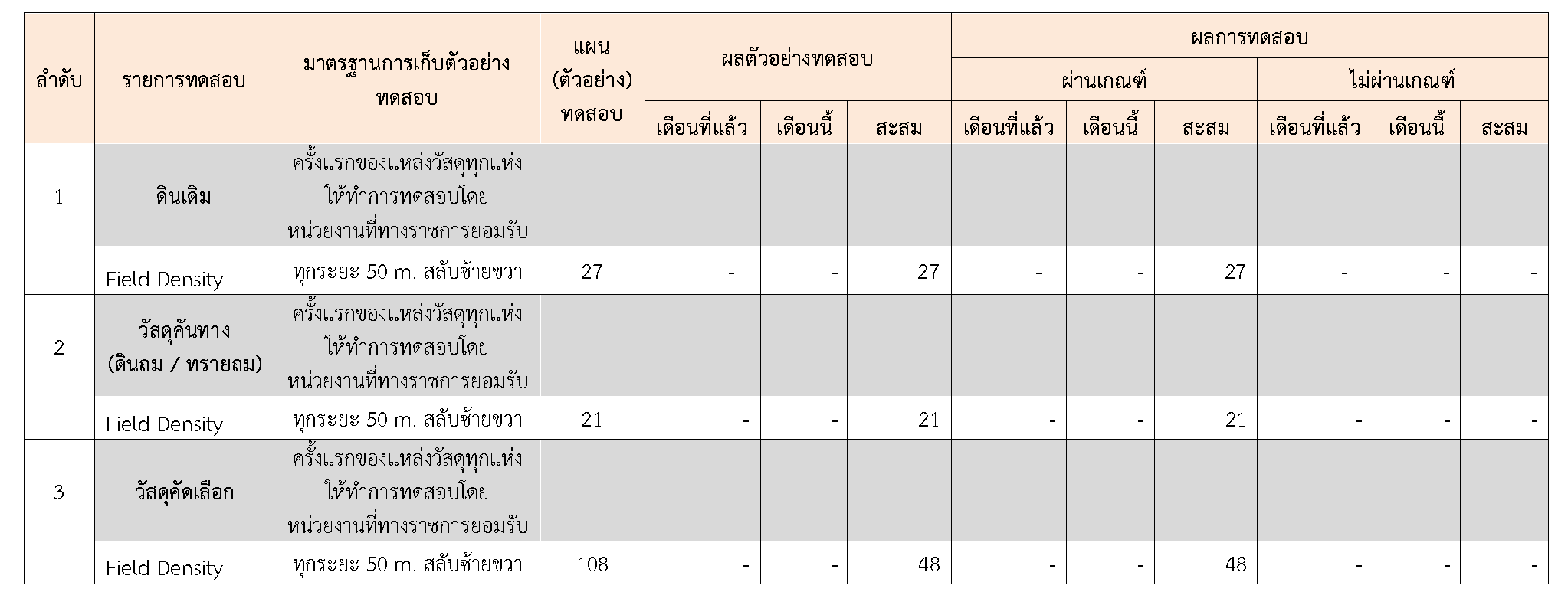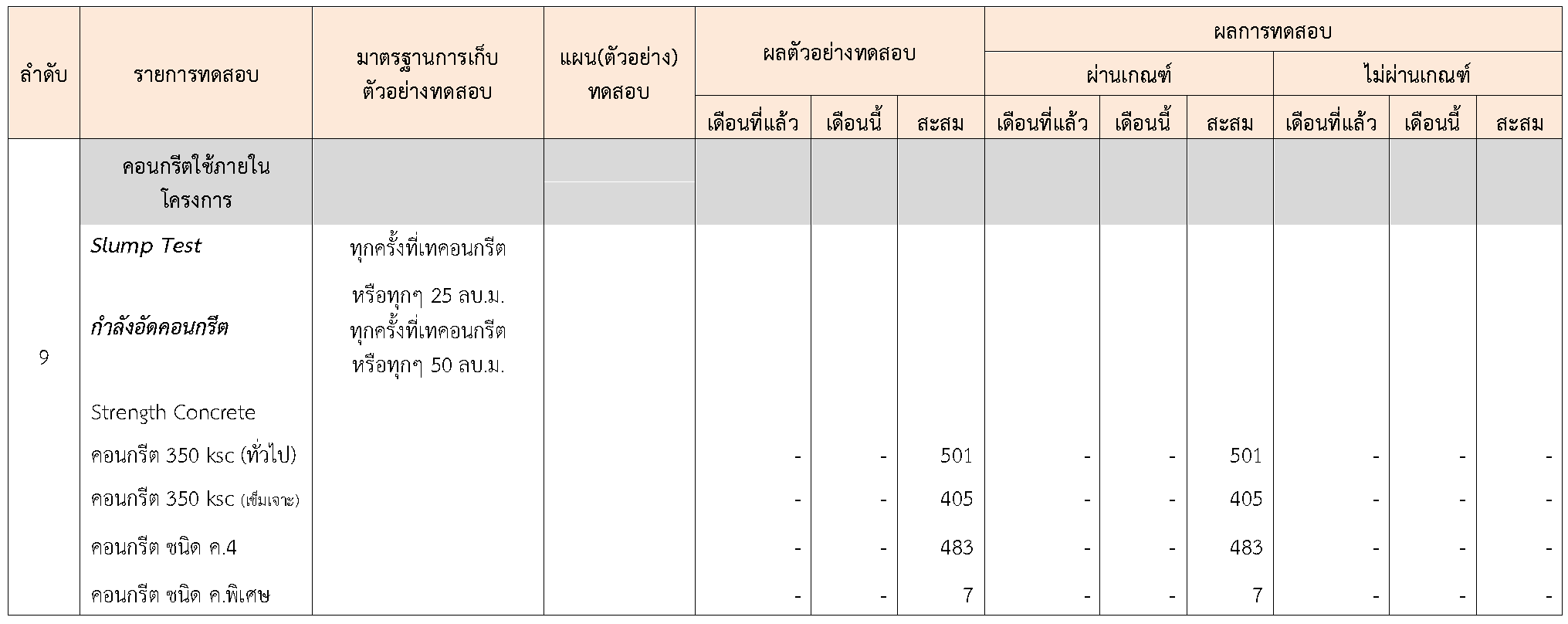ในระหว่างวันที่ 1-30 กันยายน 2564 ผู้ว่าจ้างได้เสนอหนังสือขออนุมัติใช้วัสดุถึงที่ปรึกษา โดยที่ปรึกษาได้ตรวจสอบวัสดุดังกล่าวมีผลทดสอบดังตาราง