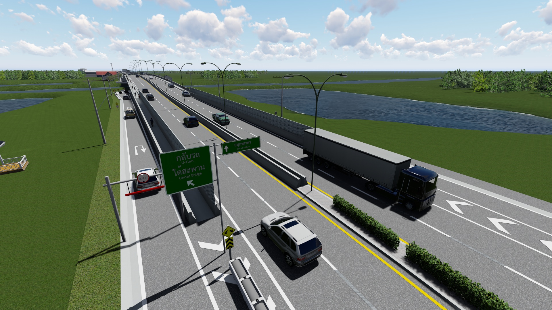9.จุดกลับรถใต้สะพานข้ามคลองมหาชัย บริเวณ กม.ที่2+362.5 สูง 3 เมตร