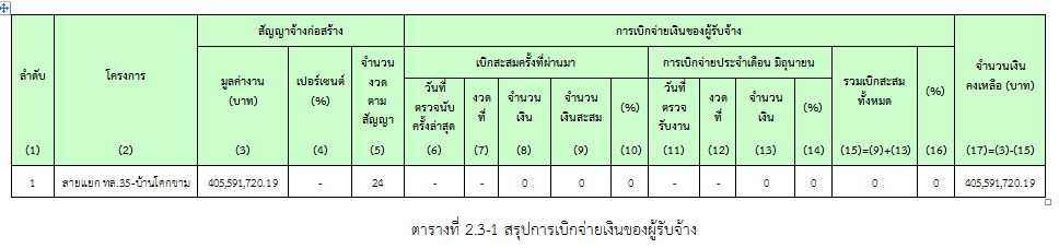 2.3 สรุปการเบิกจ่ายเงินของผู้รับจ้าง