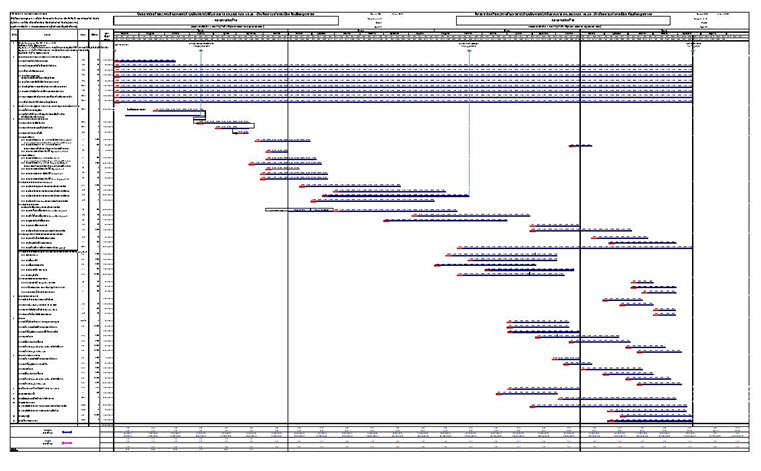 เนื่องจากในช่วงเดือนที่ 6 ของโครงการ ผู้รับจ้างกำลังเคลียร์สิ่งปลูกสร้างหน้างานในสนาม และได้จัดทำแผนงานของกิจกรรมก่อสร้างต่างๆ ในกรอบเวลาของสัญญา ให้ทางที่ปรึกษาพิจารณา ดังรูปที่ 2.2-1