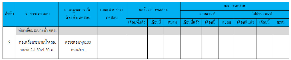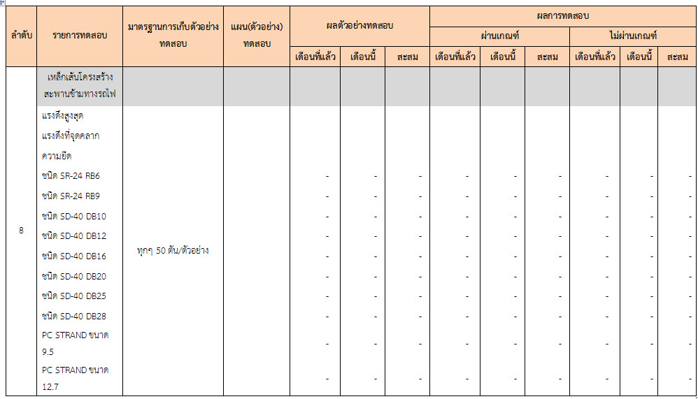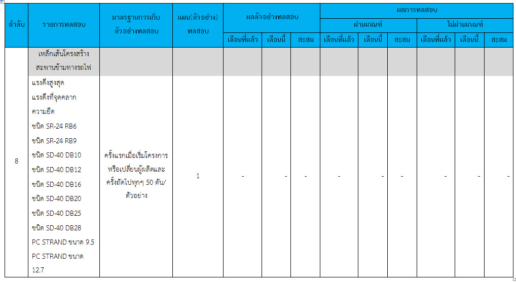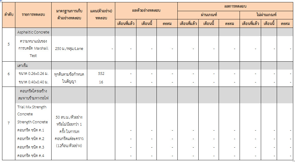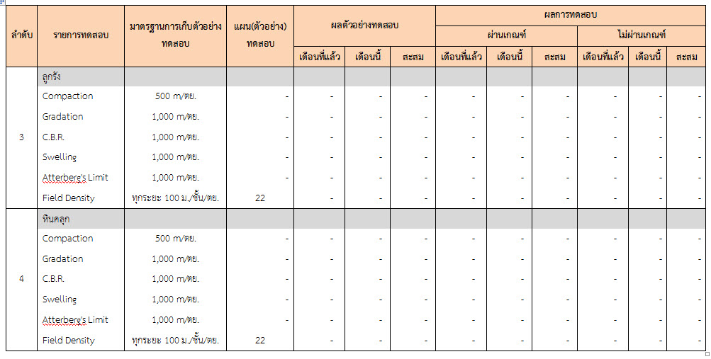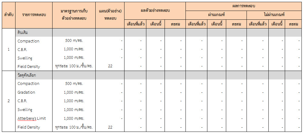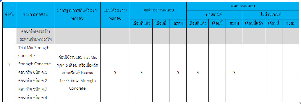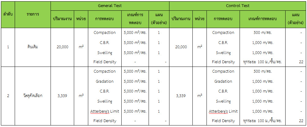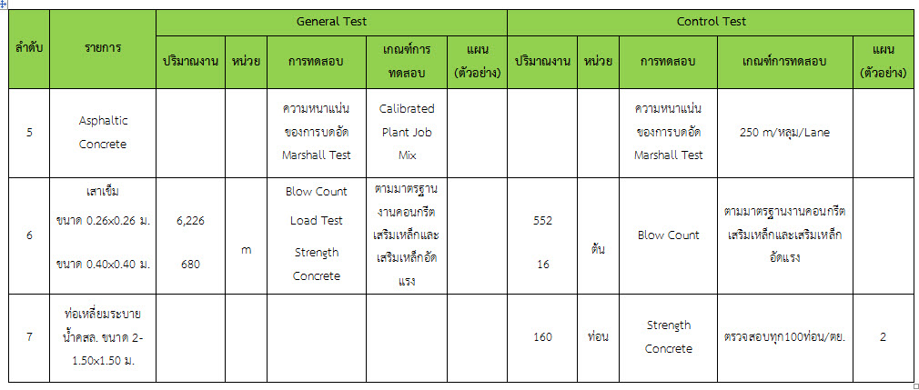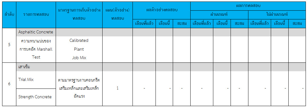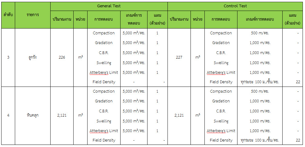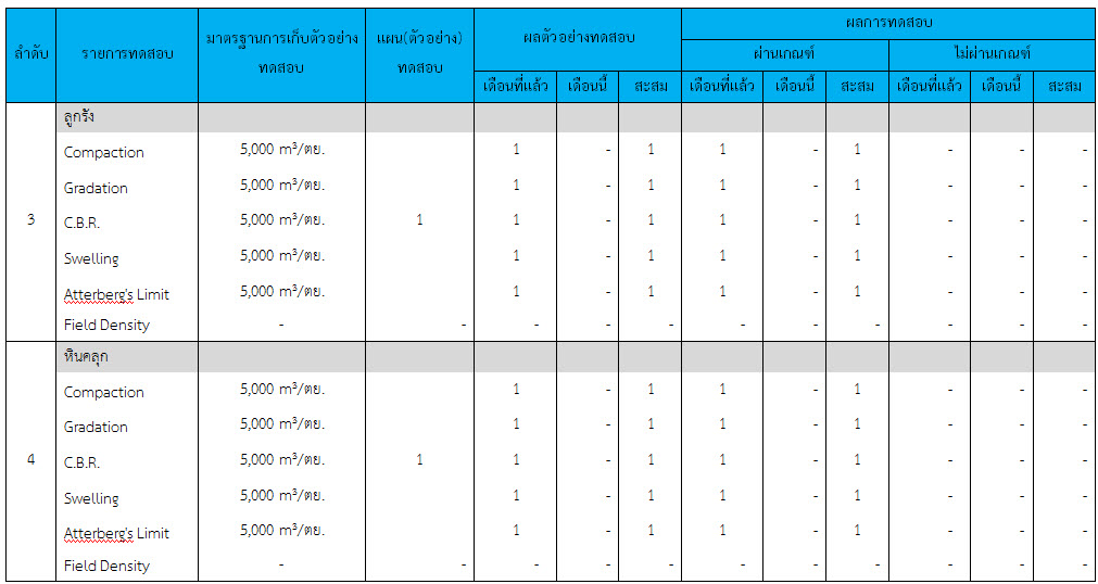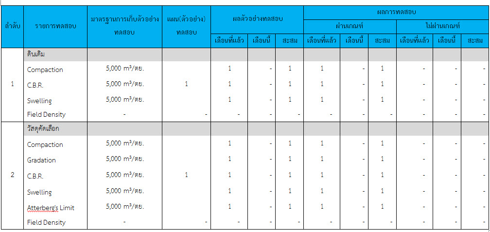 ในระหว่างวันที่ 1-31 ธันวาคม ๒๕๕๙ ผู้ว่าจ้างได้เสนอหนังสือขออนุมัติใช้วัสดุถึงที่ปรึกษา โดยที่ปรึกษาได้ตรวจสอบวัสดุดังกล่าวมีผลทดสอบดังตาราง