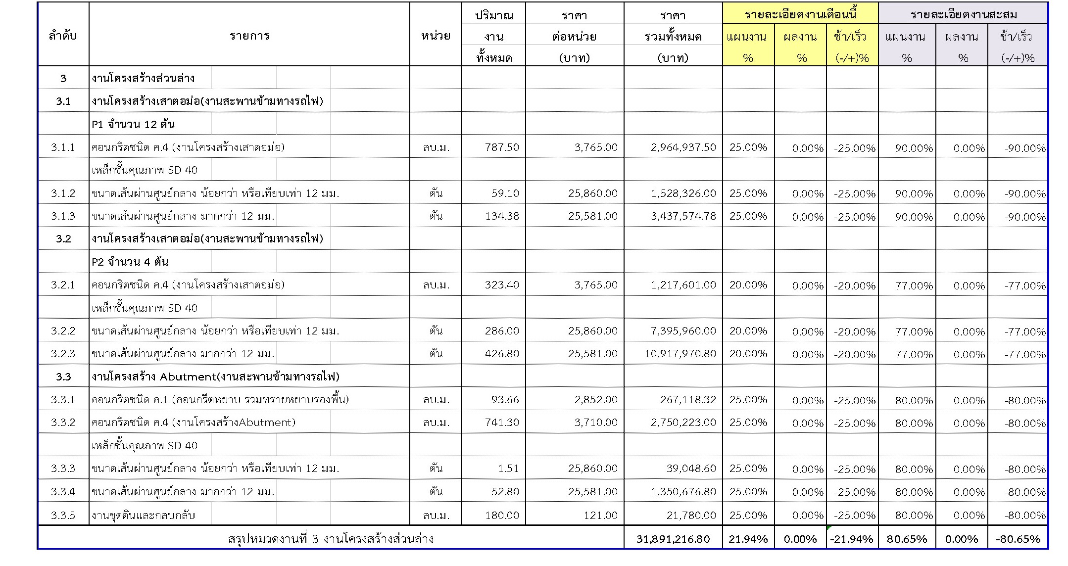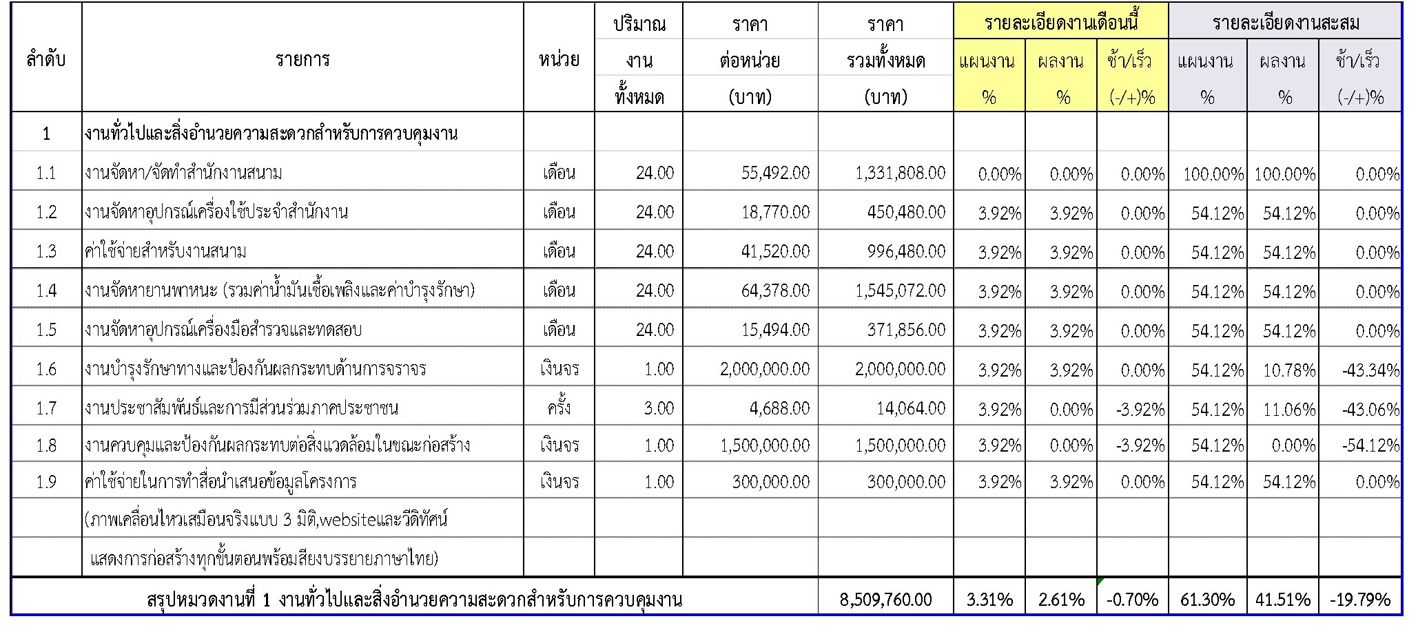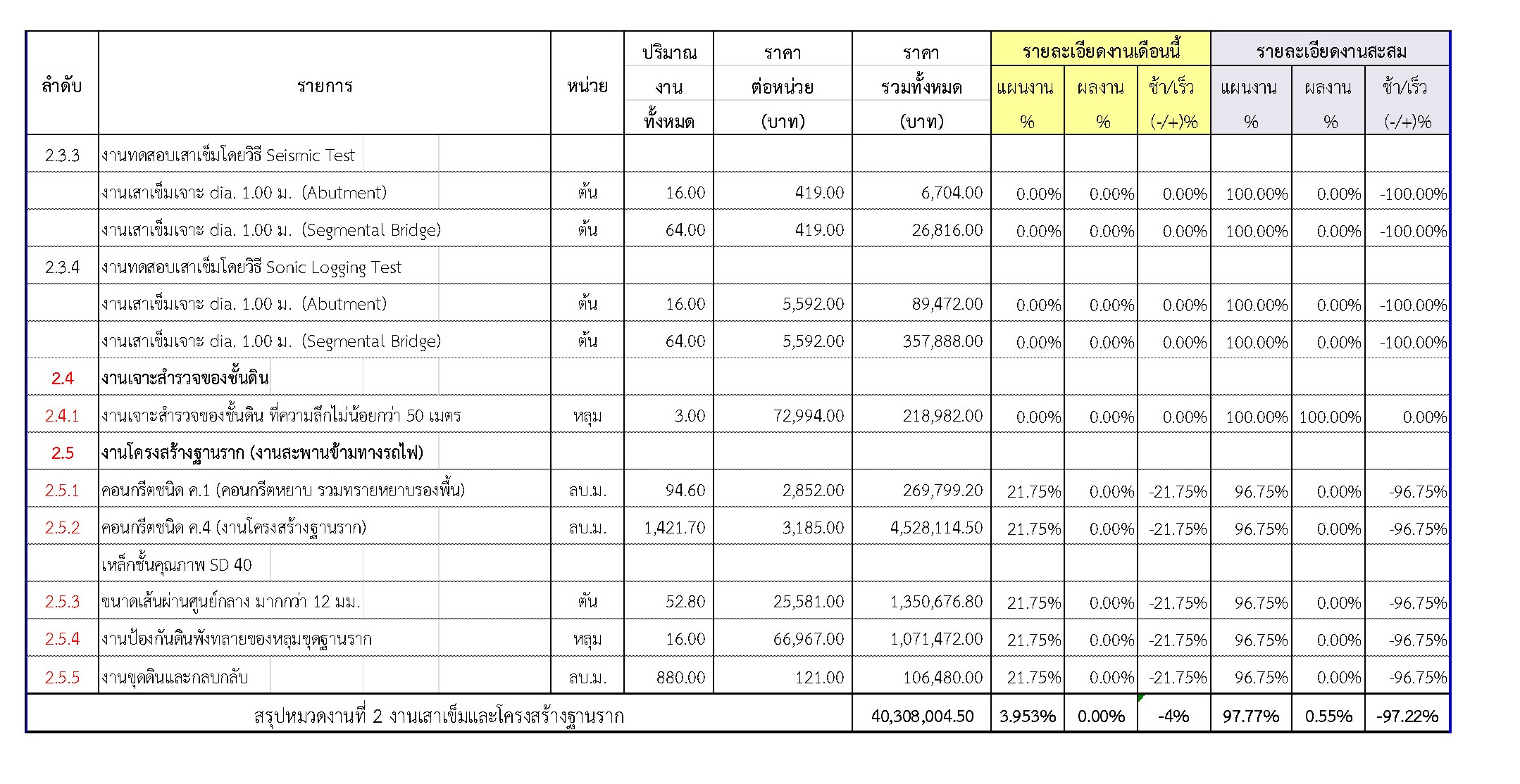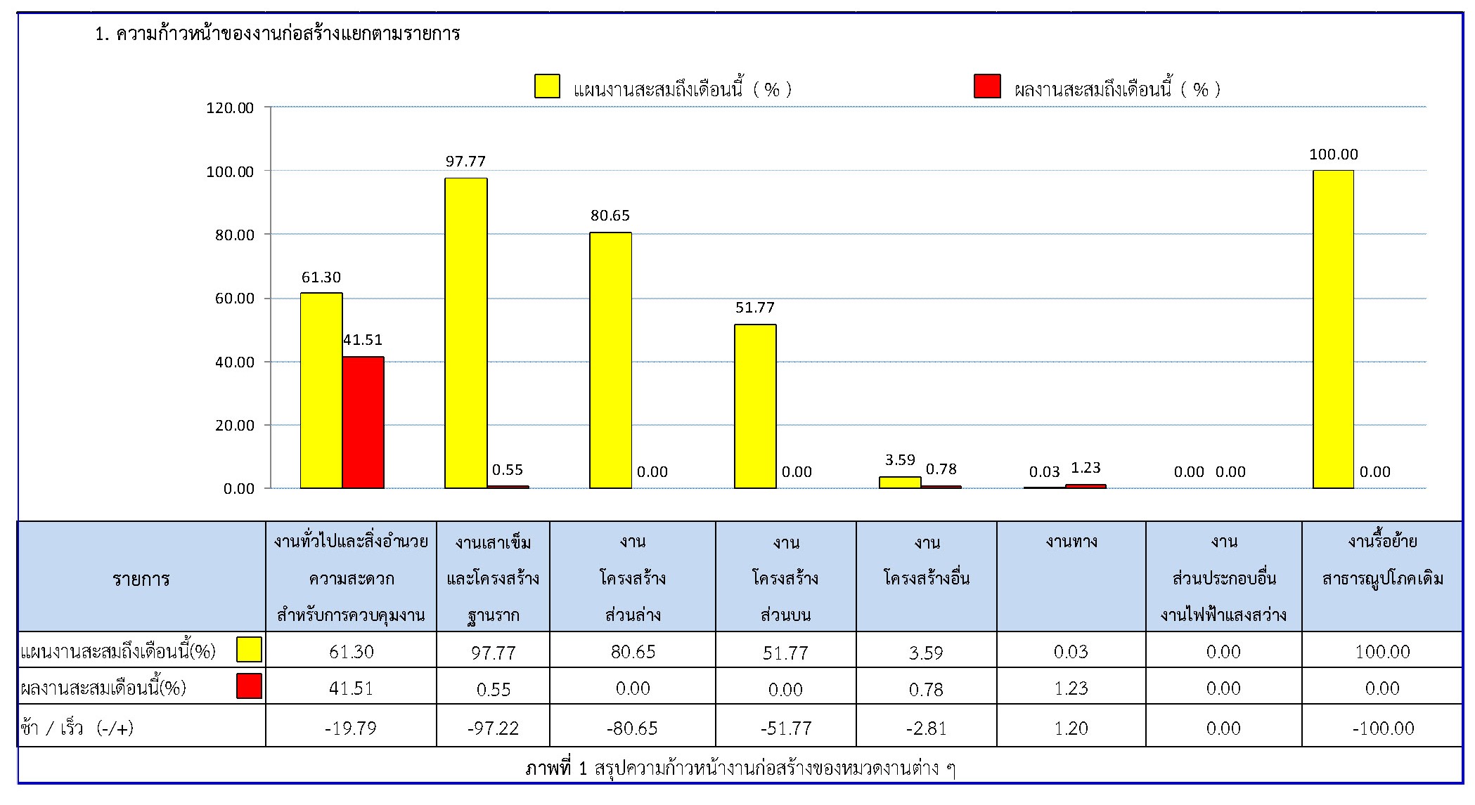 ตารางที่ 2.1-1 สรุปผลงานความก้าวหน้าของงานก่อสร้าง