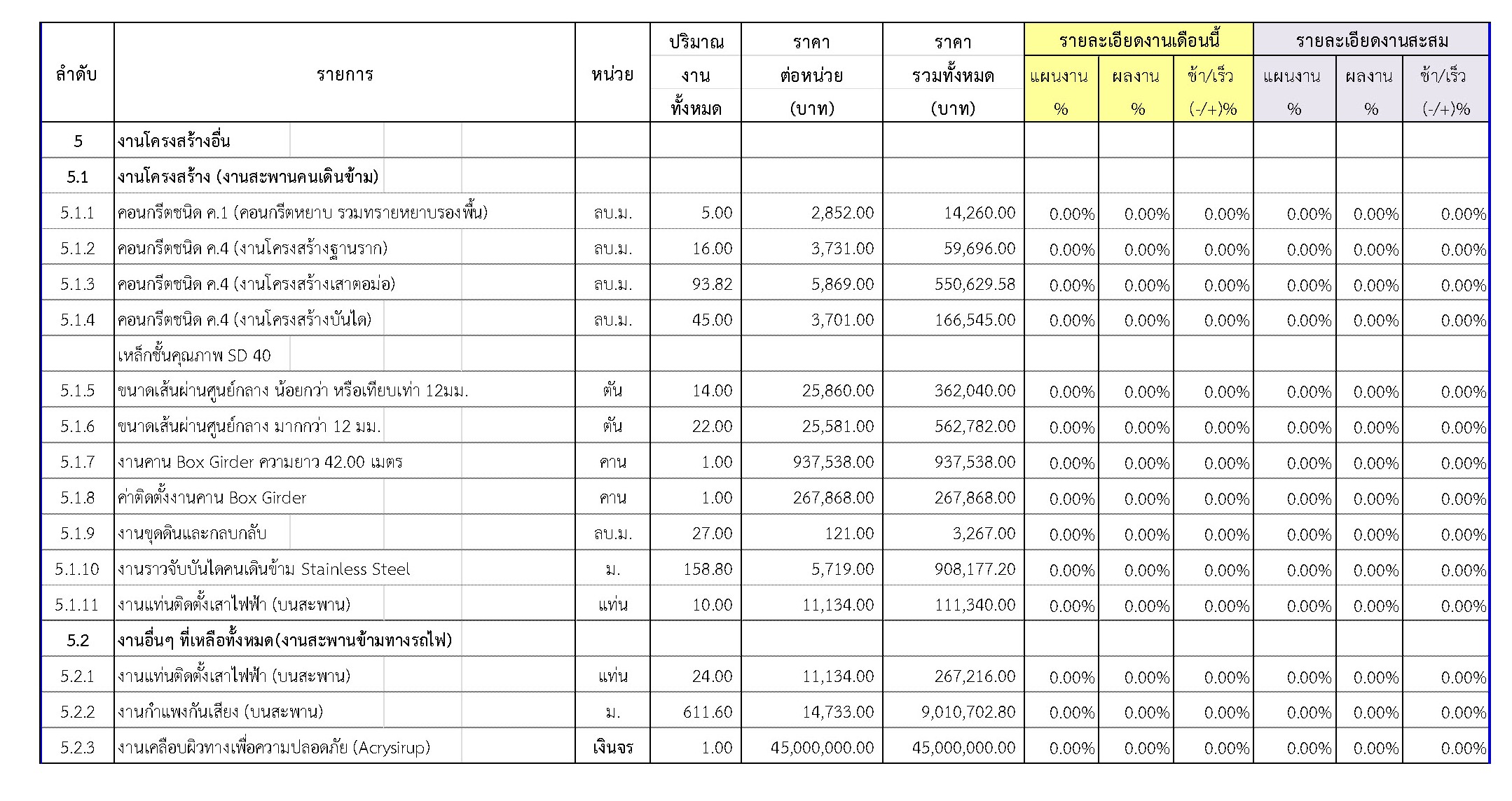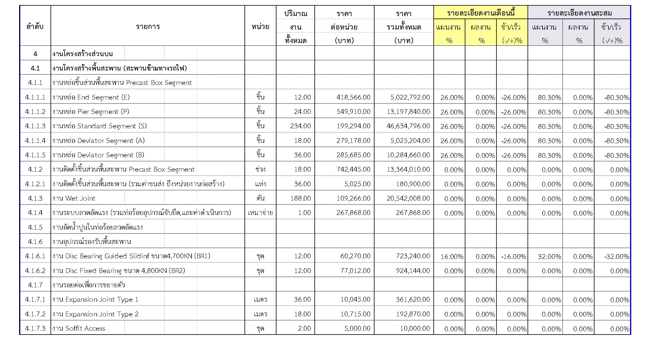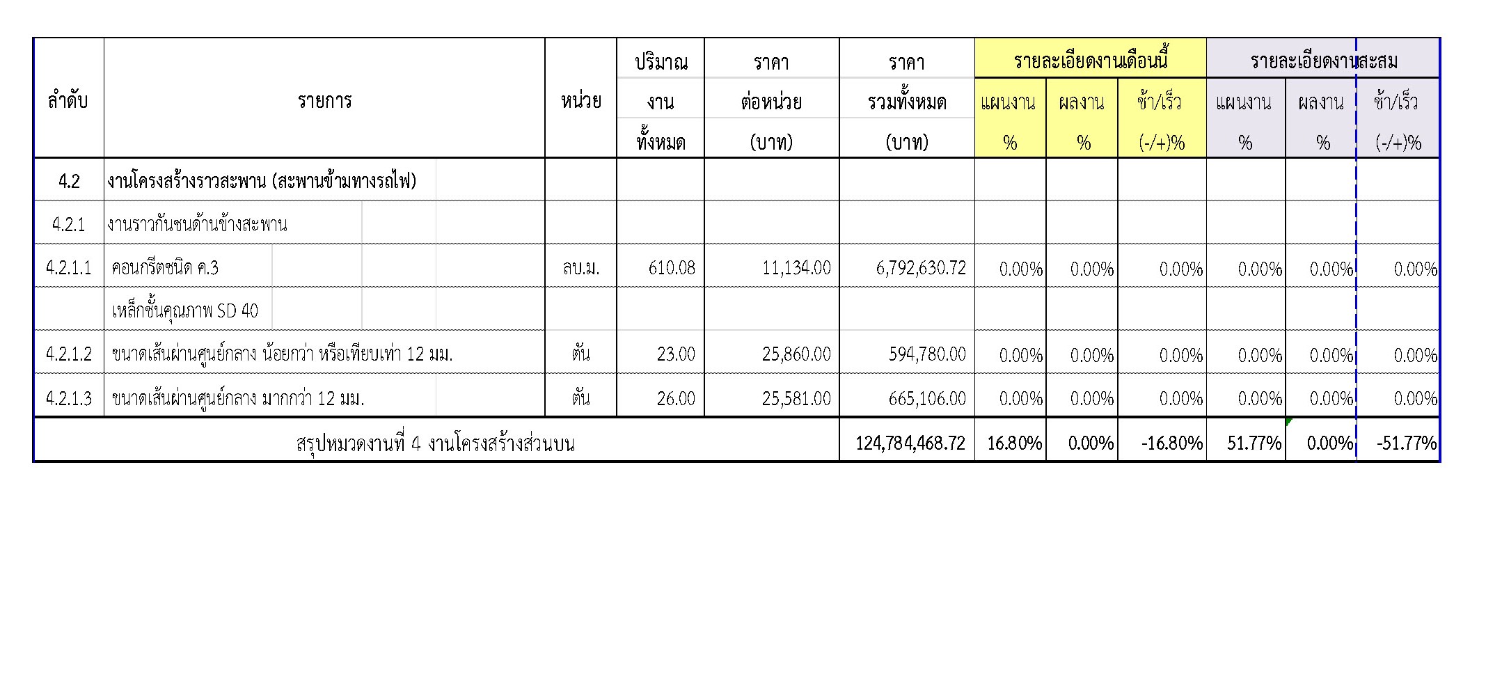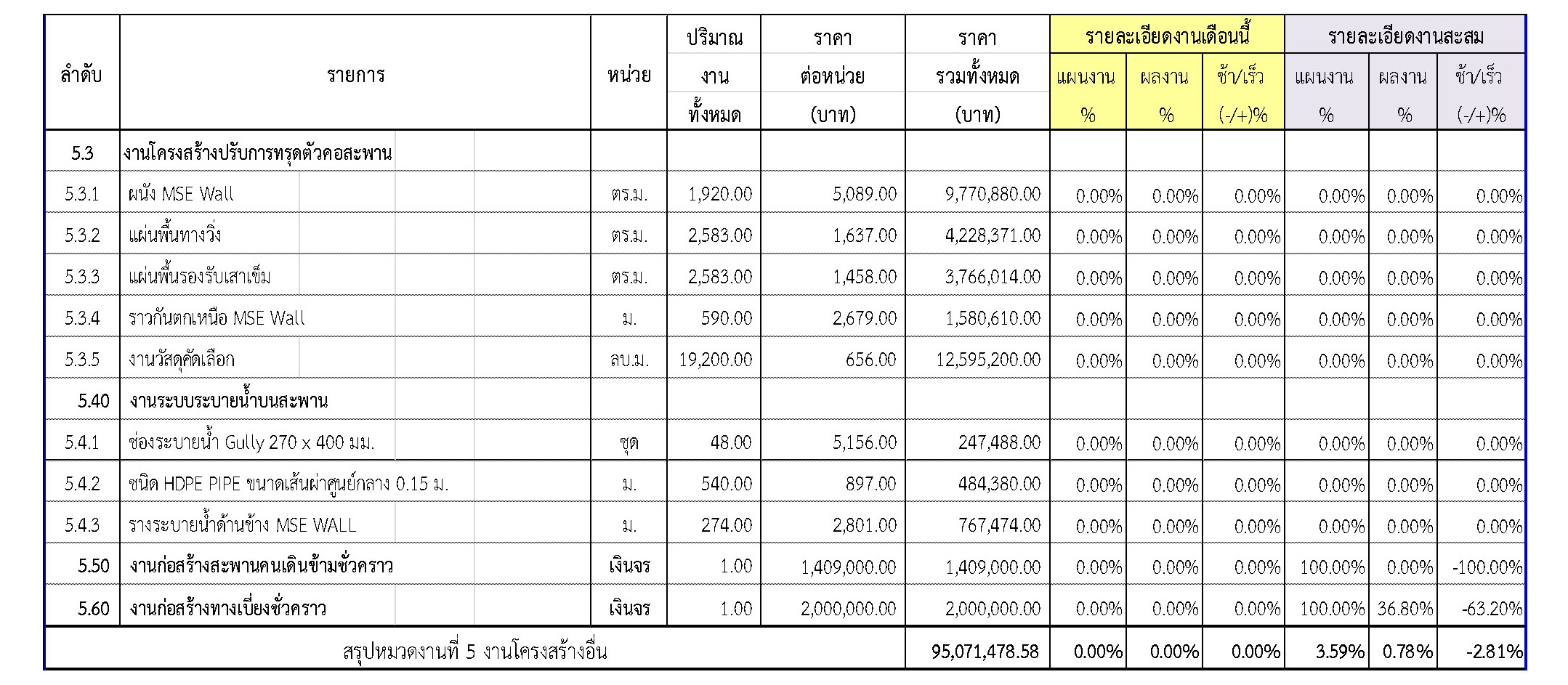 ตารางที่ 2.1-1 สรุปผลงานความก้าวหน้าของงานก่อสร้าง