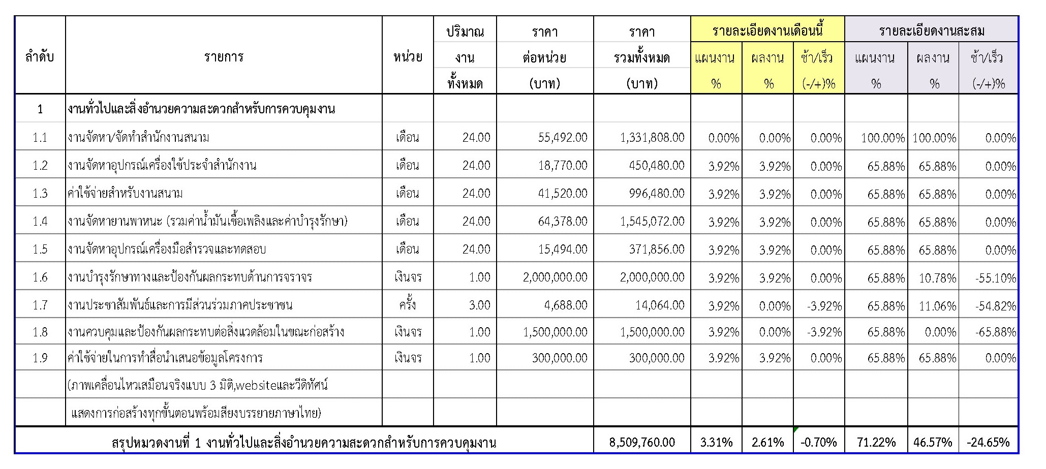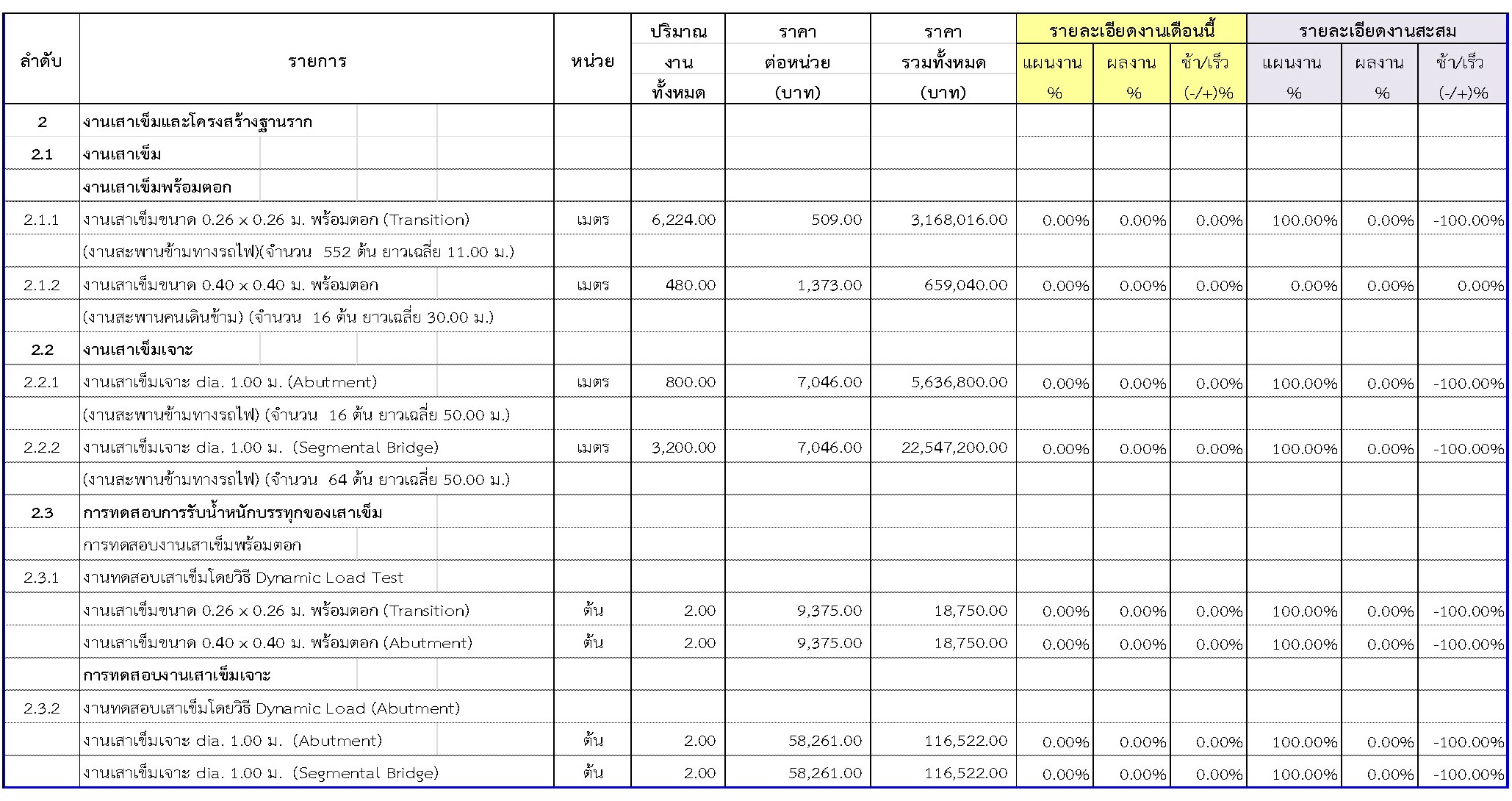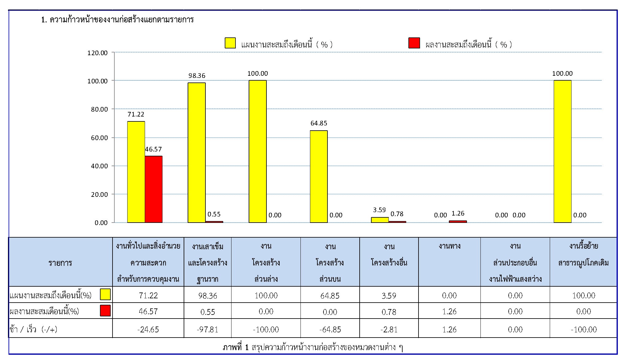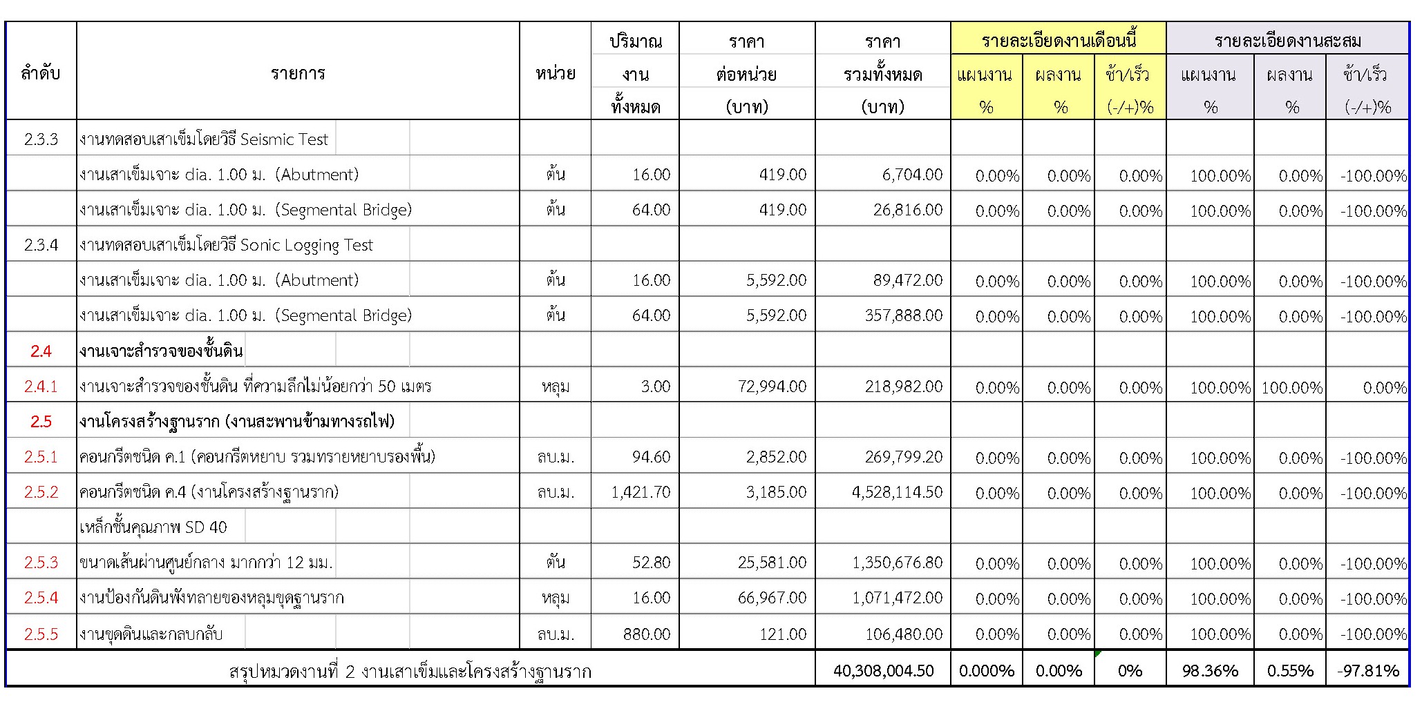2.2 ความก้าวหน้าของงานก่อสร้างแยกตามรายการ
