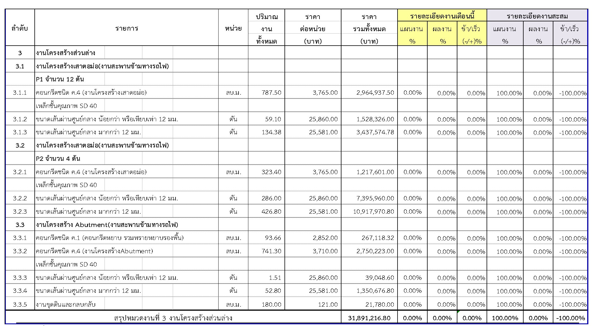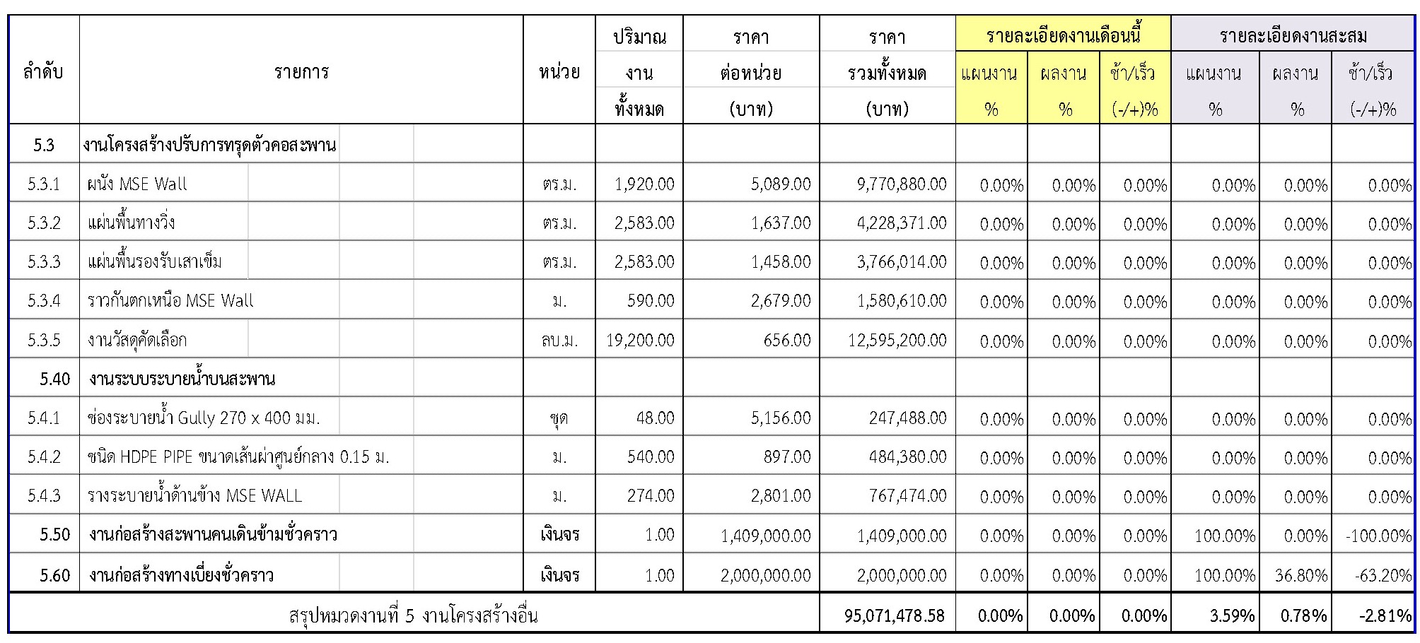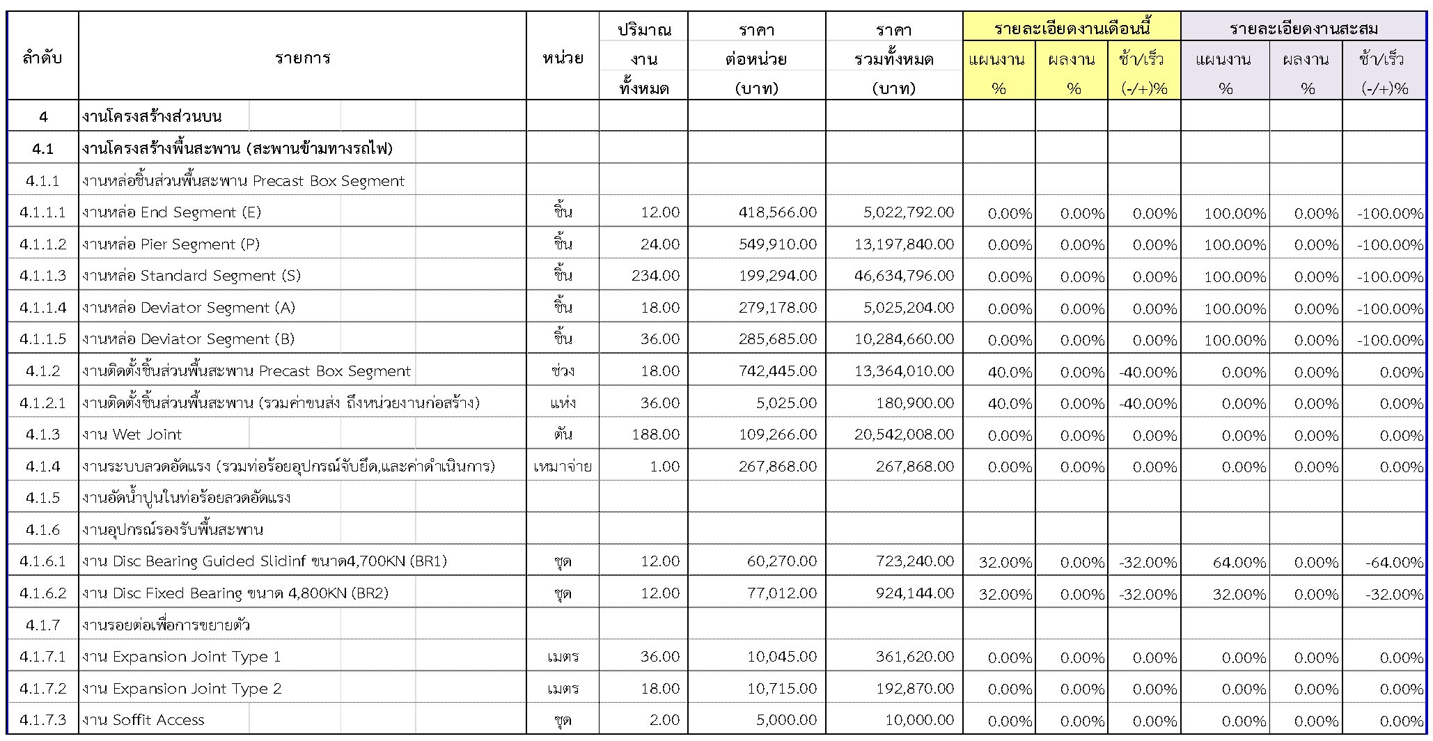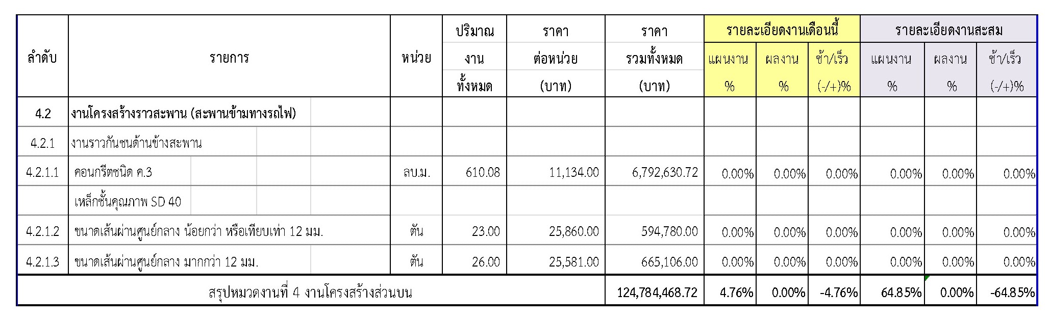 2.2 ความก้าวหน้าของงานก่อสร้างแยกตามรายการ
