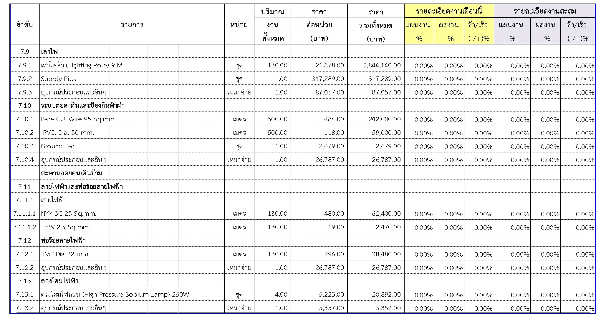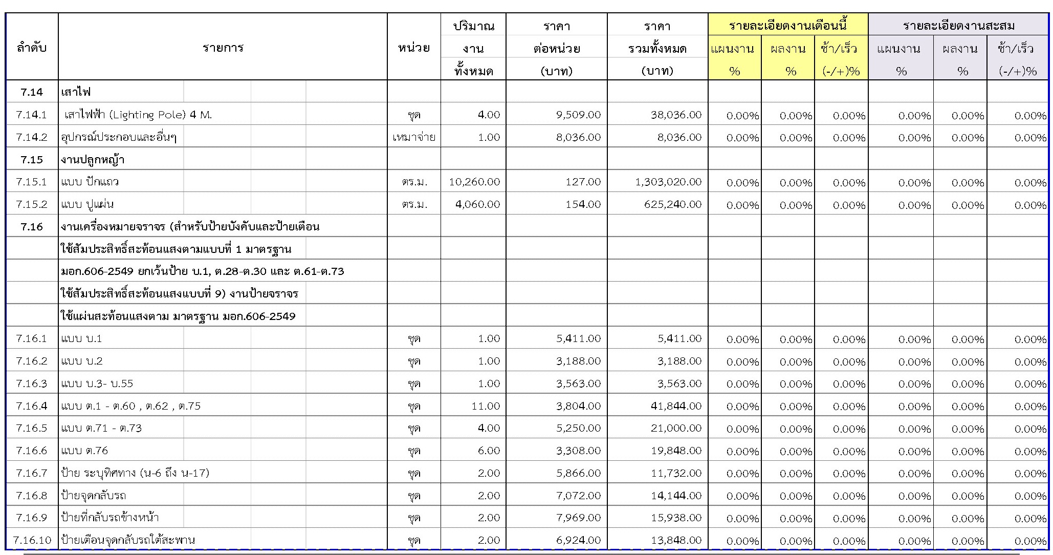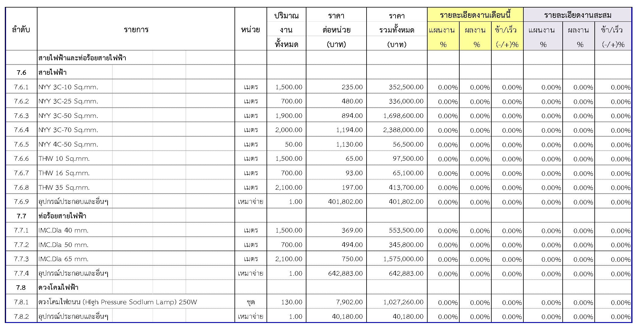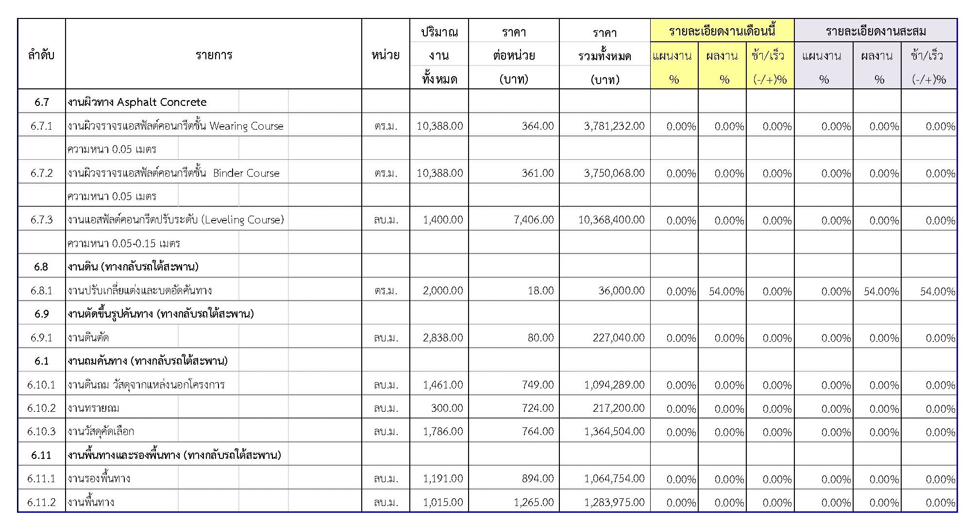 2.2 ความก้าวหน้าของงานก่อสร้างแยกตามรายการ