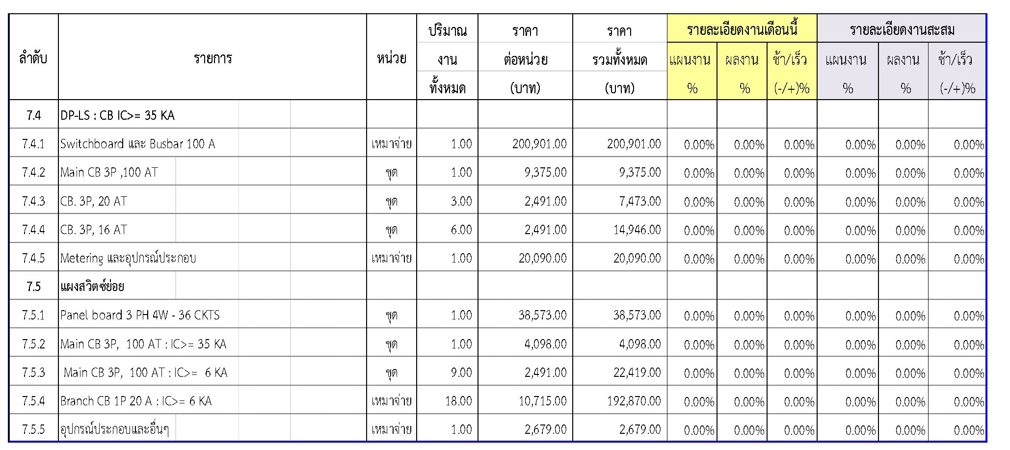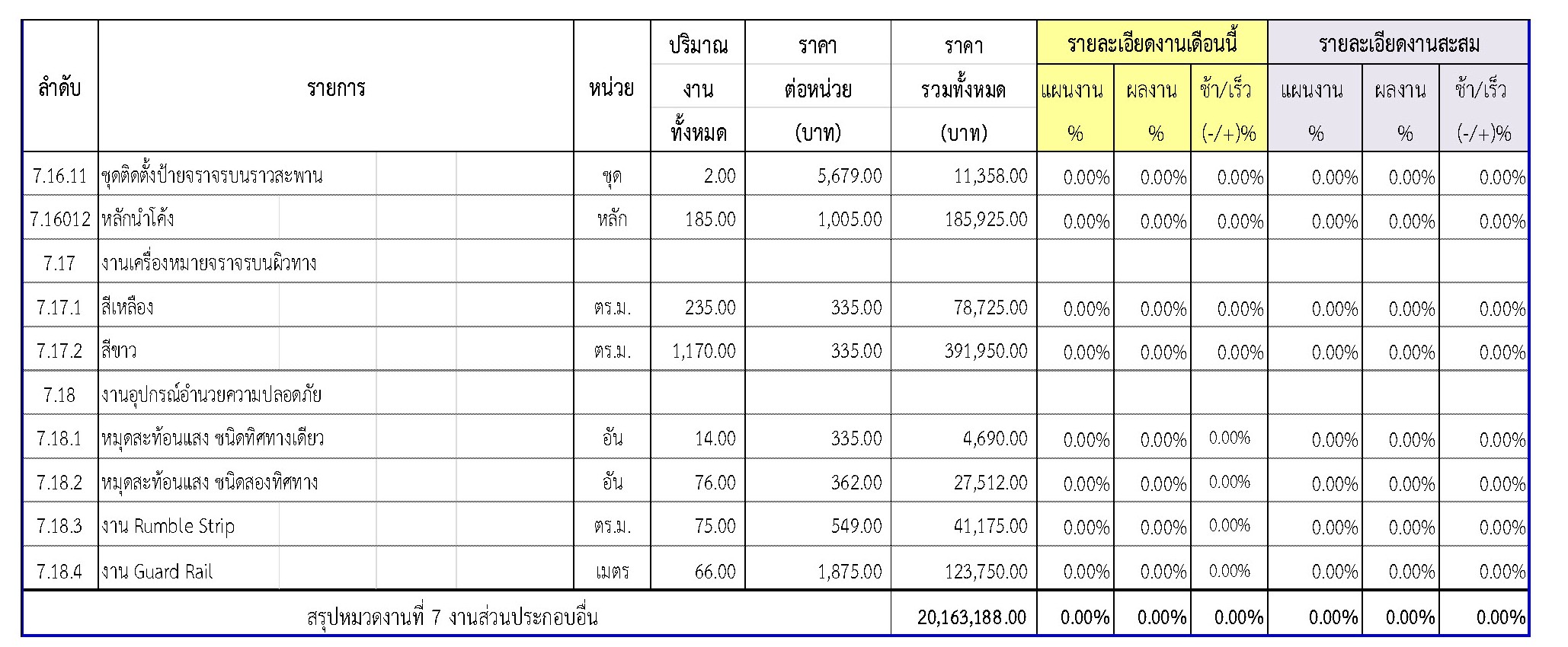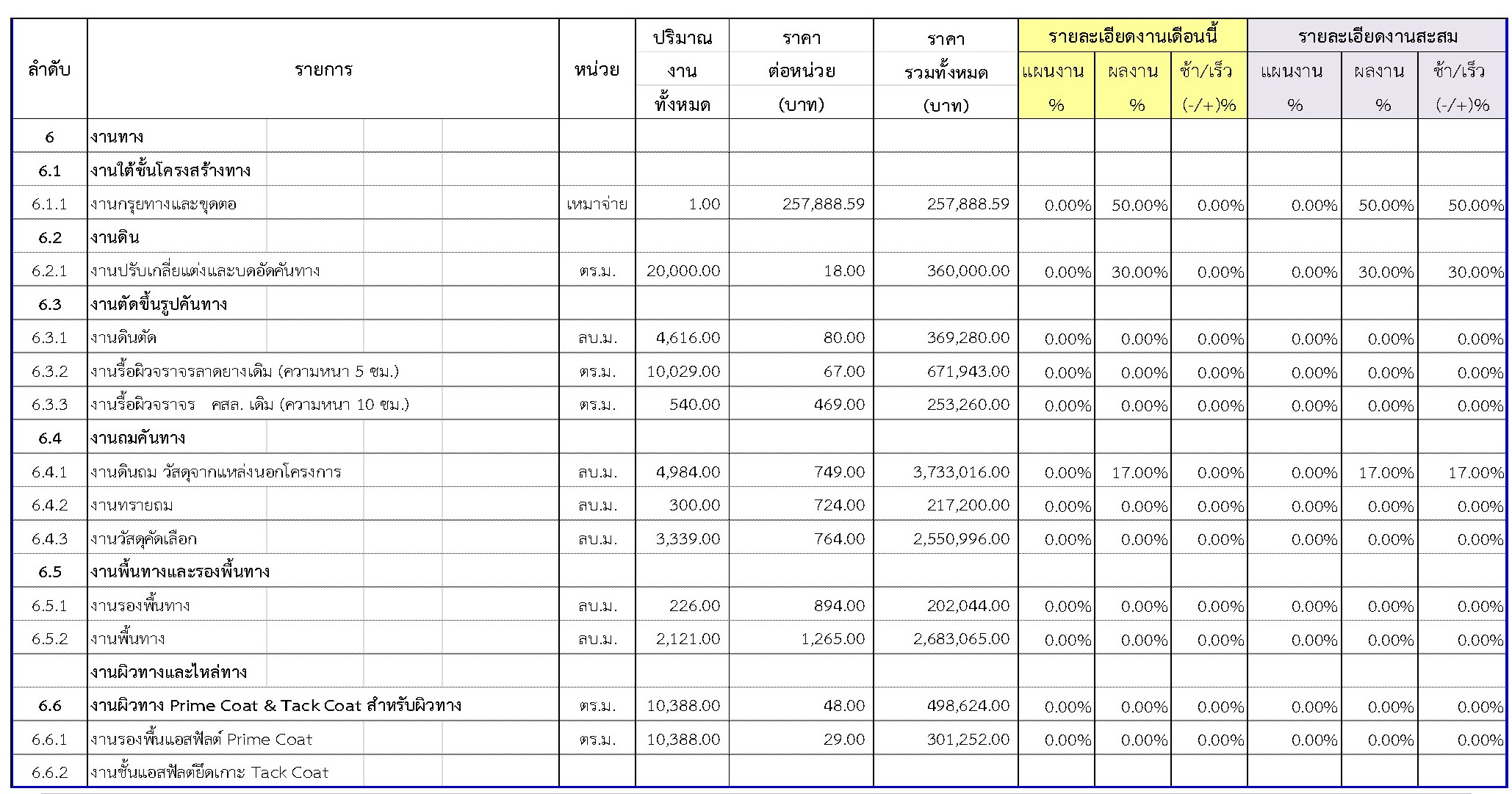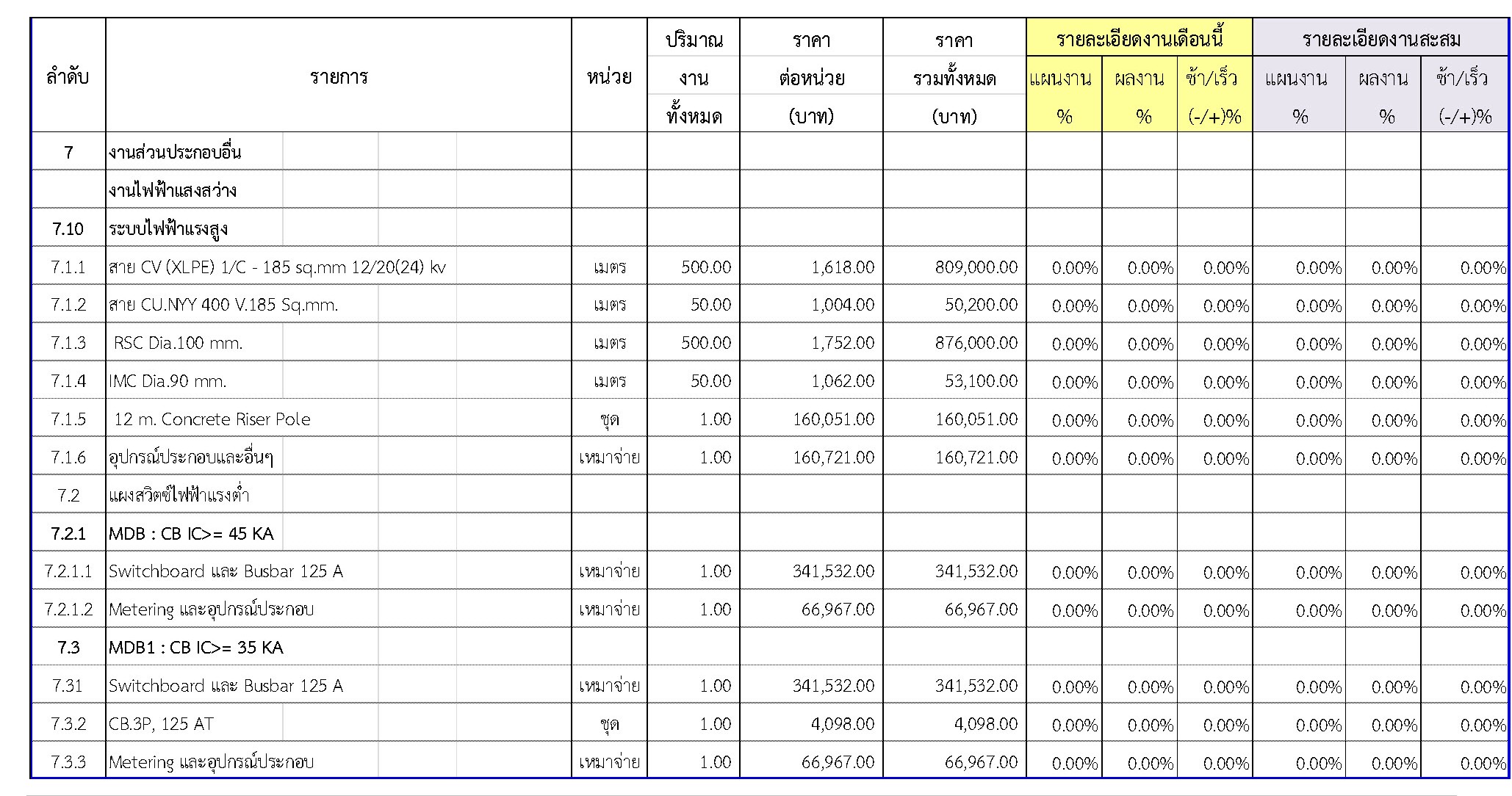2.2 ความก้าวหน้าของงานก่อสร้างแยกตามรายการ