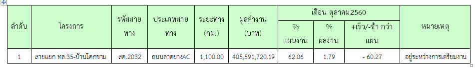 ความก้าวหน้าของเดือน ตุลาคม 2560 ของการปฏิบัติงาน (1.79%)แยกเป็น ดังต่อไปนี้