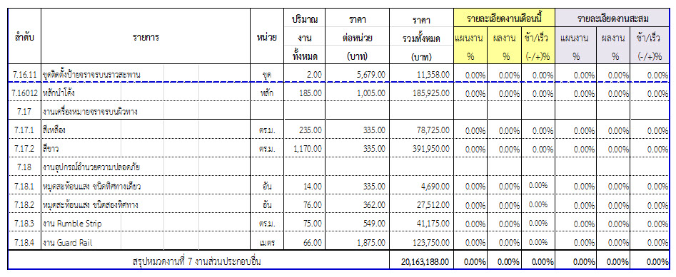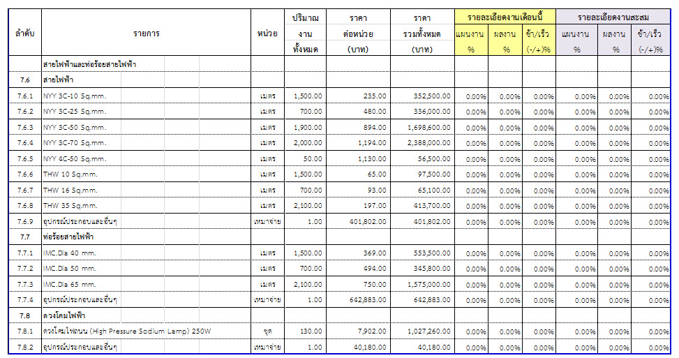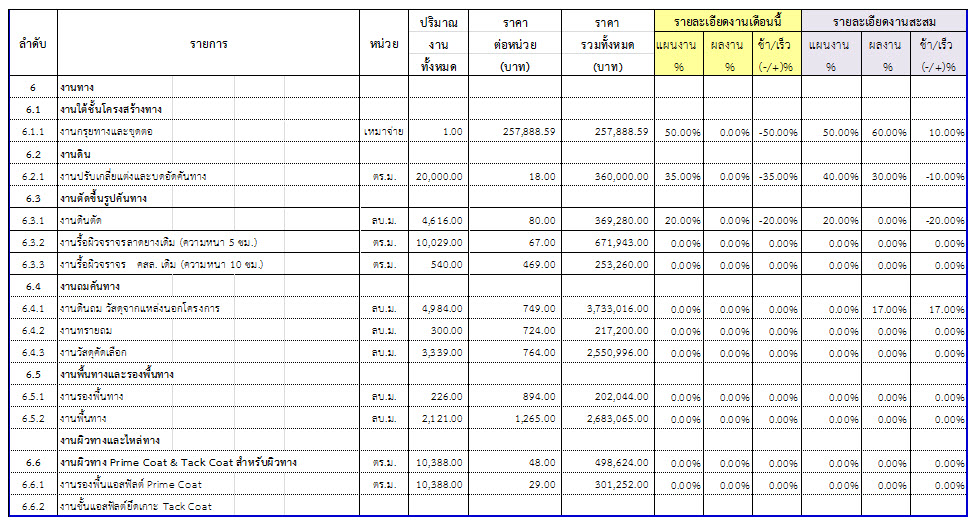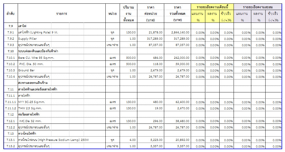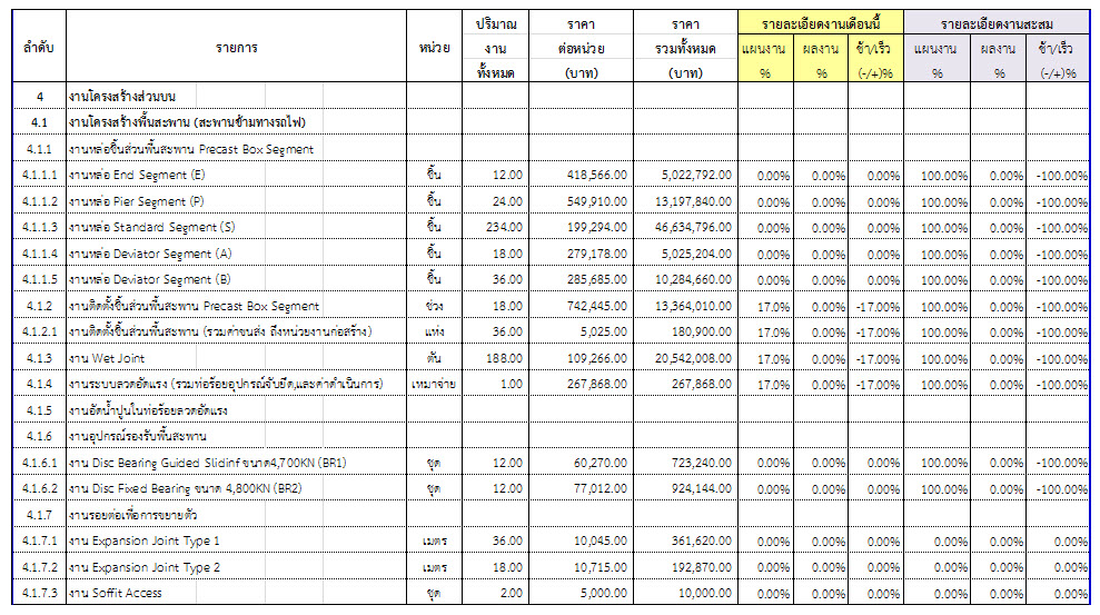 2.2 ความก้าวหน้าของงานก่อสร้างแยกตามรายการ