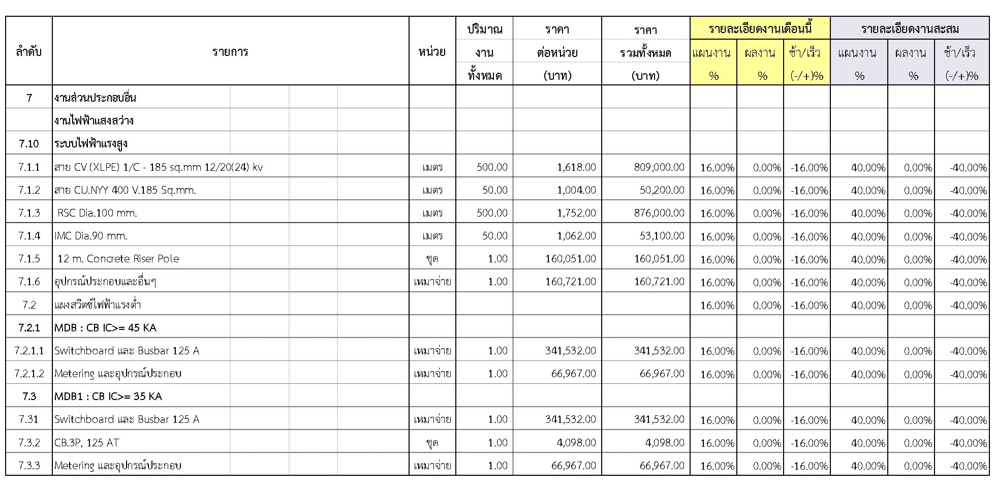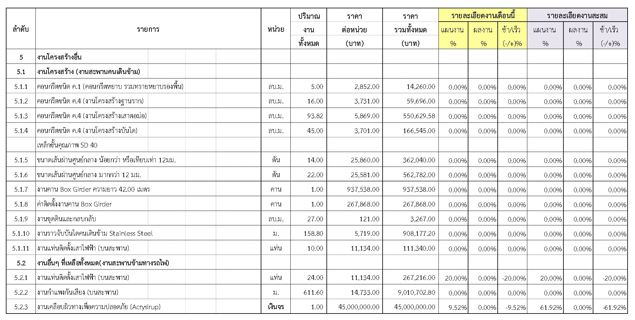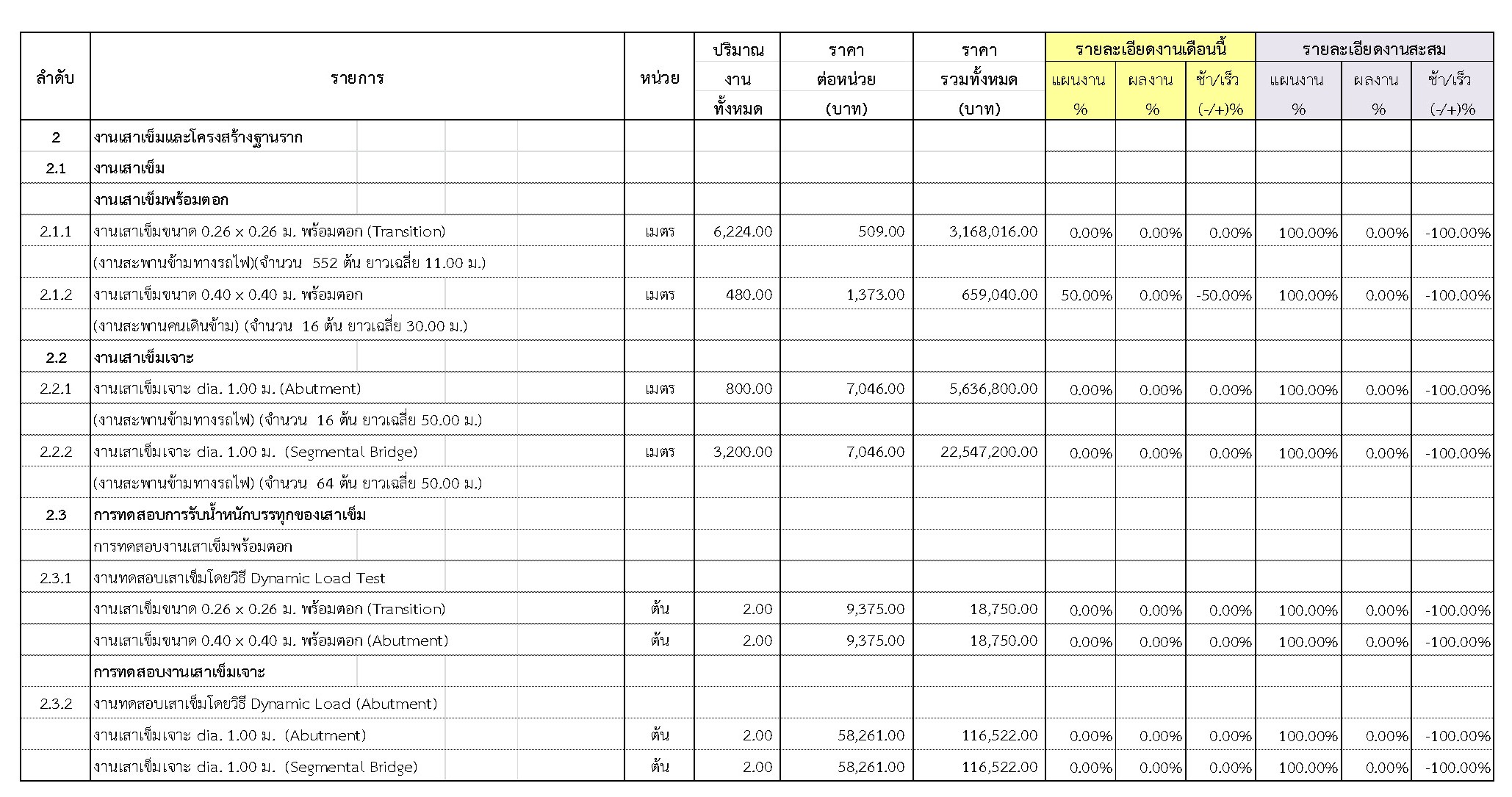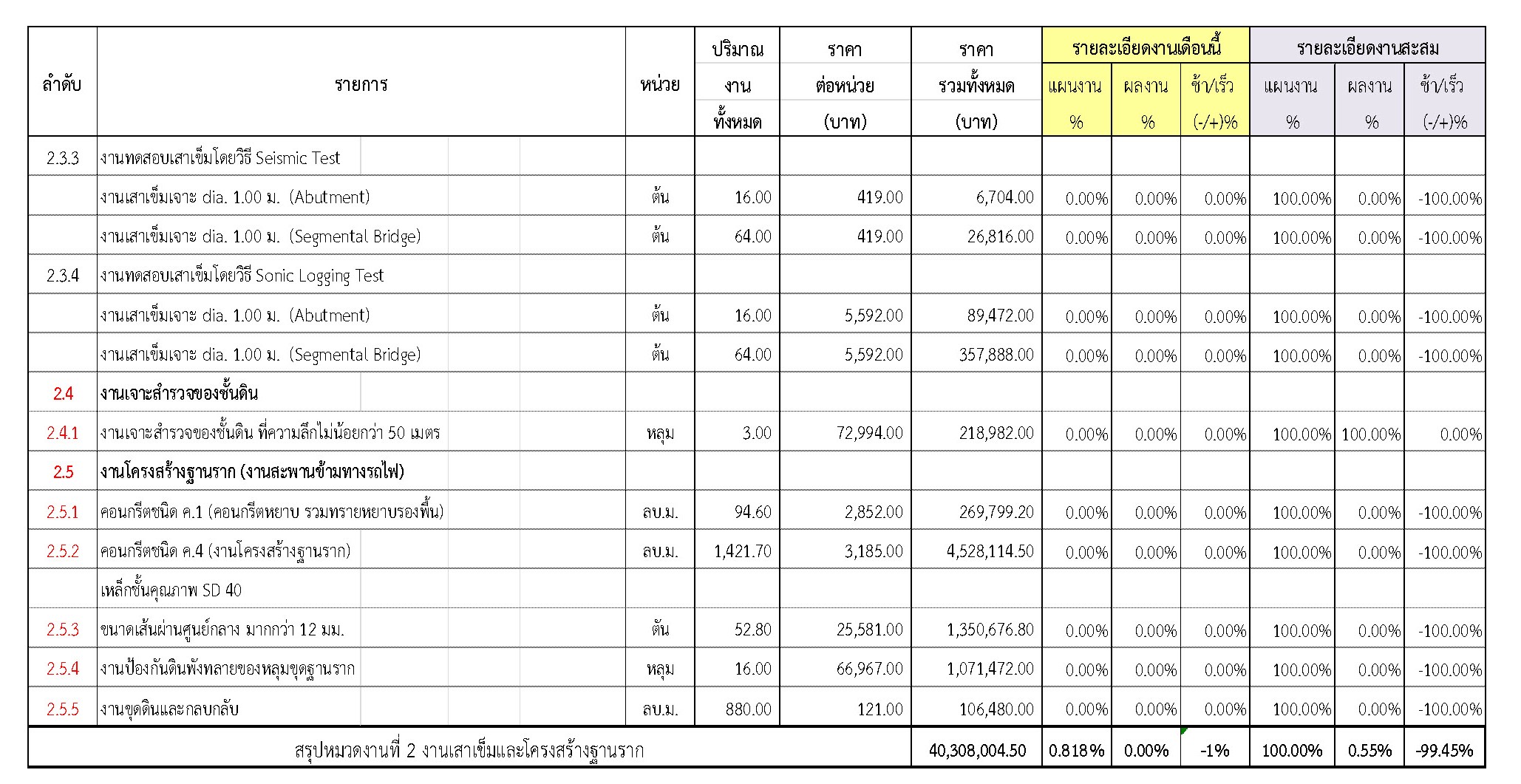 2.2 ความก้าวหน้าของงานก่อสร้างแยกตามรายการ