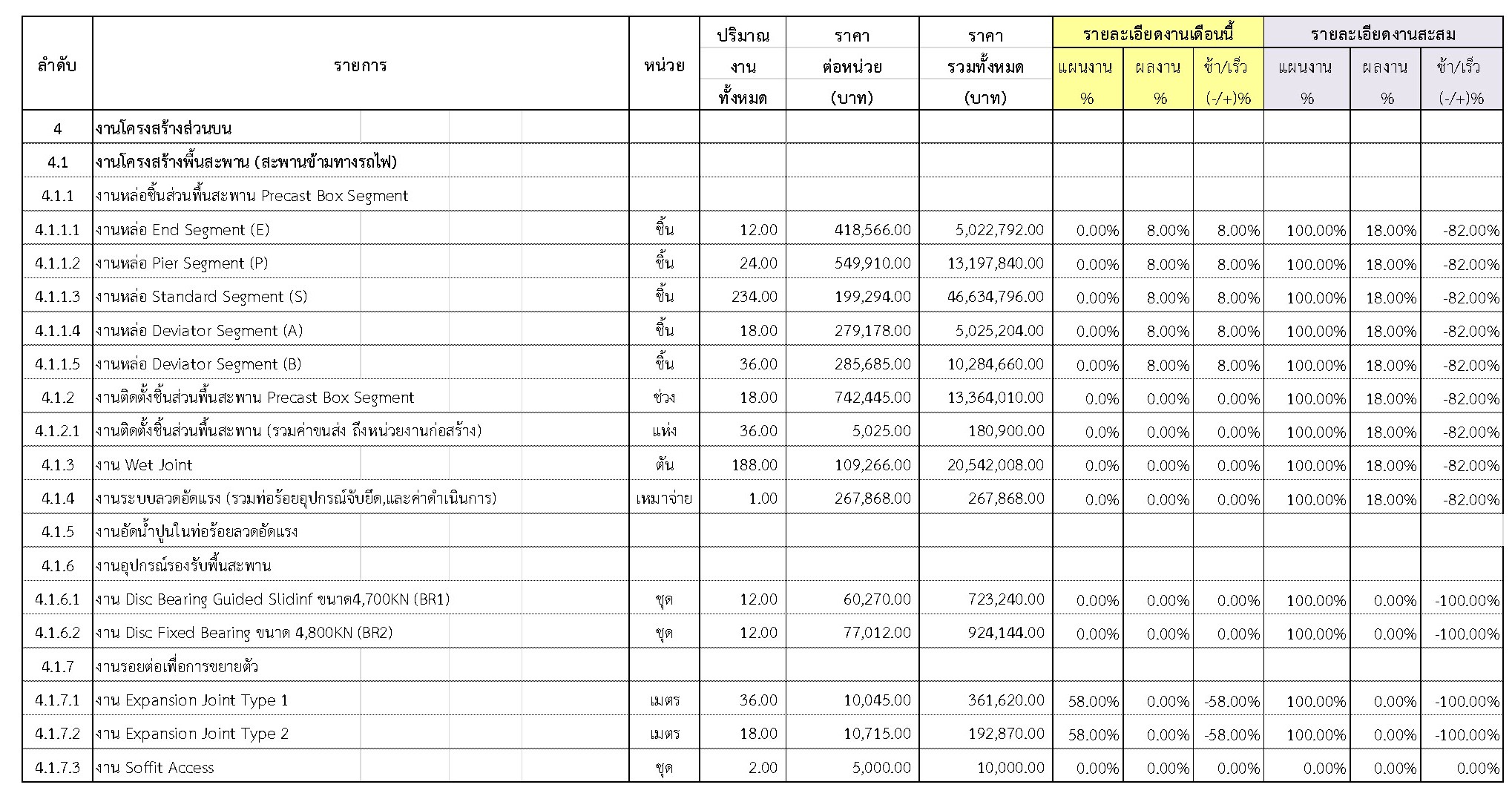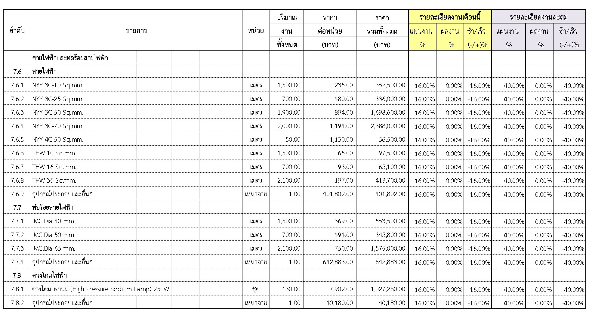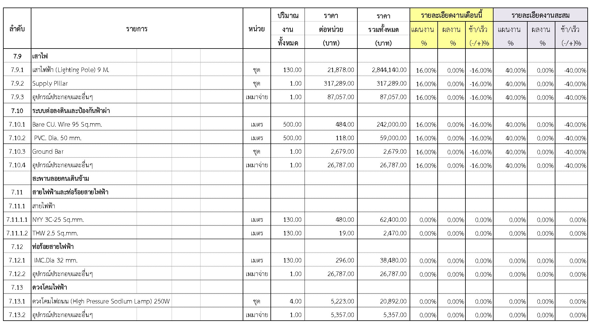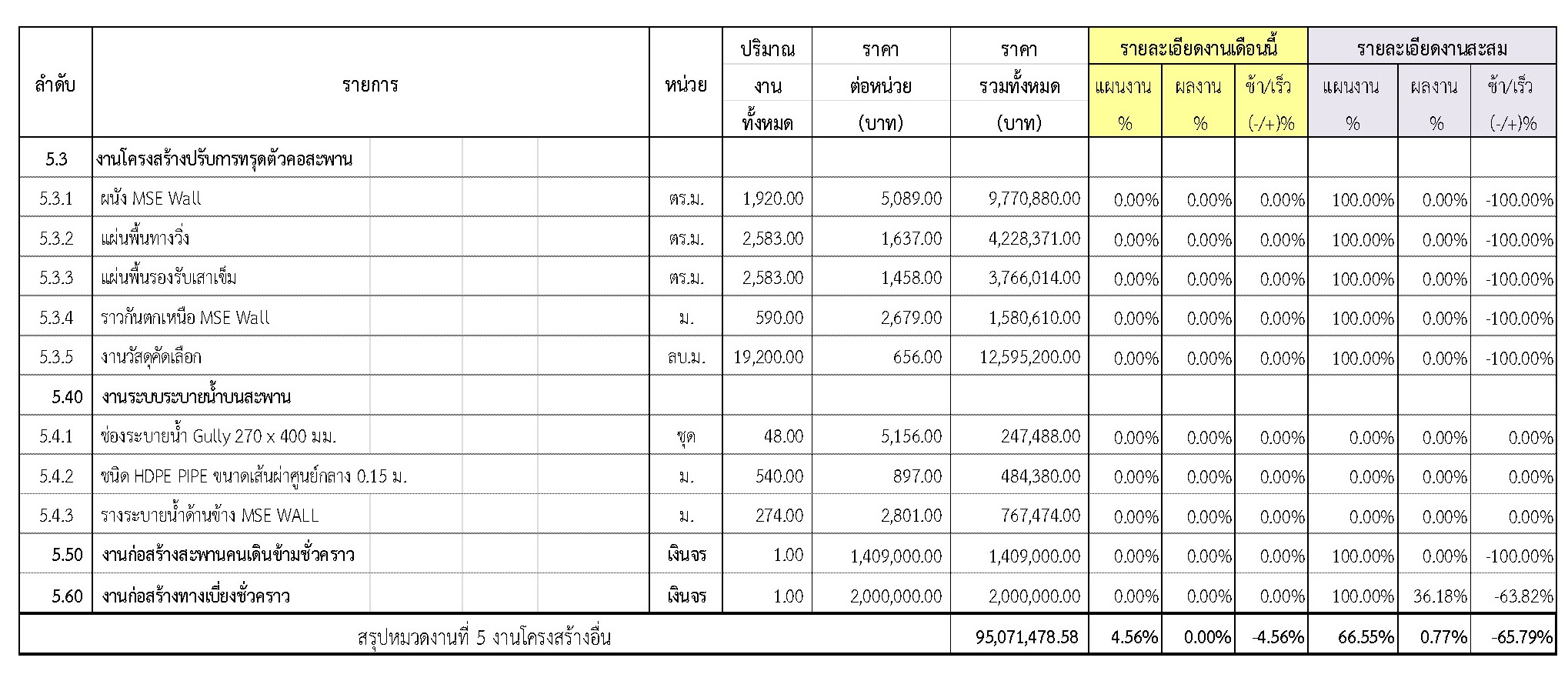2.2 ความก้าวหน้าของงานก่อสร้างแยกตามรายการ