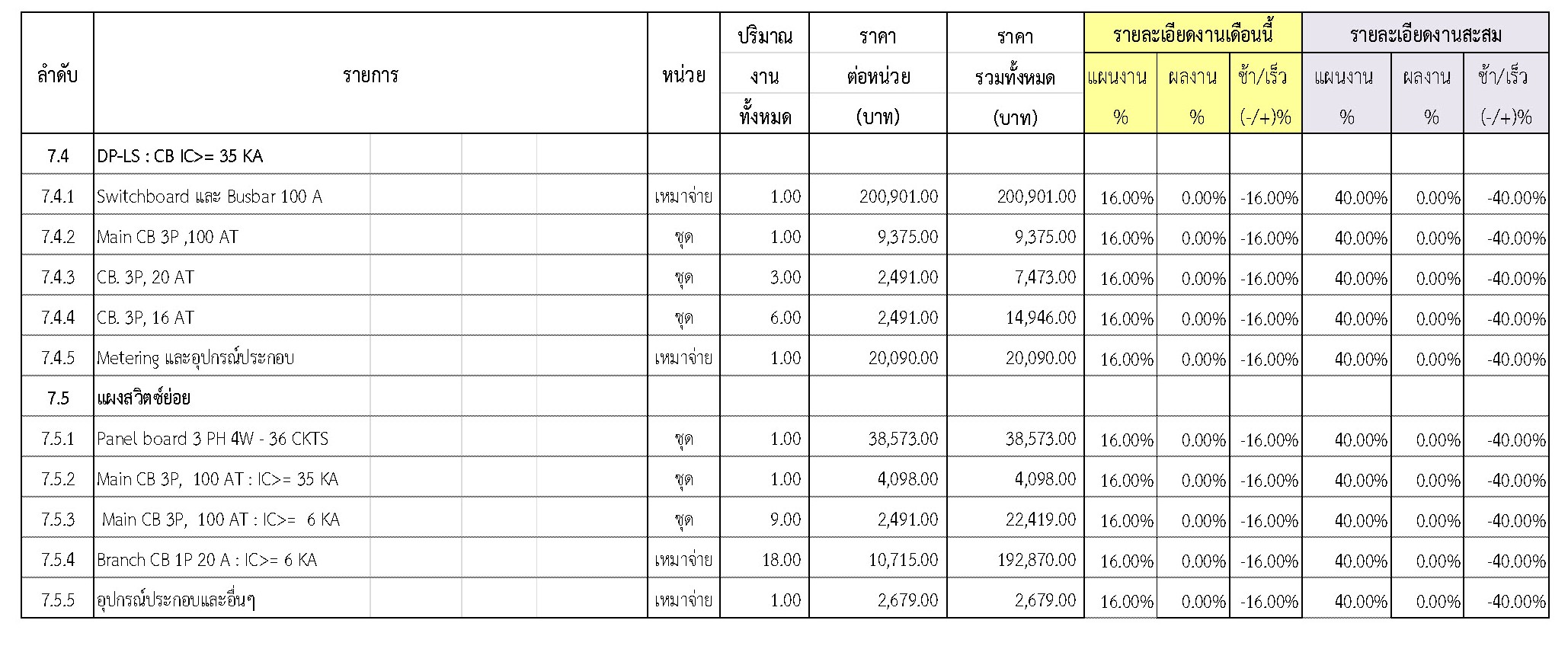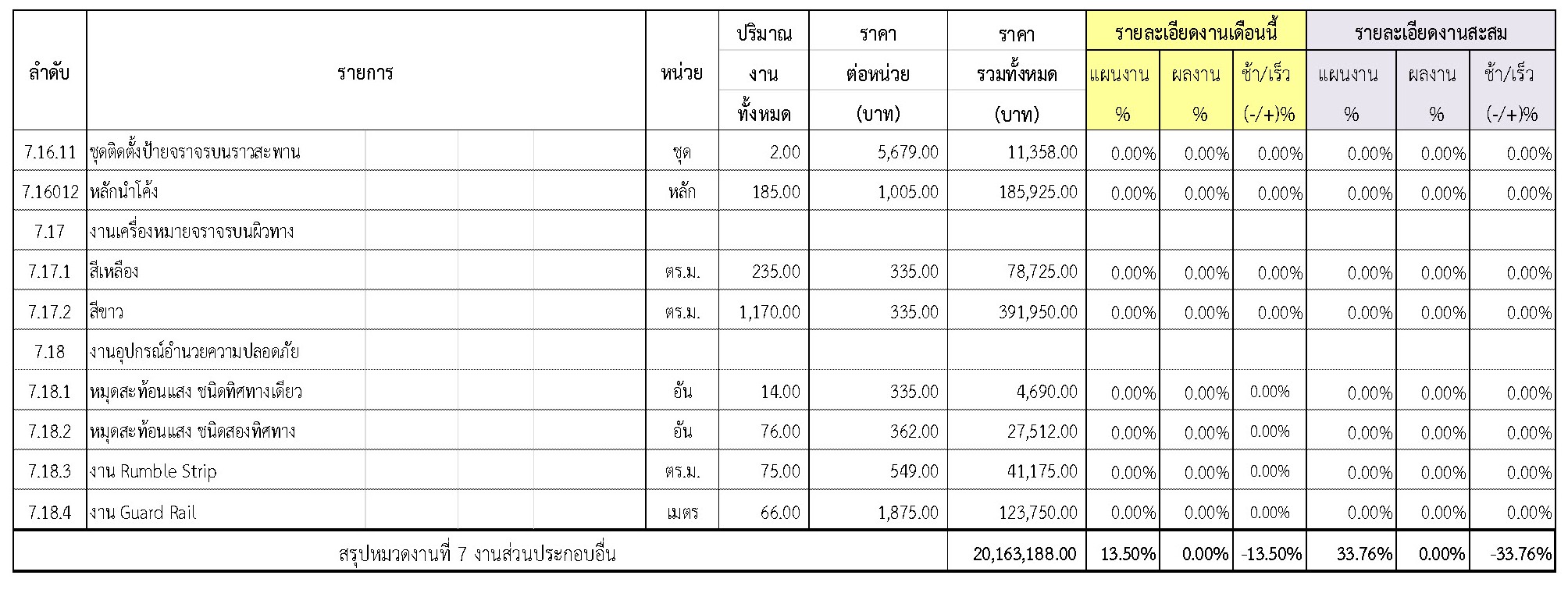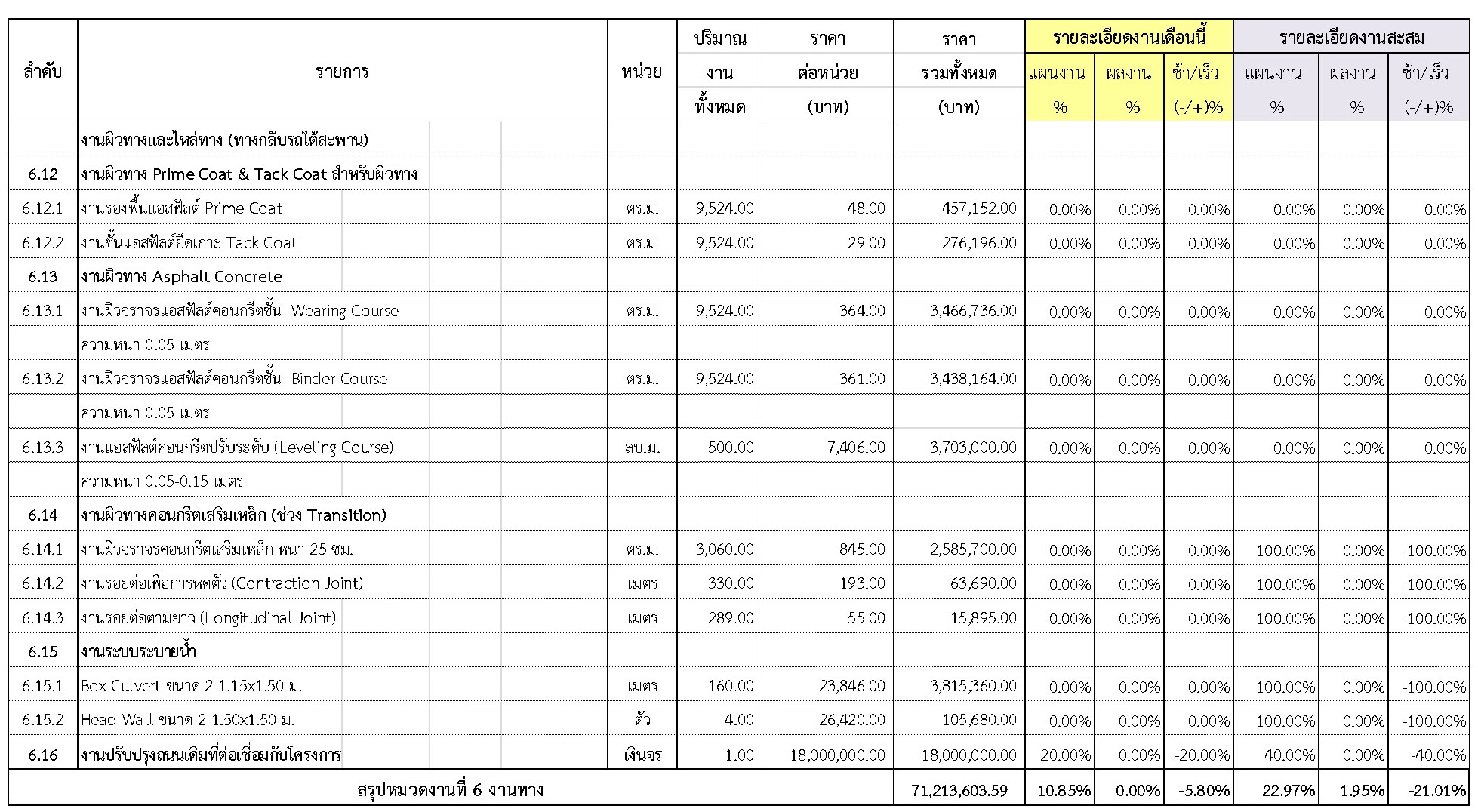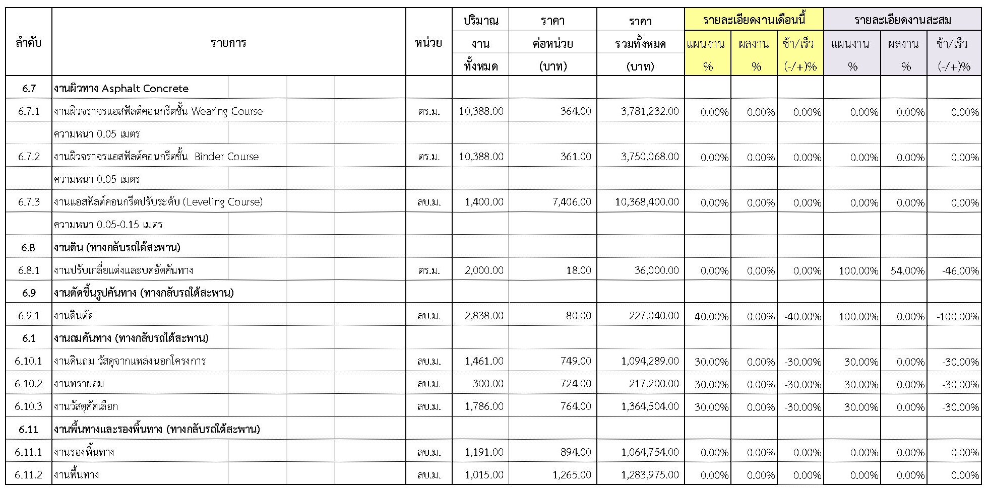 2.2 ความก้าวหน้าของงานก่อสร้างแยกตามรายการ