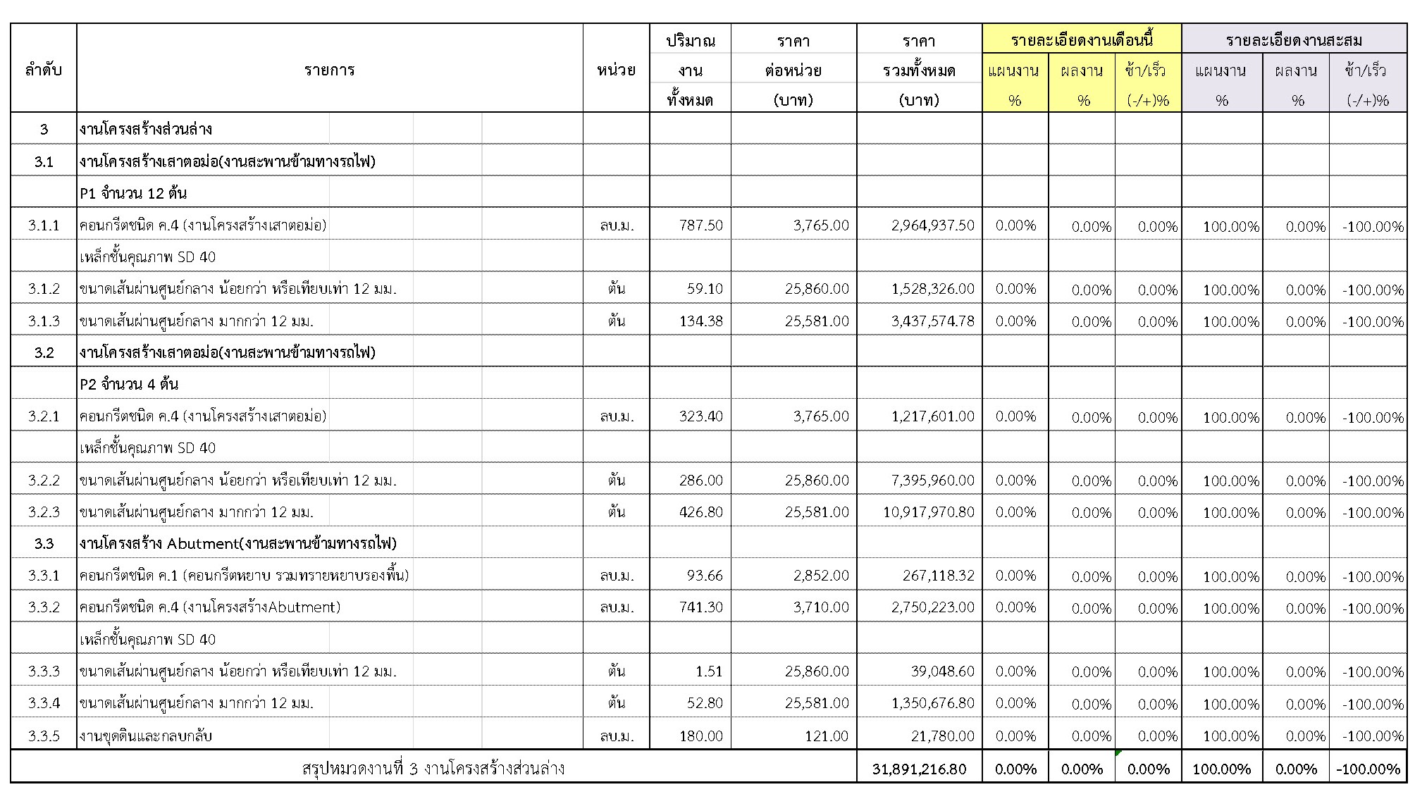 ตารางที่ 2.1-1 สรุปผลงานความก้าวหน้าของงานก่อสร้าง