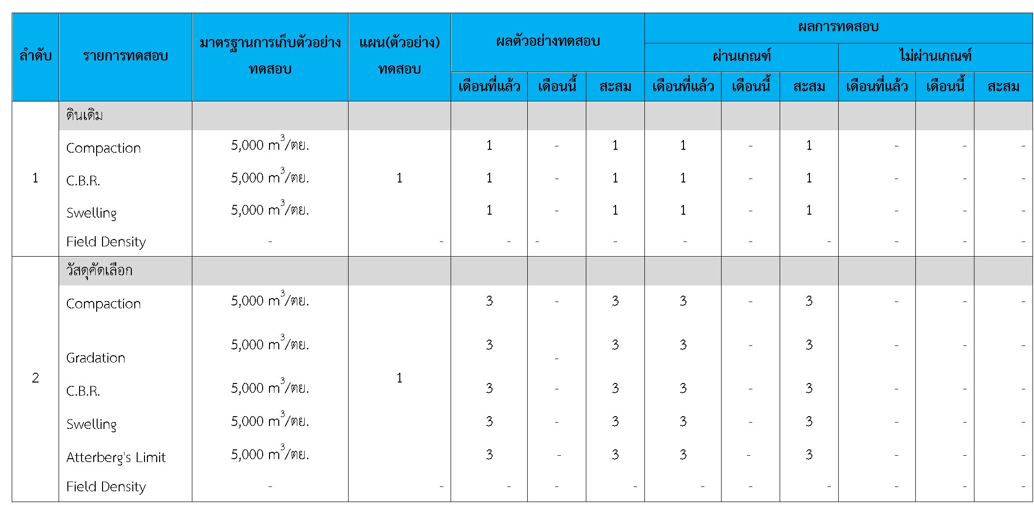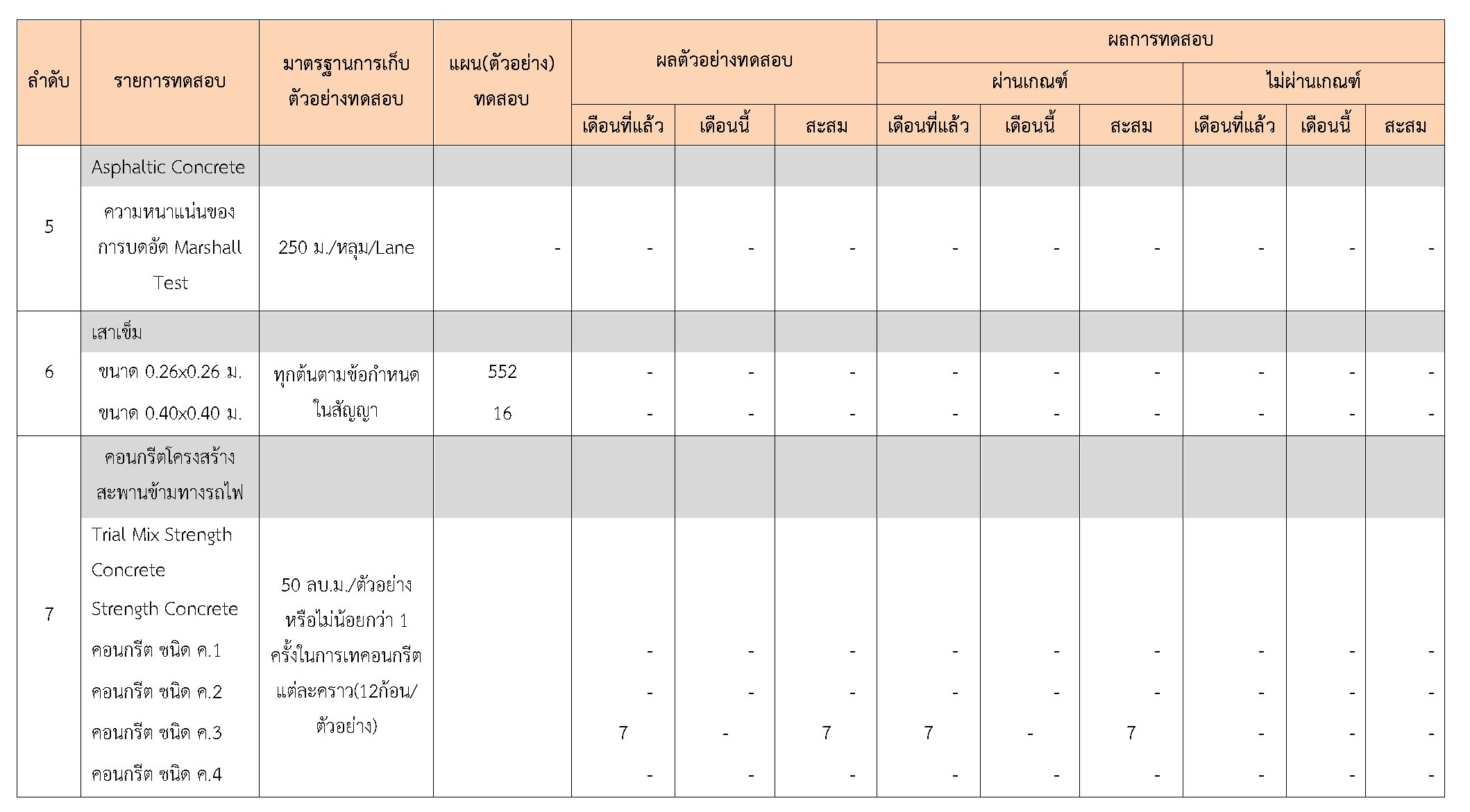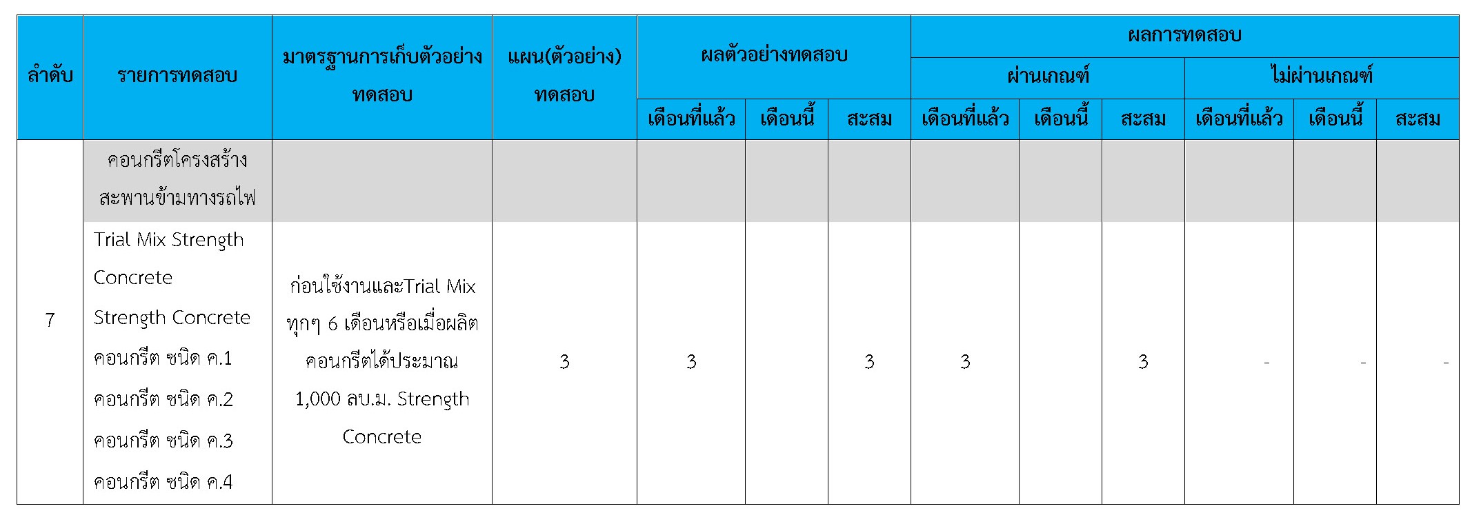 ในระหว่างวันที่ 1-28กุมภาพันธ์2561ผู้ว่าจ้างได้เสนอหนังสือขออนุมัติใช้วัสดุถึงที่ปรึกษา โดยที่ปรึกษาได้ตรวจสอบวัสดุดังกล่าวมีผลทดสอบดังตาราง