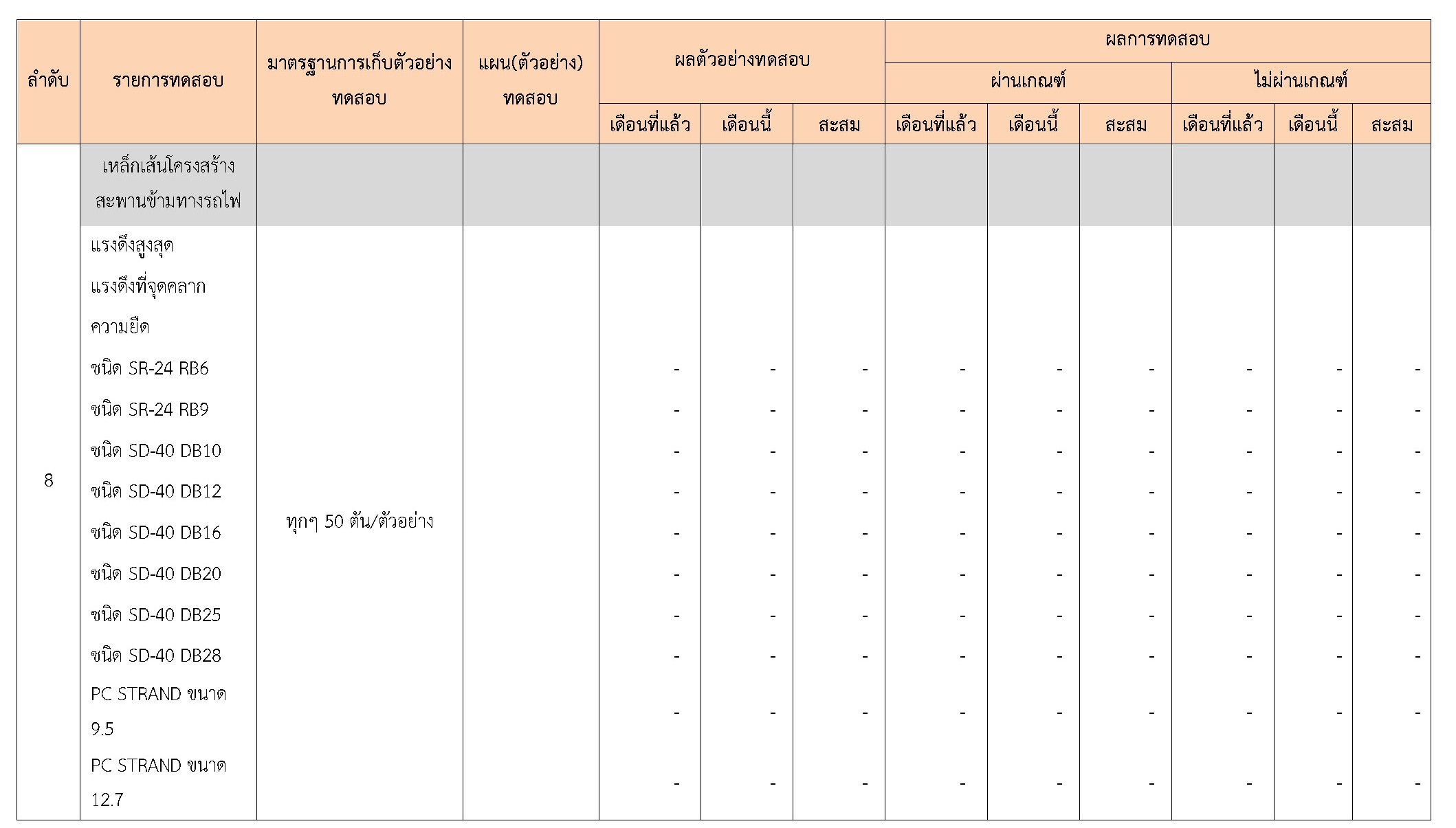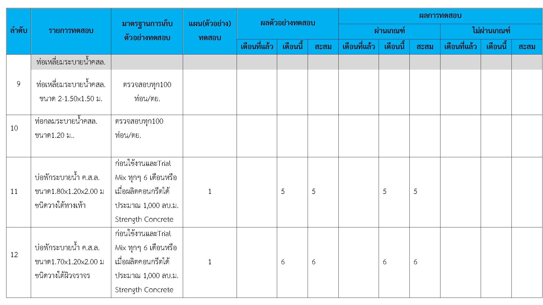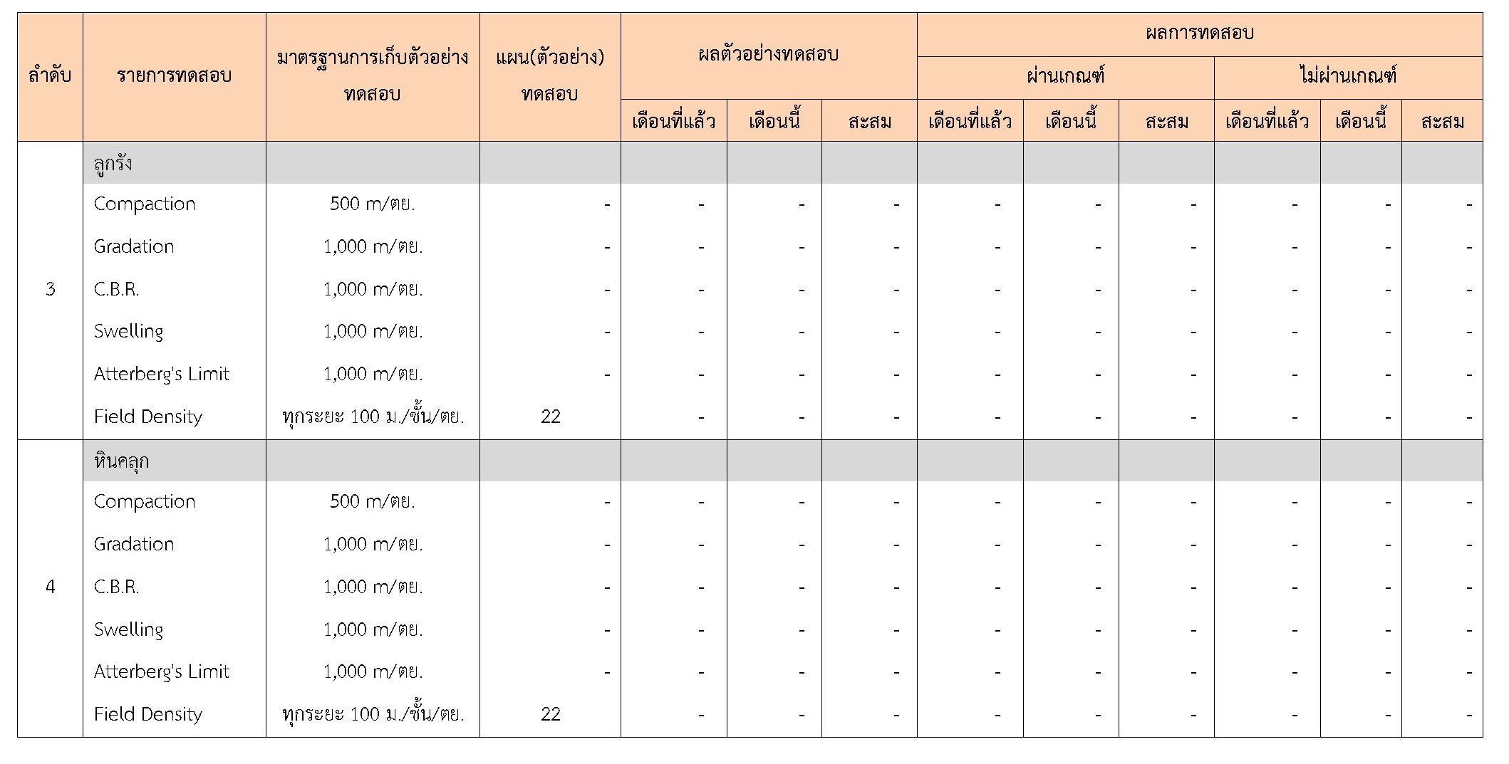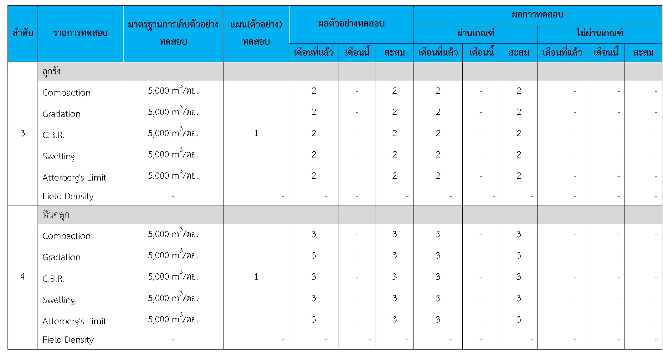 ในระหว่างวันที่ 1-28กุมภาพันธ์2561ผู้ว่าจ้างได้เสนอหนังสือขออนุมัติใช้วัสดุถึงที่ปรึกษา โดยที่ปรึกษาได้ตรวจสอบวัสดุดังกล่าวมีผลทดสอบดังตาราง