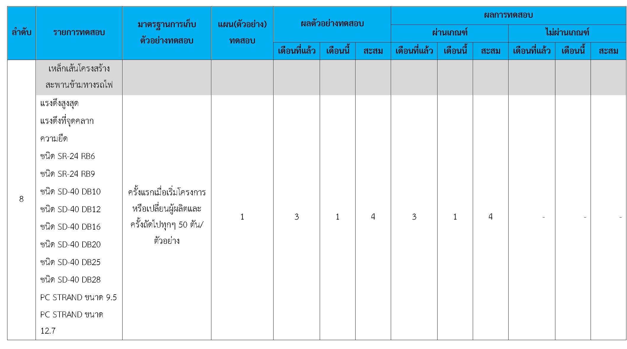 ในระหว่างวันที่ 1-28 กุมภาพันธ์ 2561ผู้ว่าจ้างได้เสนอหนังสือขออนุมัติใช้วัสดุถึงที่ปรึกษา โดยที่ปรึกษาได้ตรวจสอบวัสดุดังกล่าวมีผลทดสอบดังตาราง