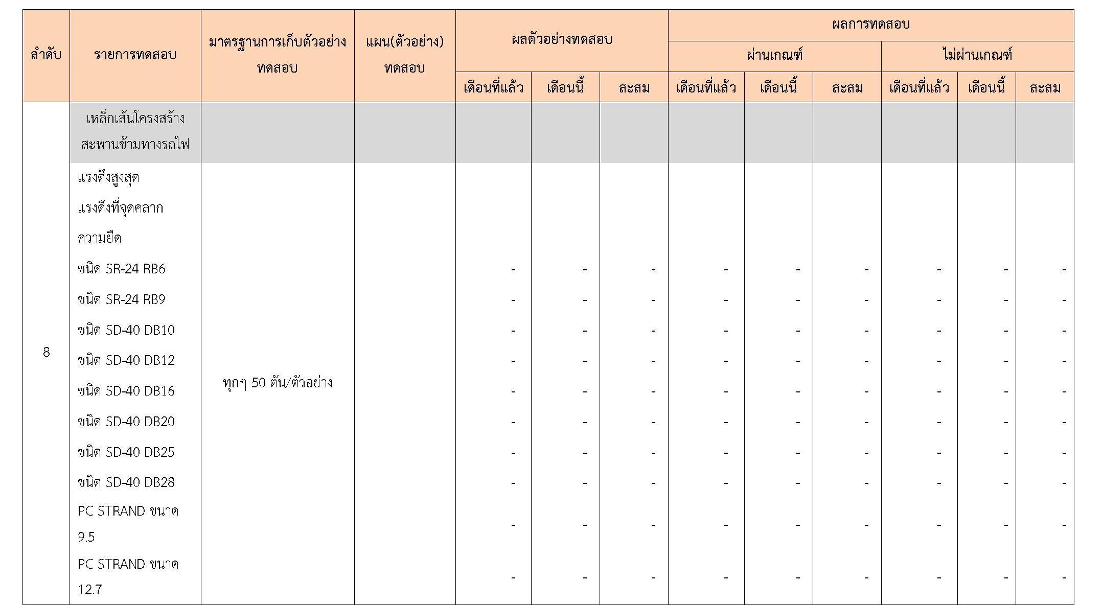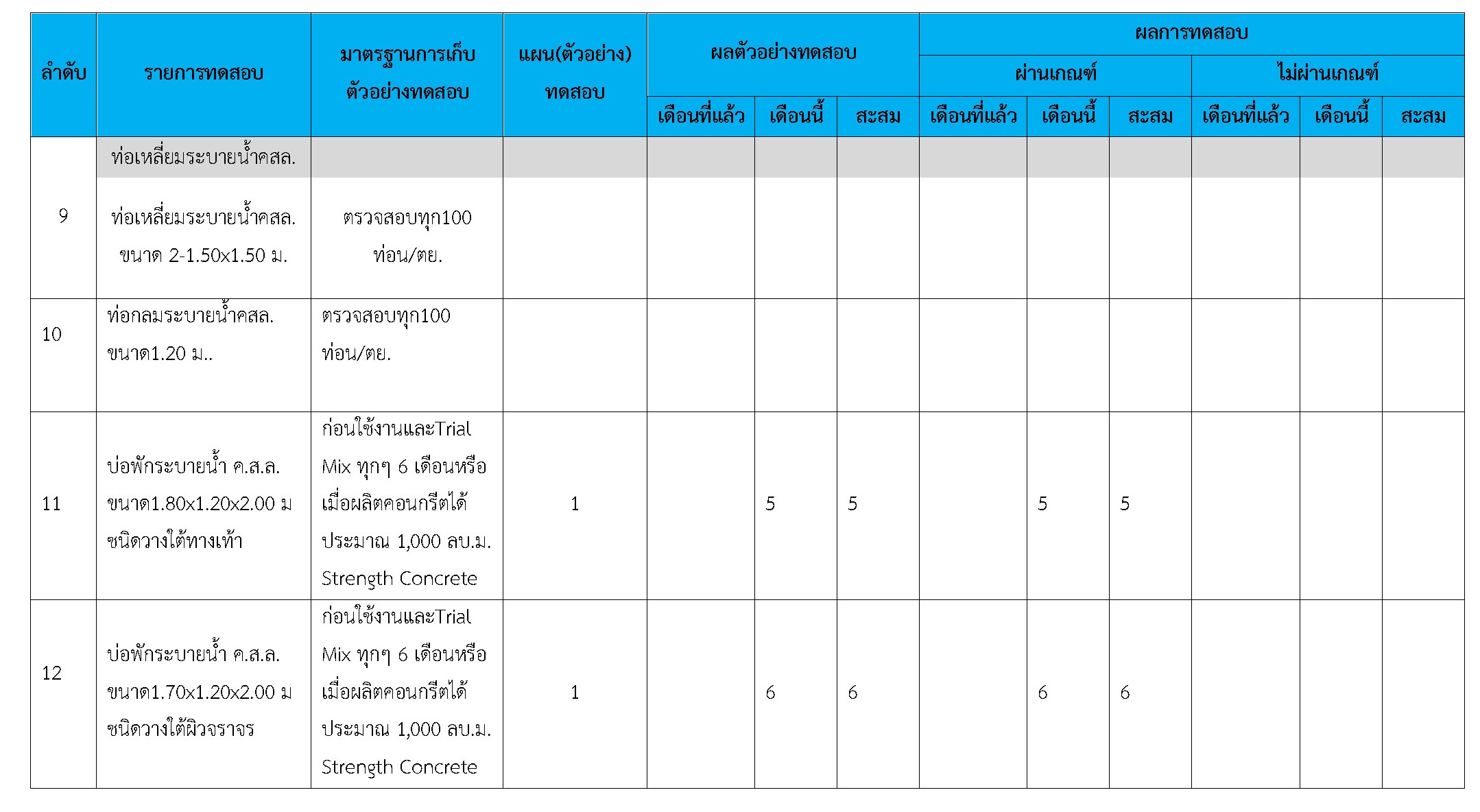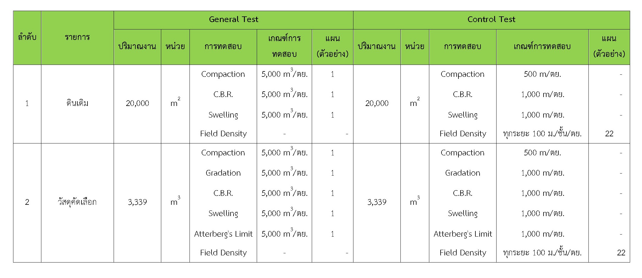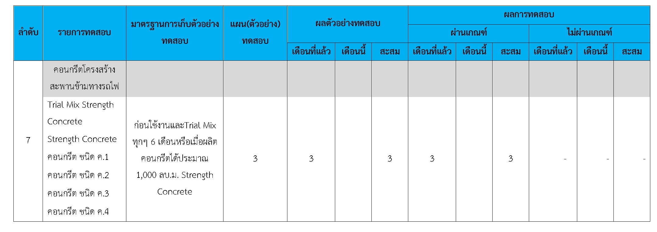 ในระหว่างวันที่ 1-31มีนาคม2561ผู้ว่าจ้างได้เสนอหนังสือขออนุมัติใช้วัสดุถึงที่ปรึกษา โดยที่ปรึกษาได้ตรวจสอบวัสดุดังกล่าวมีผลทดสอบดังตาราง