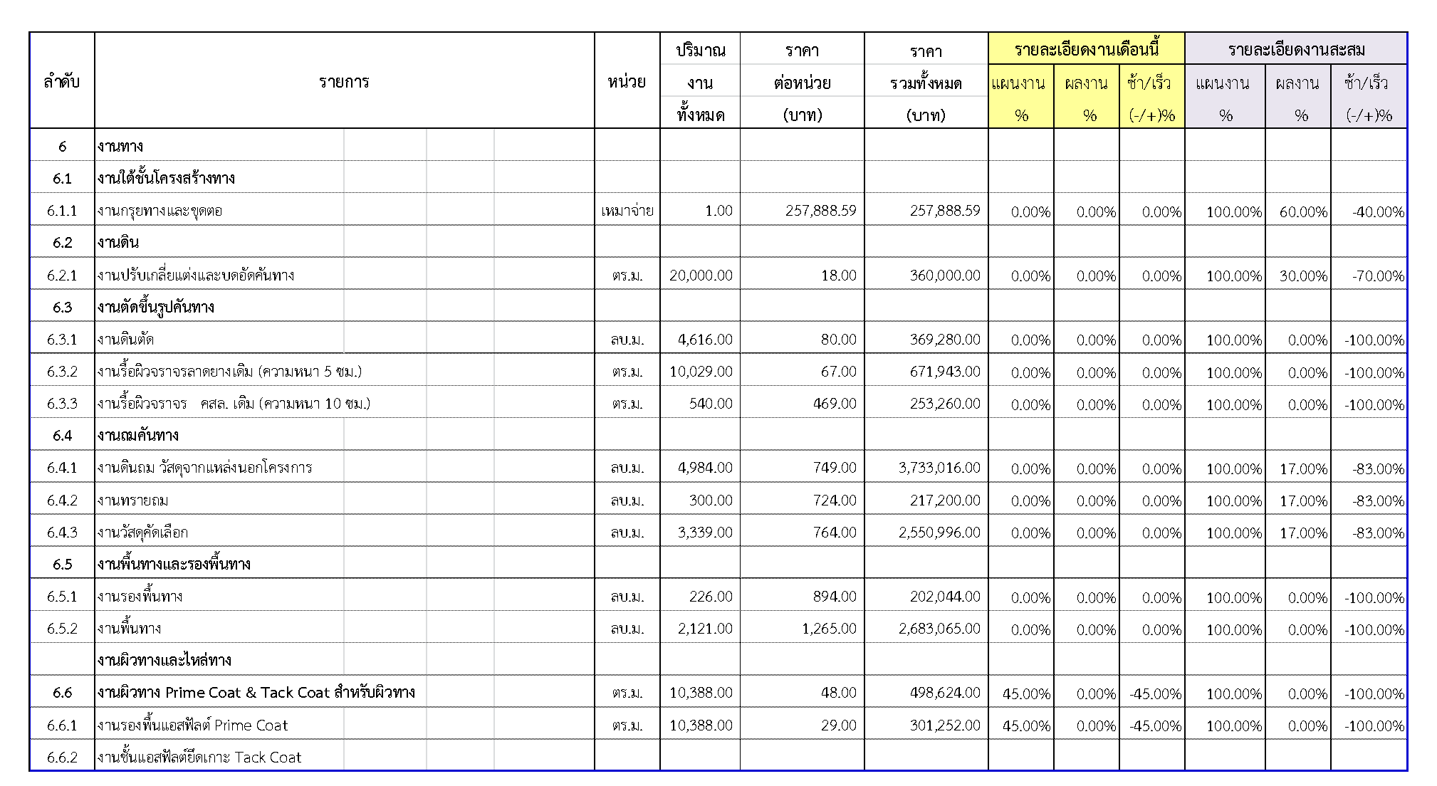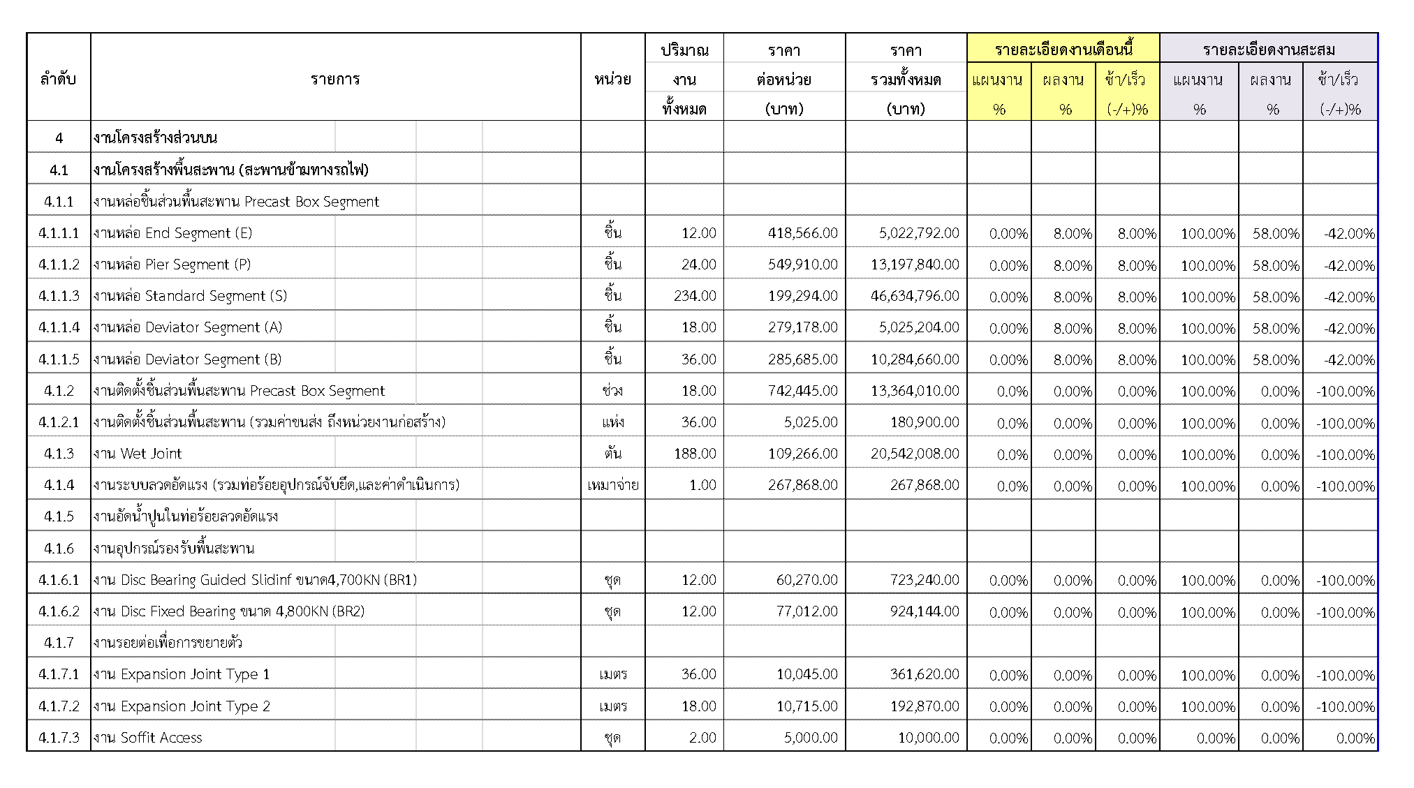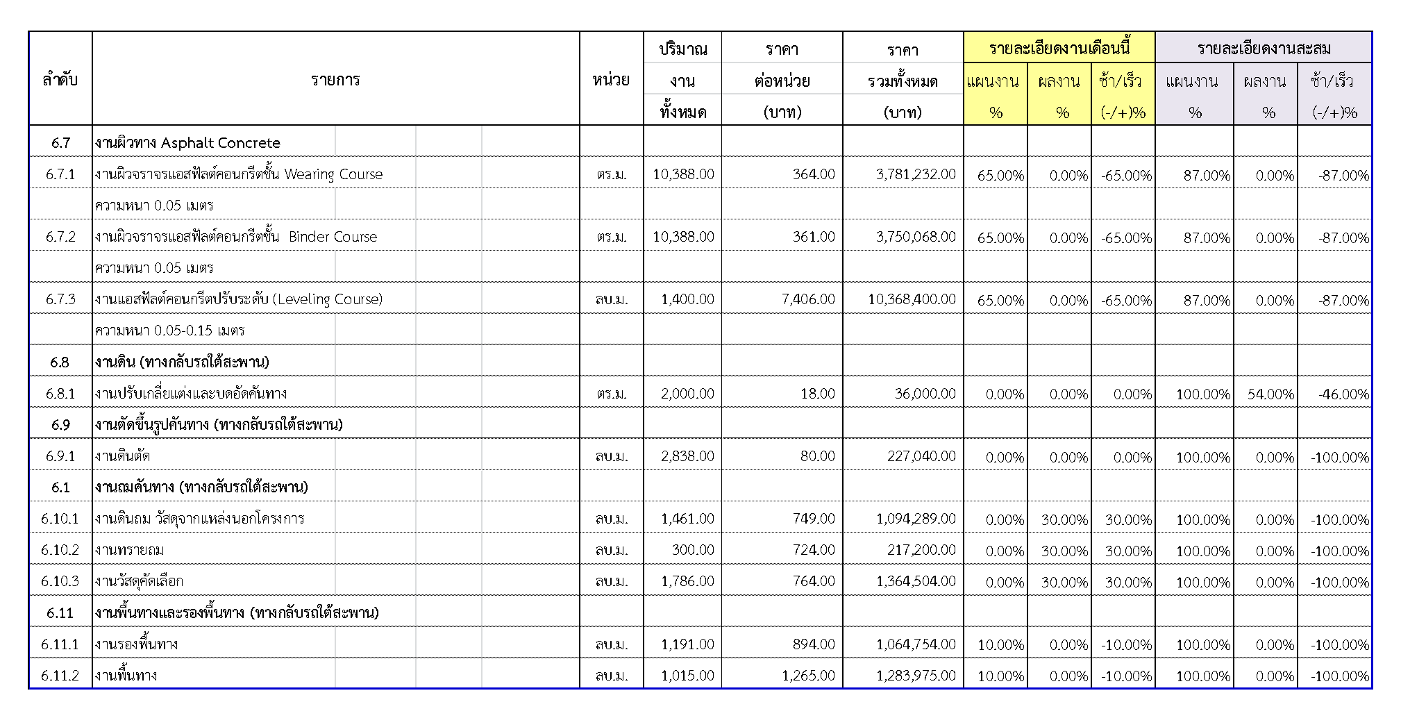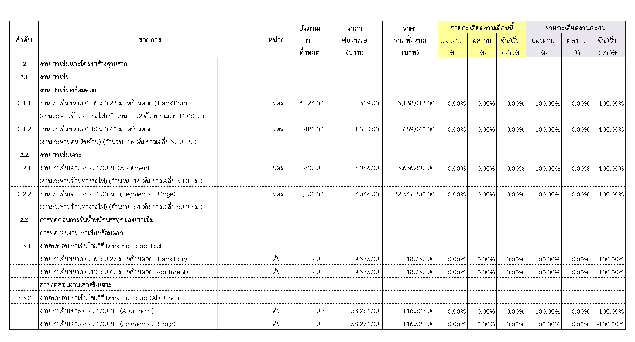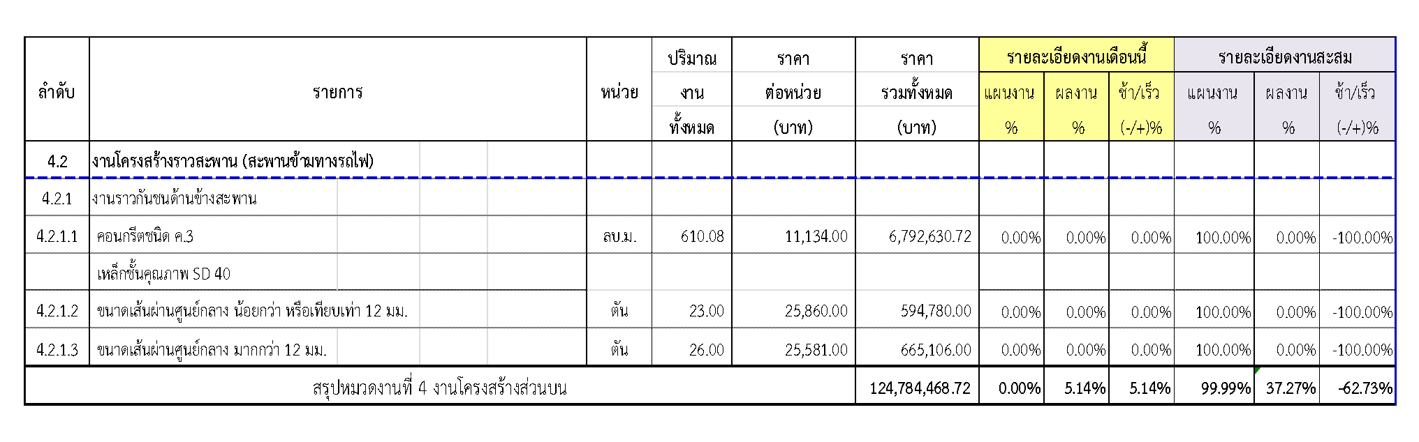 2.2 ความก้าวหน้าของงานก่อสร้างแยกตามรายการ