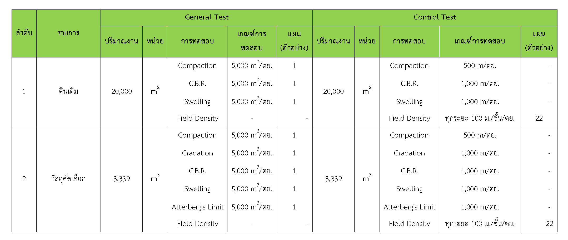 ในเดือน เมษายน 2561ได้แสดงเกณฑ์การทดสอบ General Test และ Control Test แสดงไว้ในตารางที่ 3.2-1 – 3.2-3 ดังนี้