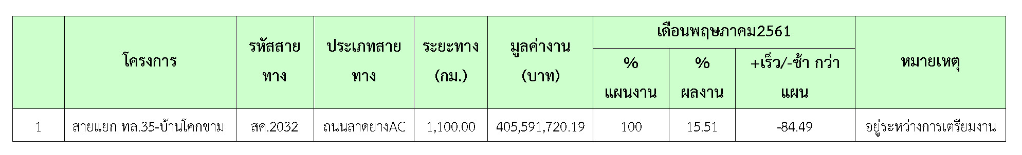 ความก้าวหน้าของเดือนพฤษภาคม2561ของการปฏิบัติงาน (15.51%)แยกเป็น ดังต่อไปนี้