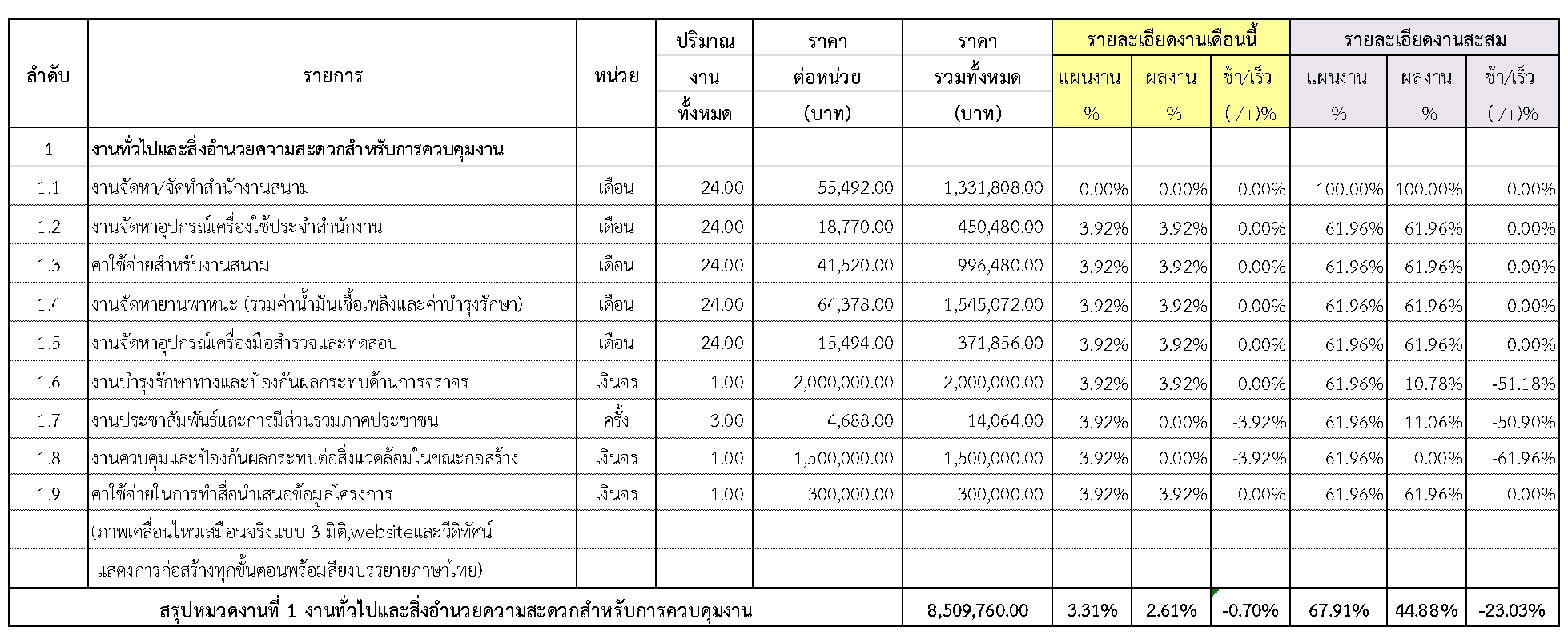 ตารางที่ 2.1-1 สรุปผลงานความก้าวหน้าของงานก่อสร้าง