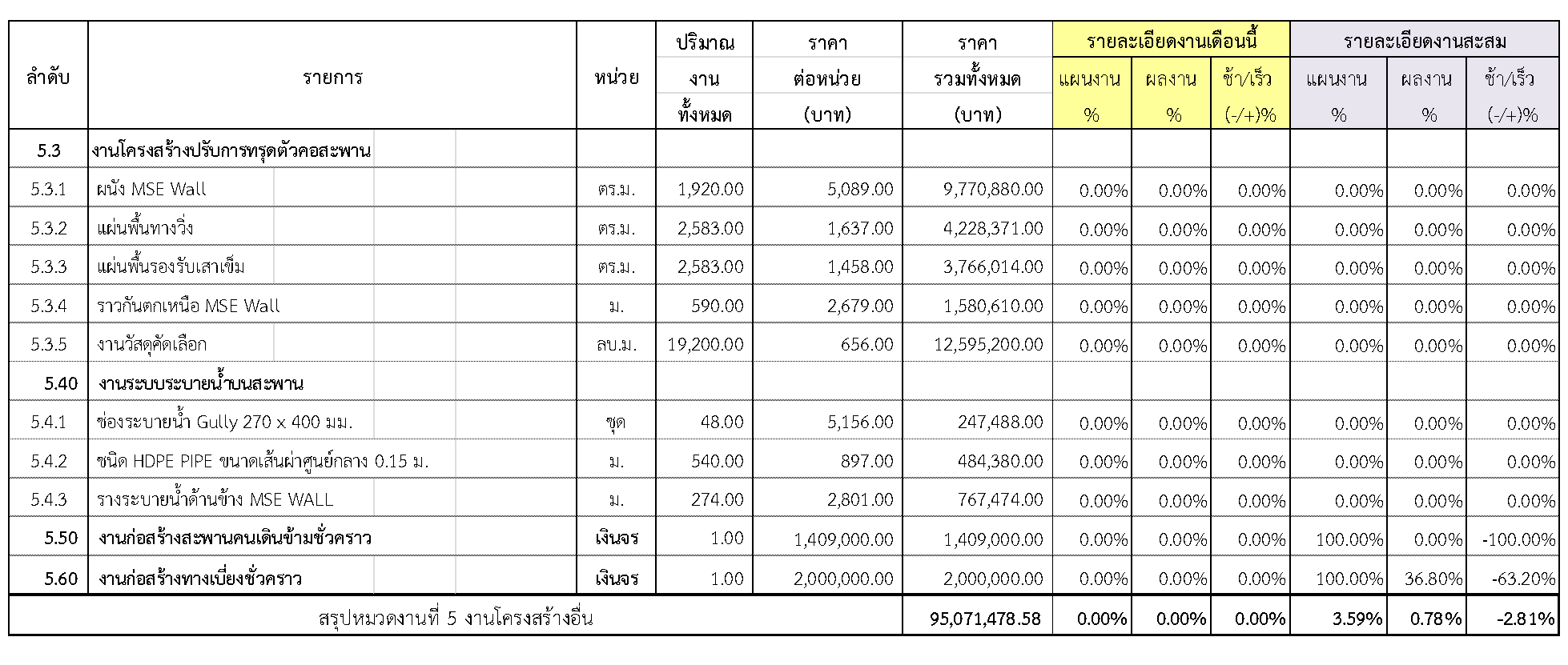 ในเดือนพฤษภาคม2561มีความก้าวหน้าของงานก่อสร้างที่สามารถตรวจรับงานได้ ดังสรุปในตารางที่ 2.3-1