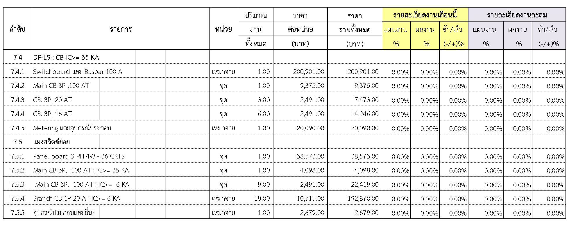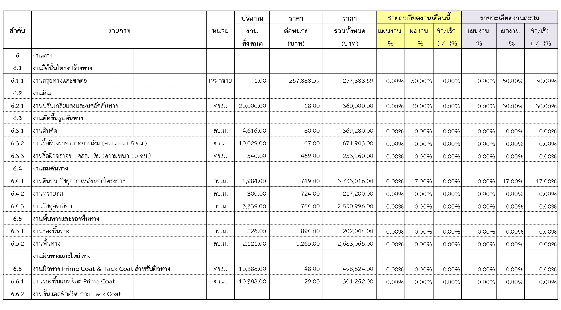 2.2 ความก้าวหน้าของงานก่อสร้างแยกตามรายการ