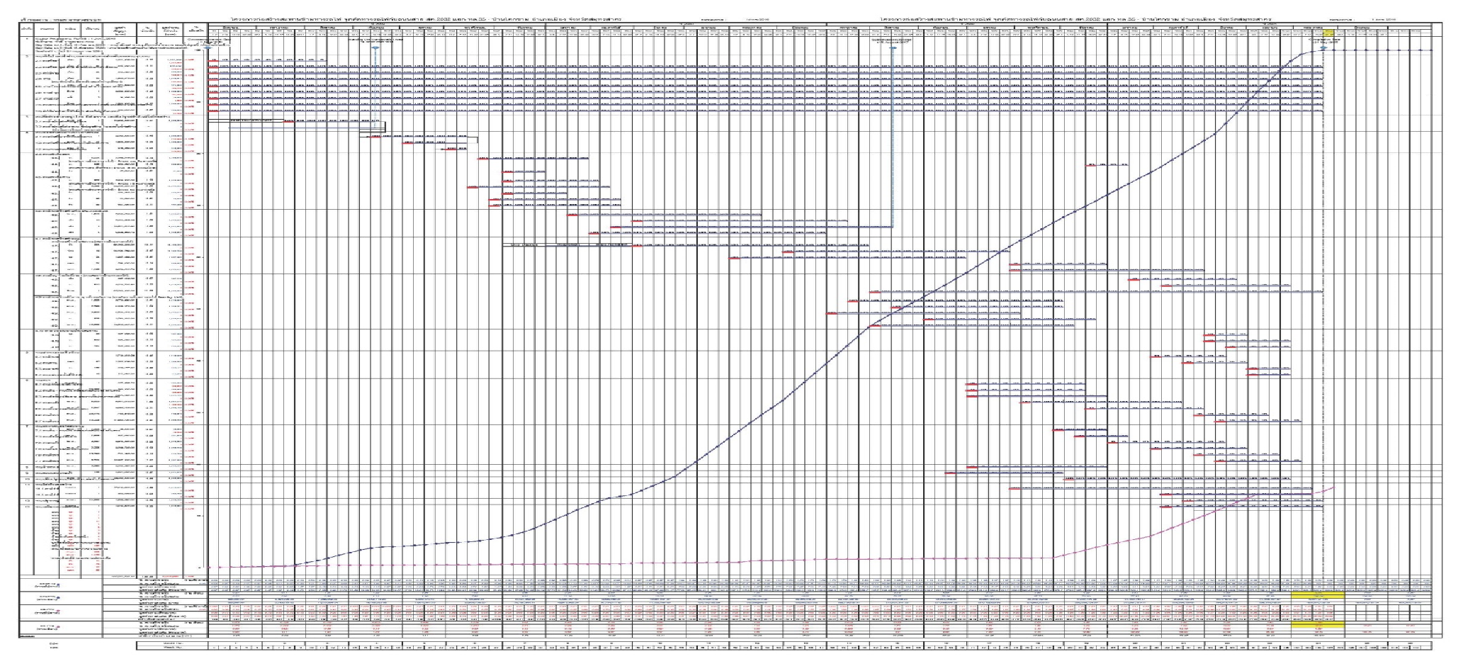 เนื่องจากในช่วงเดือนที่ 24ของโครงการ ผู้รับจ้างกำลังเคลียร์สิ่งปลูกสร้างหน้างานในสนาม และได้จัดทำแผนงานของกิจกรรมก่อสร้างต่างๆ ในกรอบเวลาของสัญญา ให้ทางที่ปรึกษาพิจารณา ดังรูปที่ 2.2-1