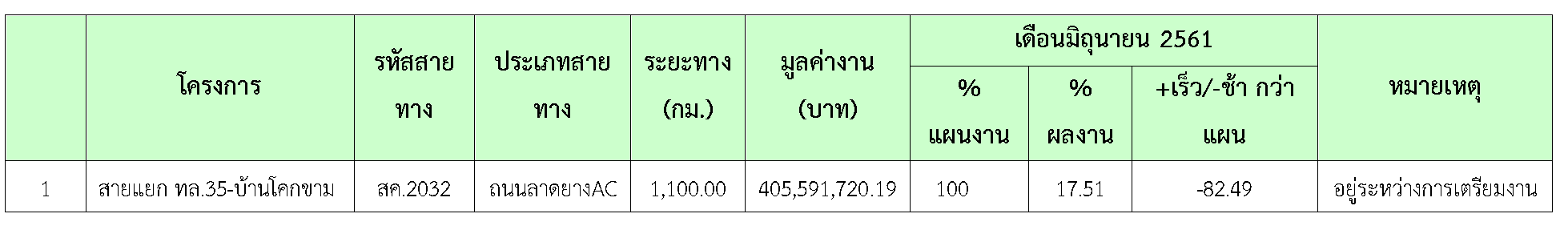 ความก้าวหน้าของเดือนมิถุนายน2561ของการปฏิบัติงาน (17.51%)แยกเป็น ดังต่อไปนี้