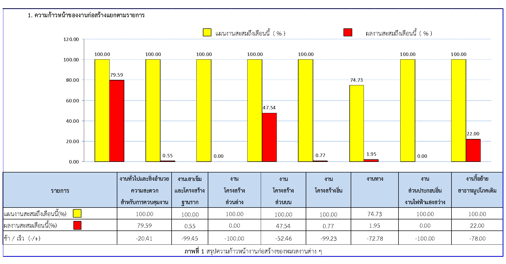 ตารางที่ 2.1-1 สรุปผลงานความก้าวหน้าของงานก่อสร้าง