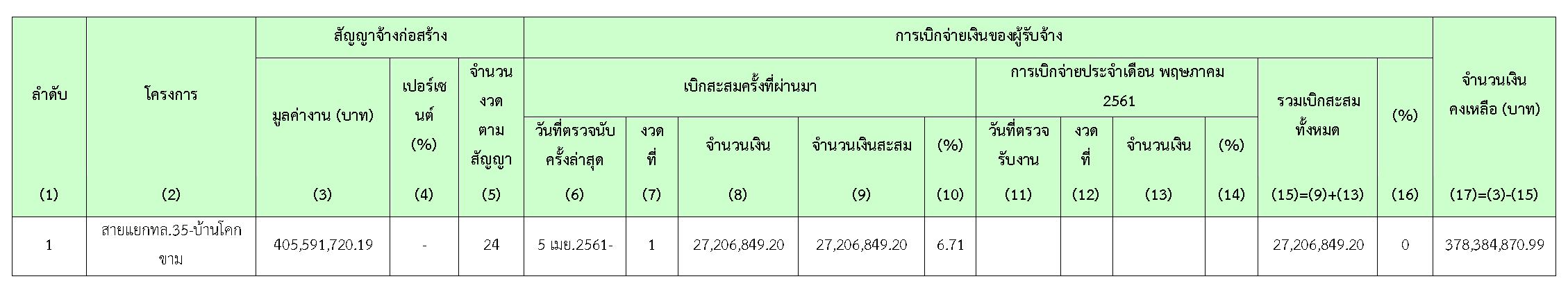 ในเดือนมิถุนายน2561มีความก้าวหน้าของงานก่อสร้างที่สามารถตรวจรับงานได้ ดังสรุปในตารางที่ 2.3-1
